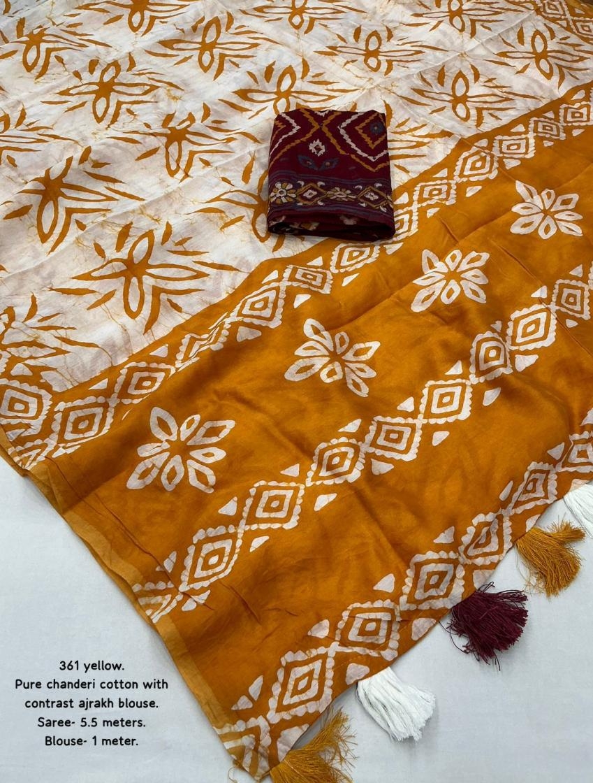 | Name: | Kc 361 Chanderi Cotton New Design Batik Printed Sarees |