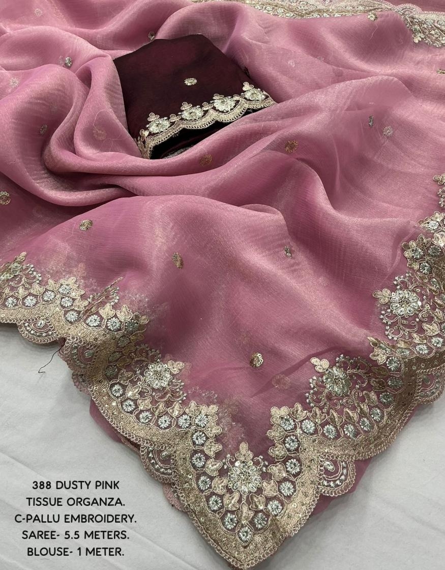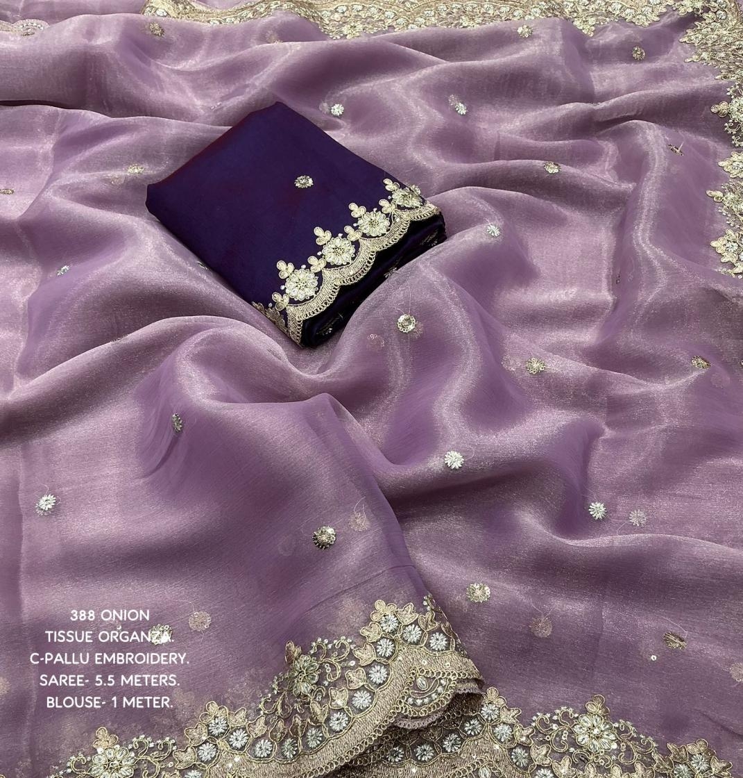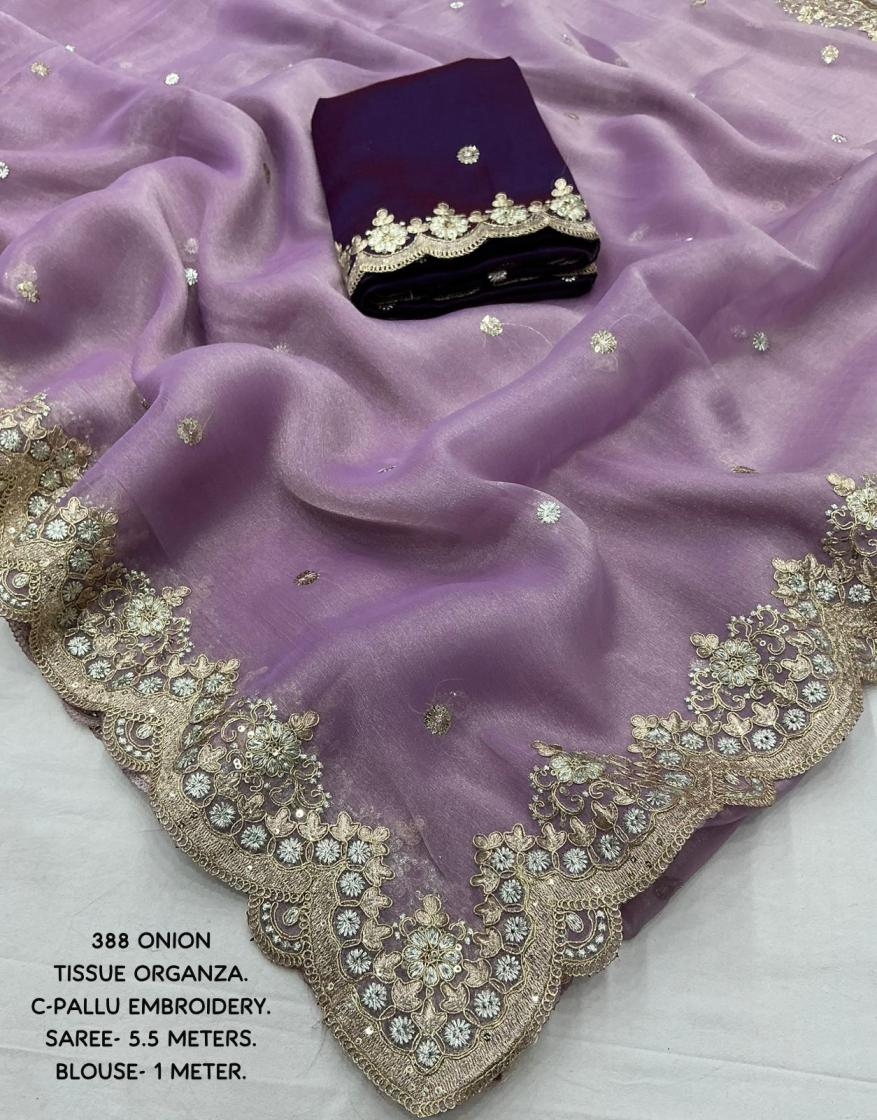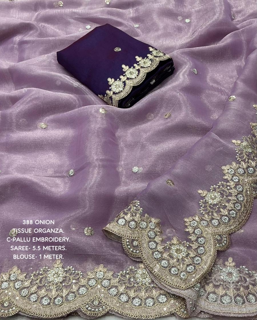 | Name: | Kc 388 Tissue Organza Embroided Sarees | |