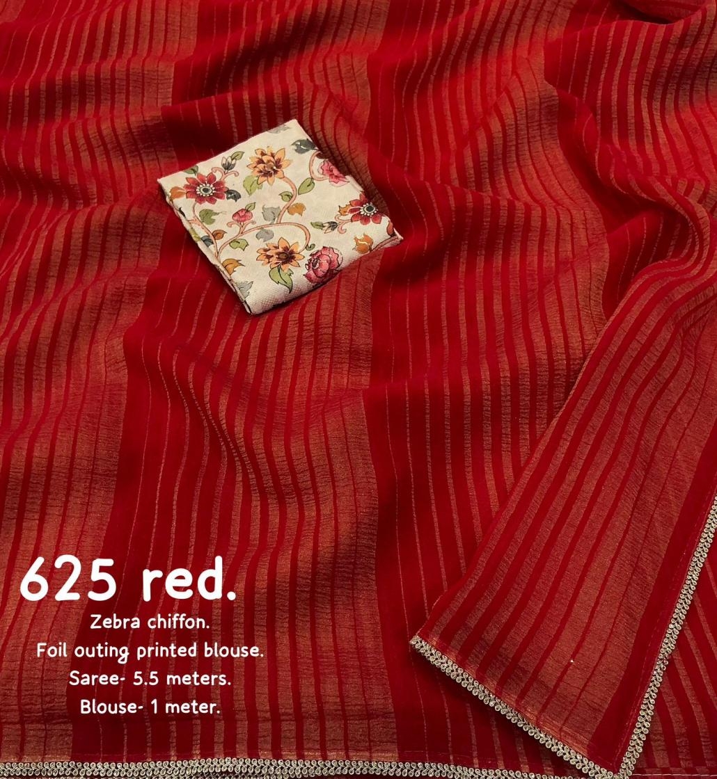 | Other Details: | new arrivals New addition our chiffon pattern saree. *RED SINGLE COLOR EDITION. kc - 625 zebra chiffon. pure type chiffon saree with zari woven zebra linings. Patched lace. Perfectly matched crape silk printed blouse. Rate - 999+ship. Top trusted quality |