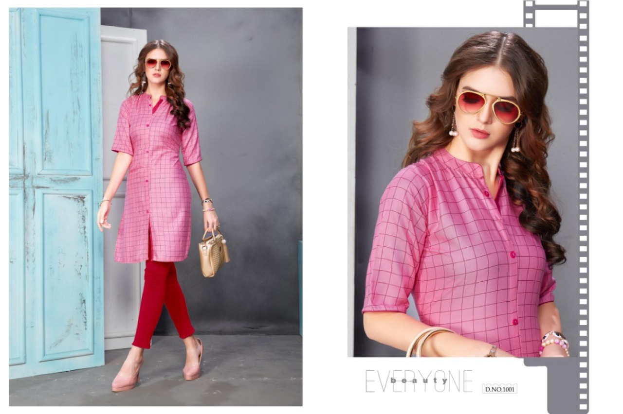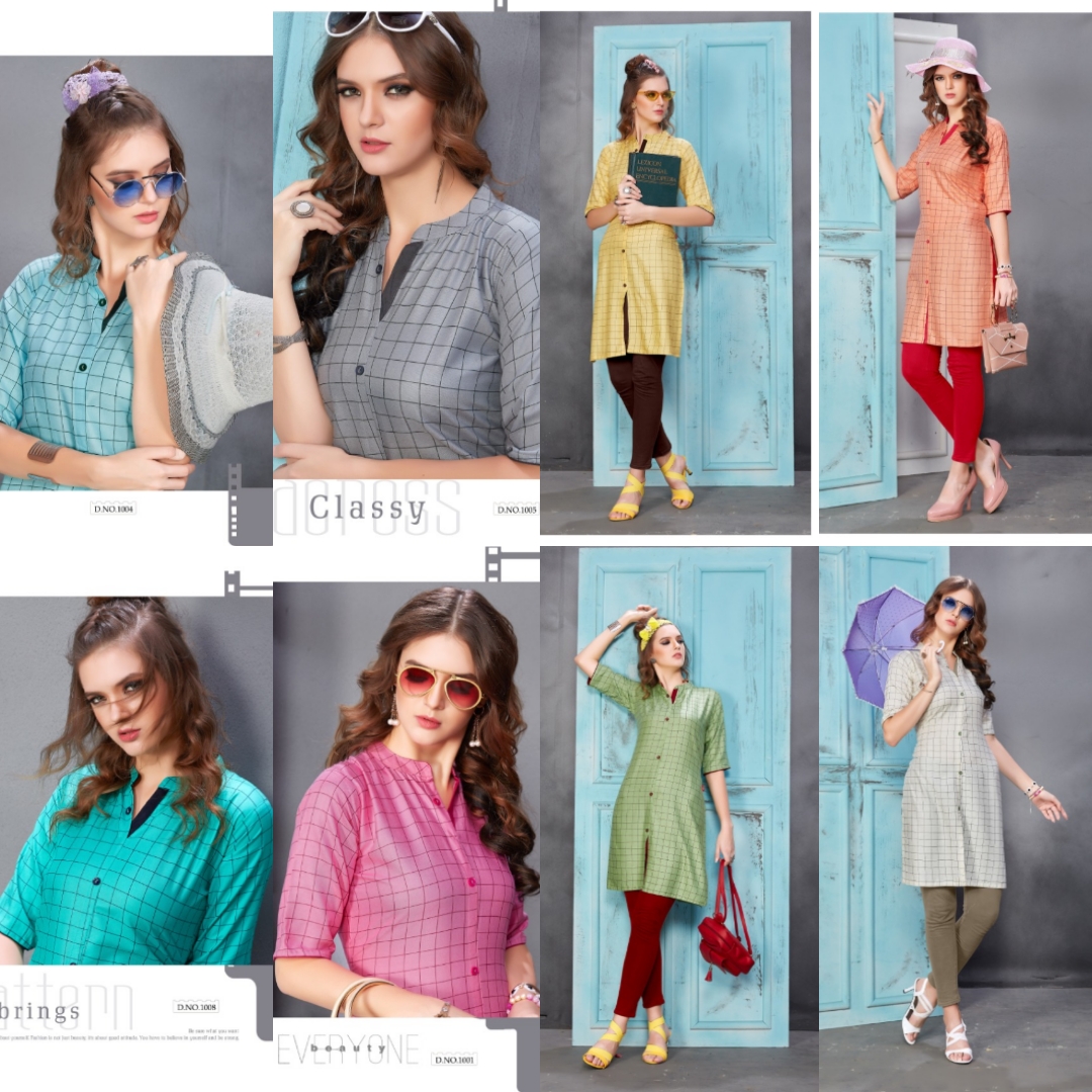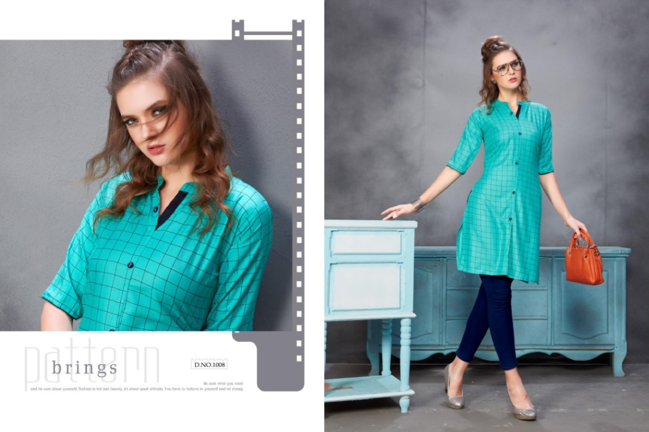 | Name: | Kersom Rimzim Vol 5 Rayon Casual Wear Shirt Style Kurti Collection |