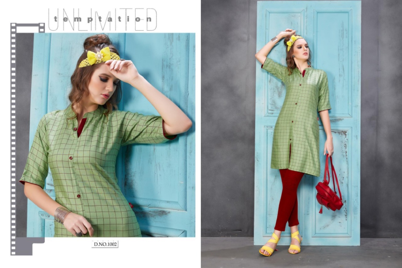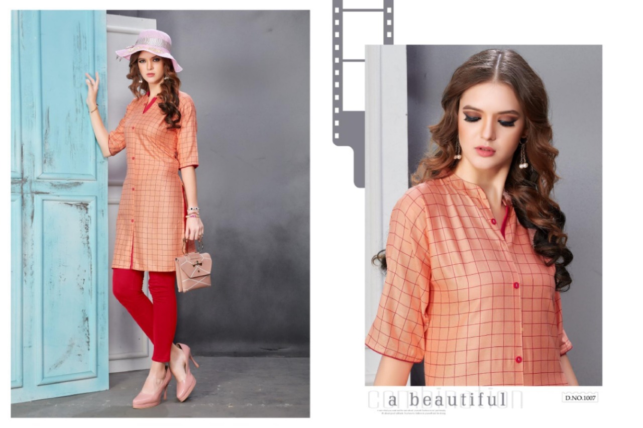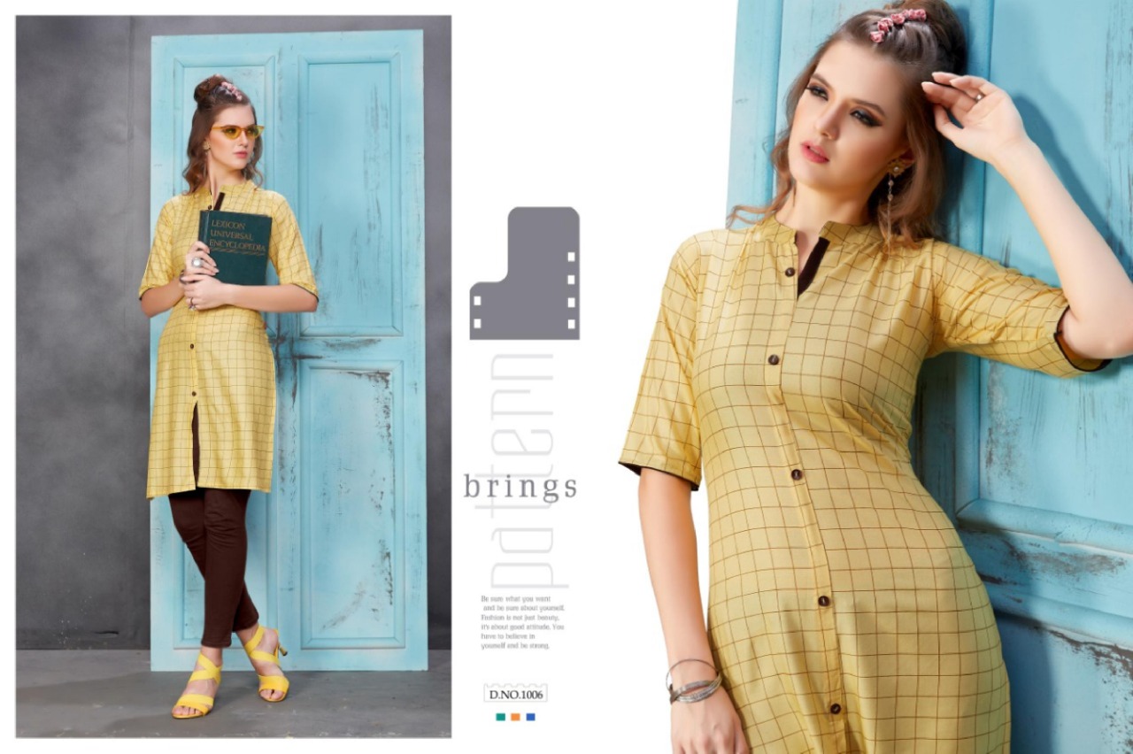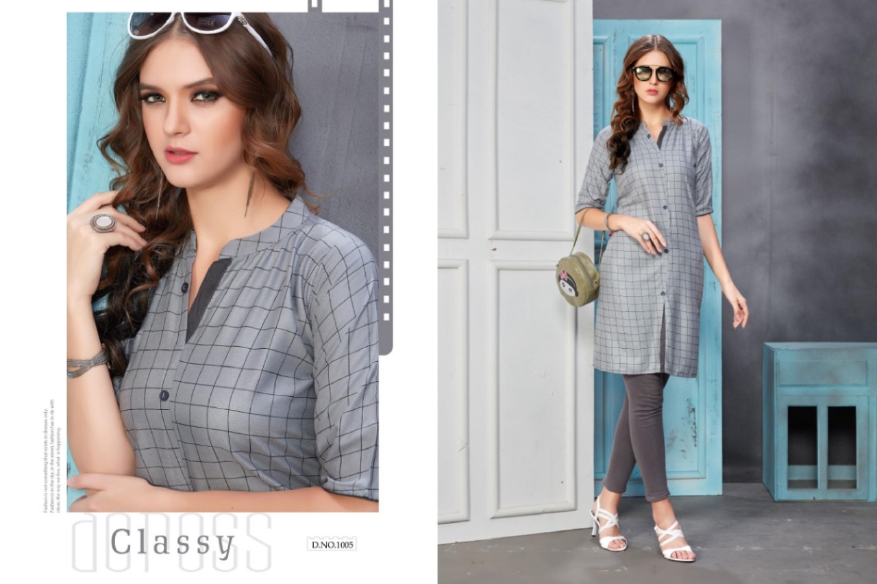| Name: | Kersom Rimzim Vol 5 Rayon Casual Wear Shirt Style Kurti Collection |