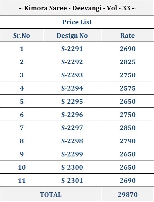 | Other Details: | Fashion And Style Always Depends On Good Color And Fantastic Combination Of Shades And So We Create Best Shades To Enhance Your Beauty And Personality. Keep Ahead In Fashion With This Trendy Saree Making It Comfortable To Wear For Extended Periods Of Time. Brand : Kimora Catalog Name : Deewangi Vol -33 Series: 2291 To 2301 Saree Fabric : Fancy Fabric It Is Beautified With Sequins ,Dhaga ,Thread Embroidered Work Butti On Saree & Across The Border. Blouse Fabric : Art Silk Having Digital Print & Embroidery On The Sleeves Rate : List Attached +5% Gst Occasion : Ceremonial, Party Wear,Festival Wear |
