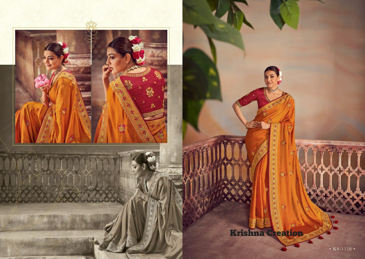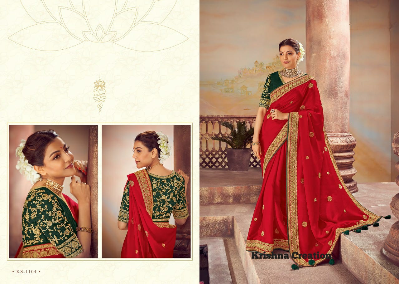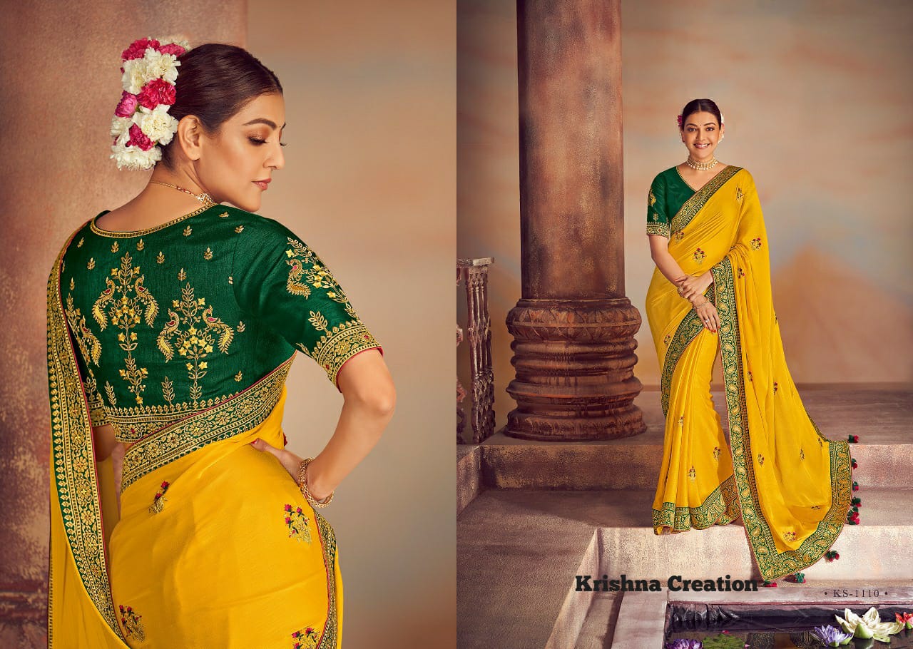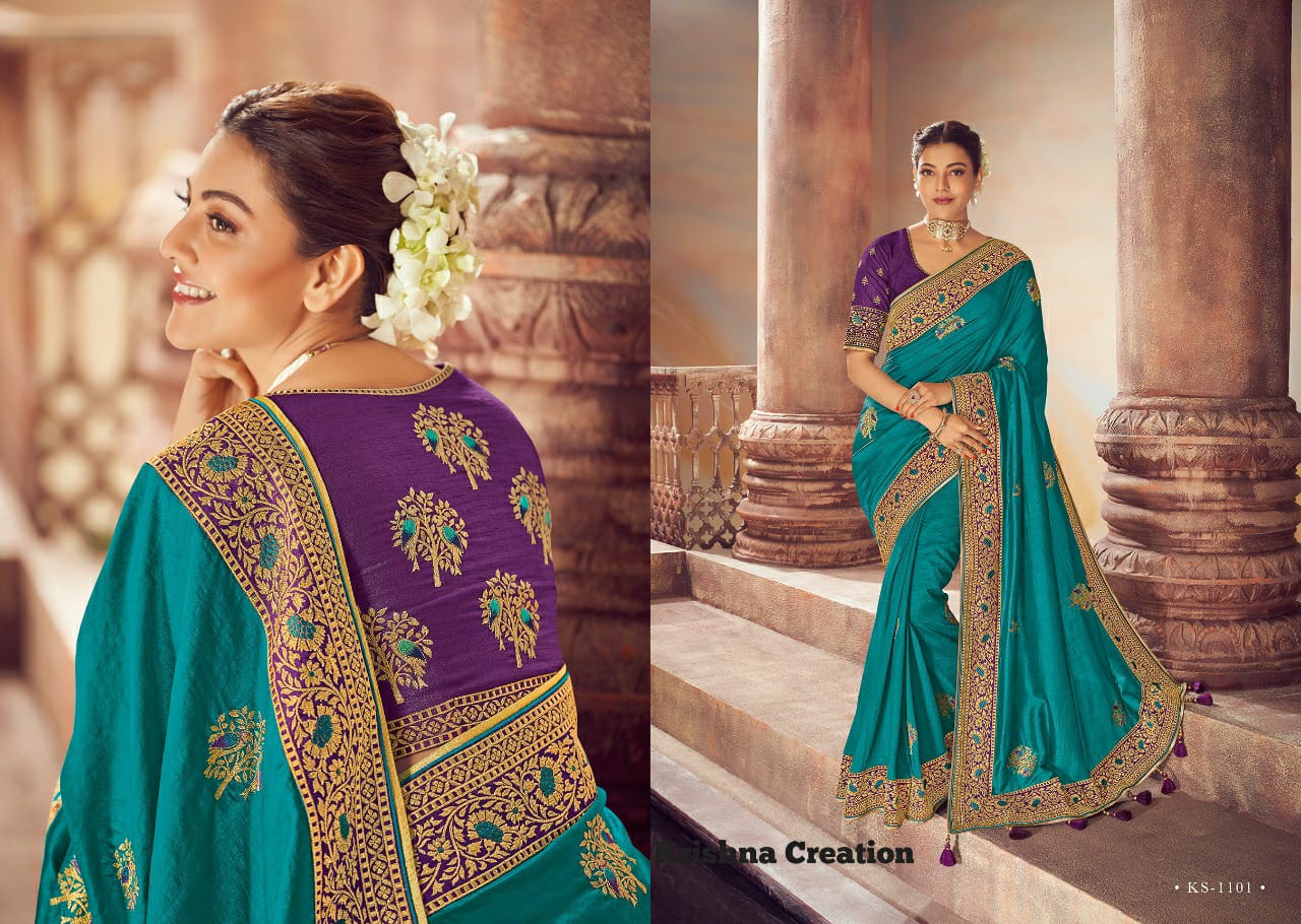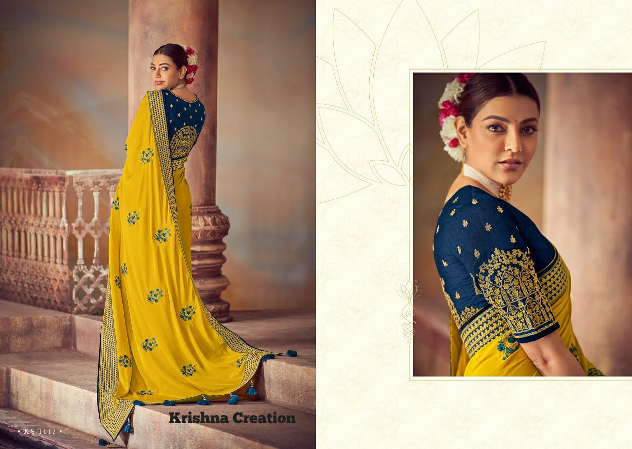 Other Details: | KIMORA FASHION PRESENTS ITS LATEST DESIGNER CATALOGUE . KAJAL VOL 6 KAJAL AGGARWAL CELEBRATY KS 1101- KS 1118 SERIES FANCY HEAVY FABRICS Cut-6.30 Mtrs 18 PC CATALOG 5%GST APPLICABLE SET TO SET DELIVERY 5-6 days |