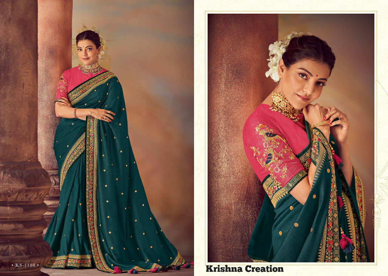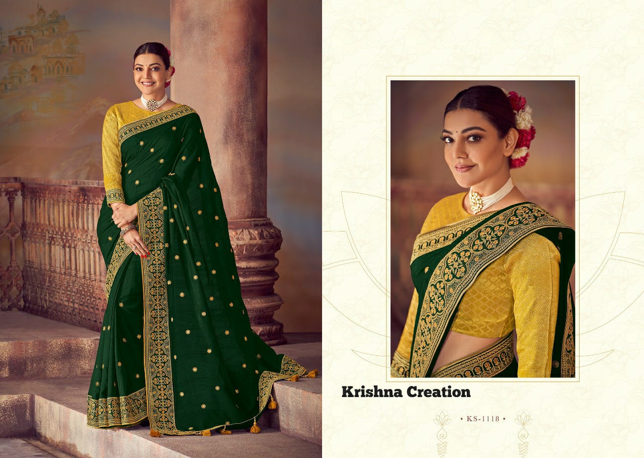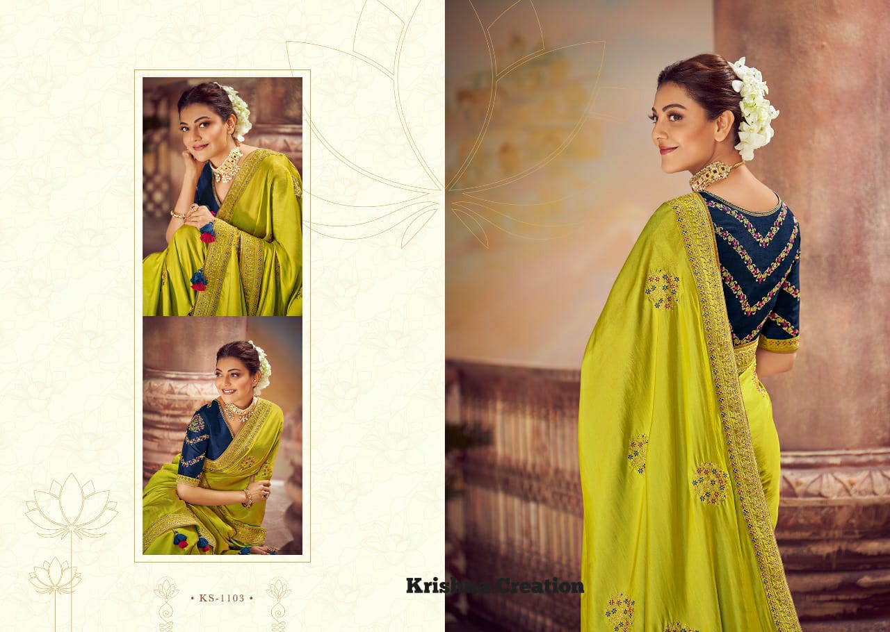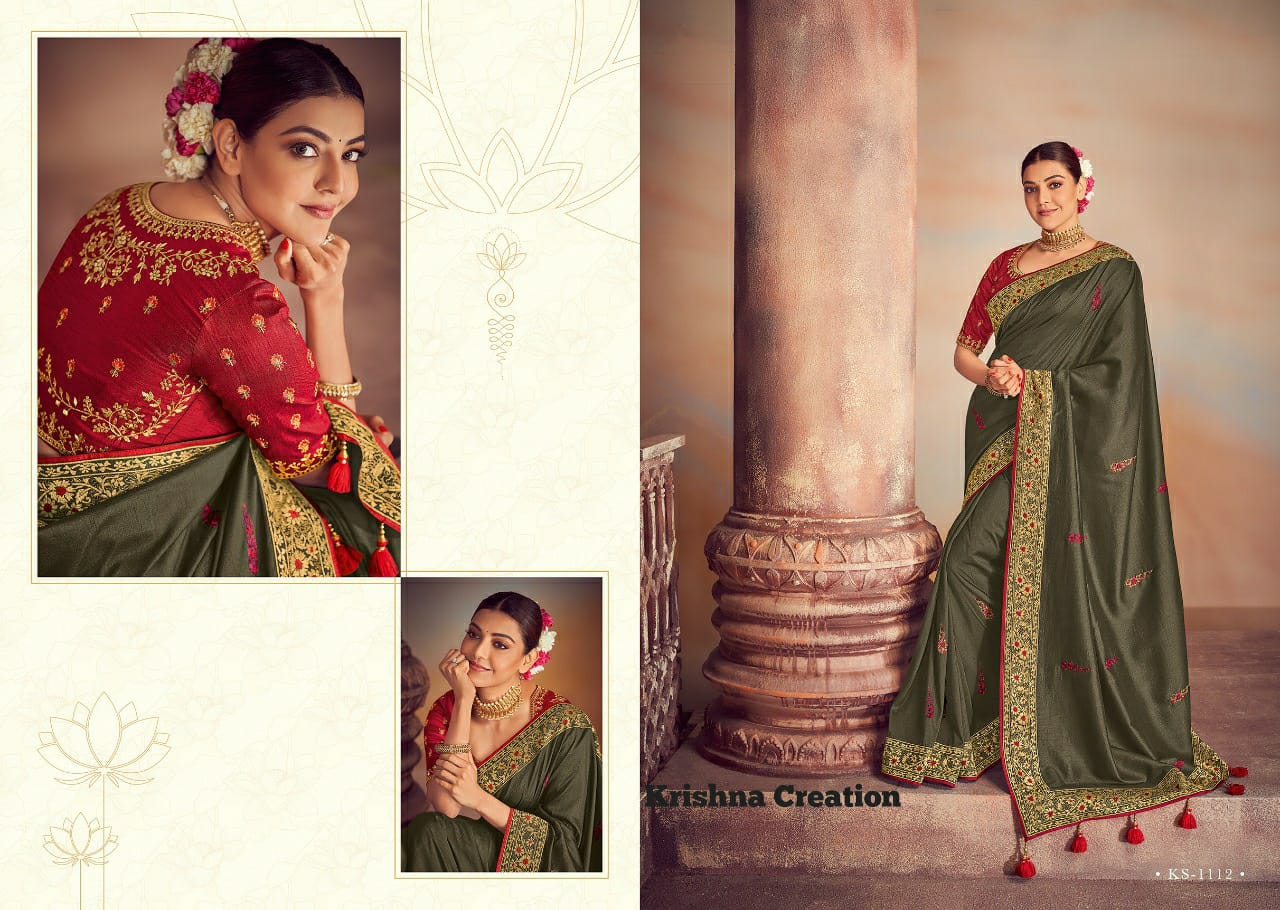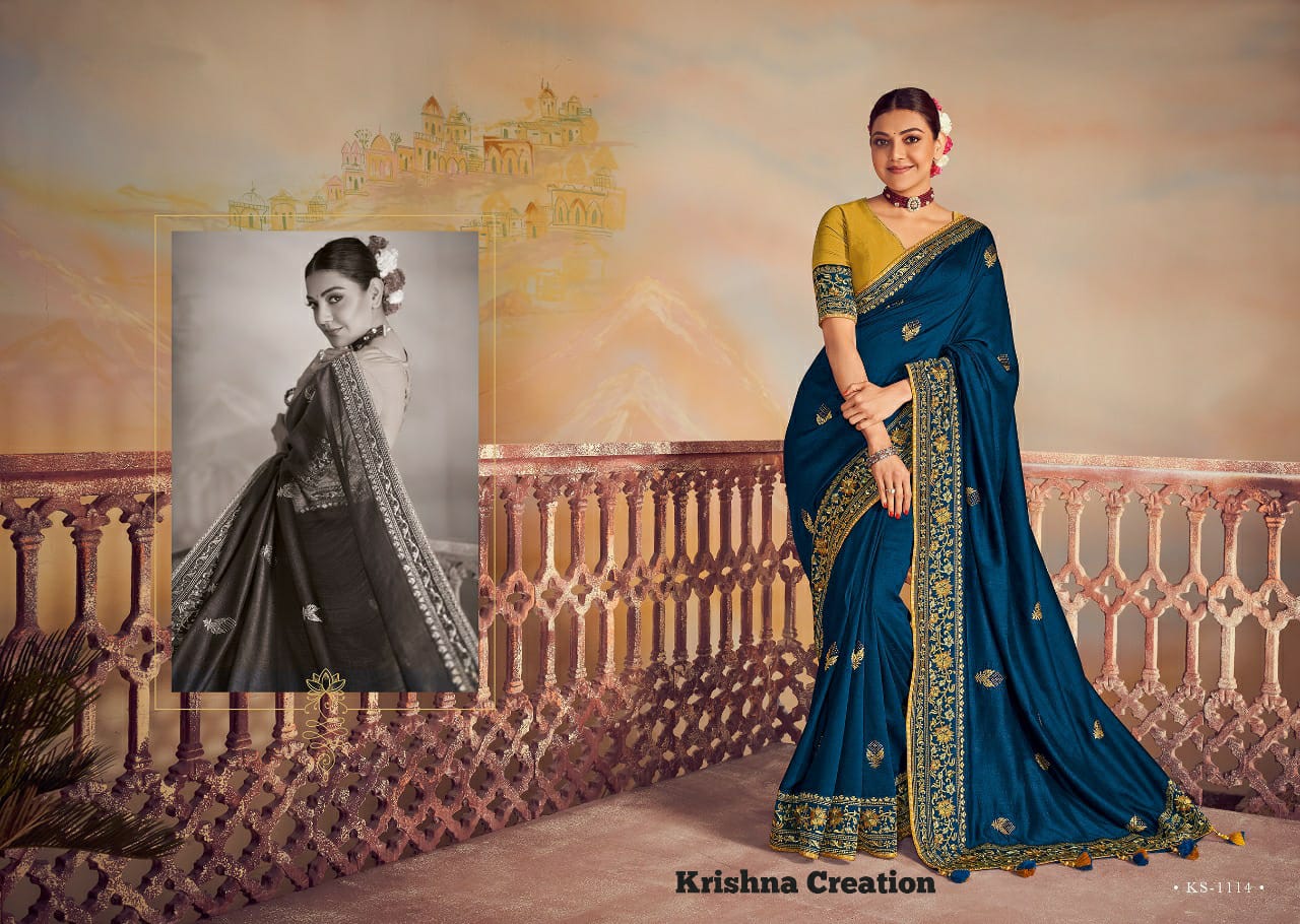Other Details: | KIMORA FASHION PRESENTS ITS LATEST DESIGNER CATALOGUE . KAJAL VOL 6 KAJAL AGGARWAL CELEBRATY KS 1101- KS 1118 SERIES FANCY HEAVY FABRICS Cut-6.30 Mtrs 18 PC CATALOG 5%GST APPLICABLE SET TO SET DELIVERY 5-6 days |