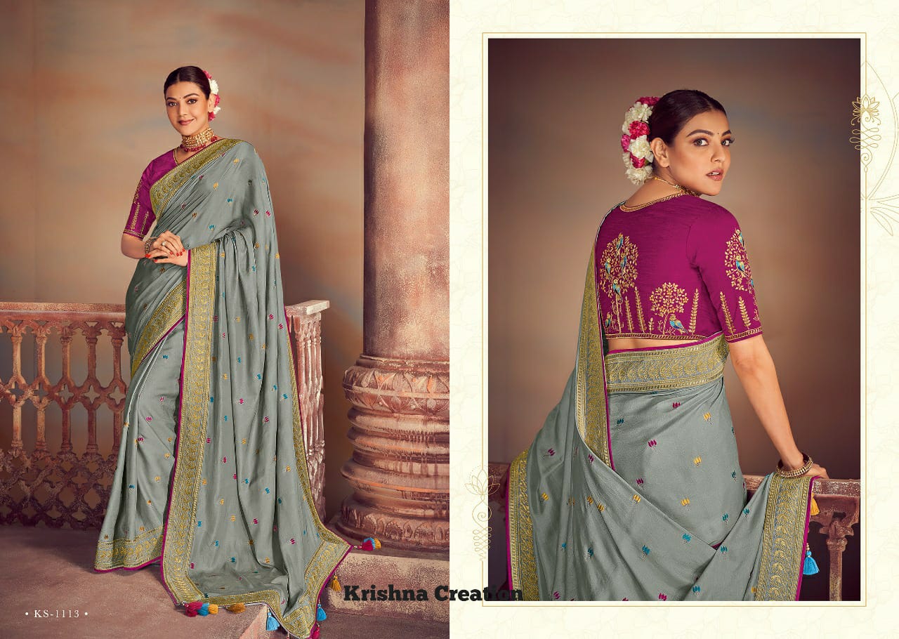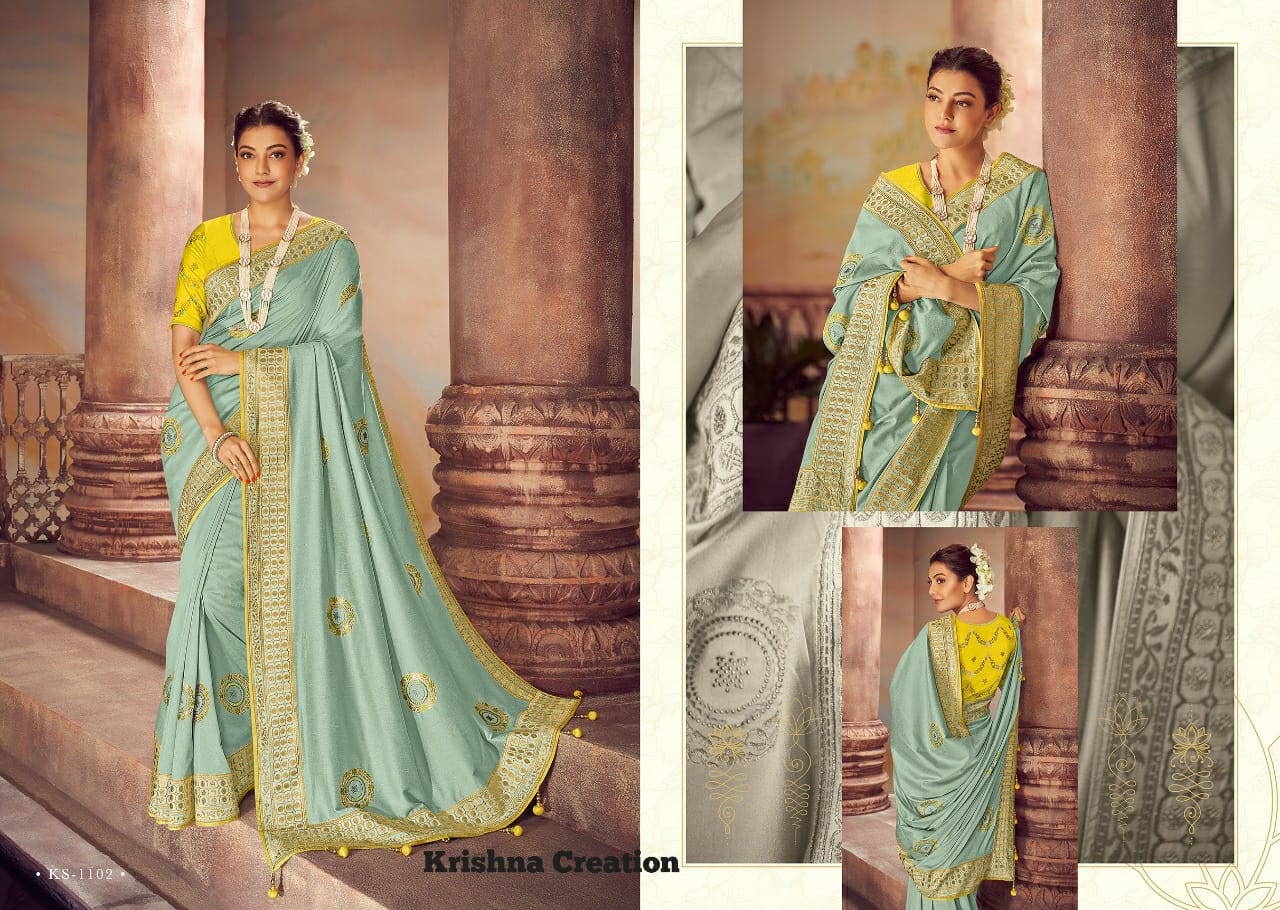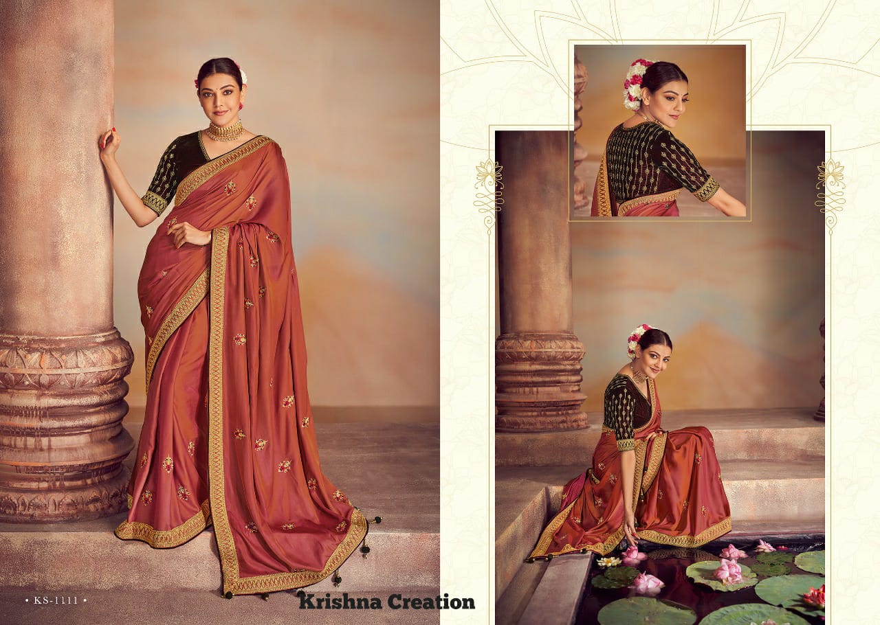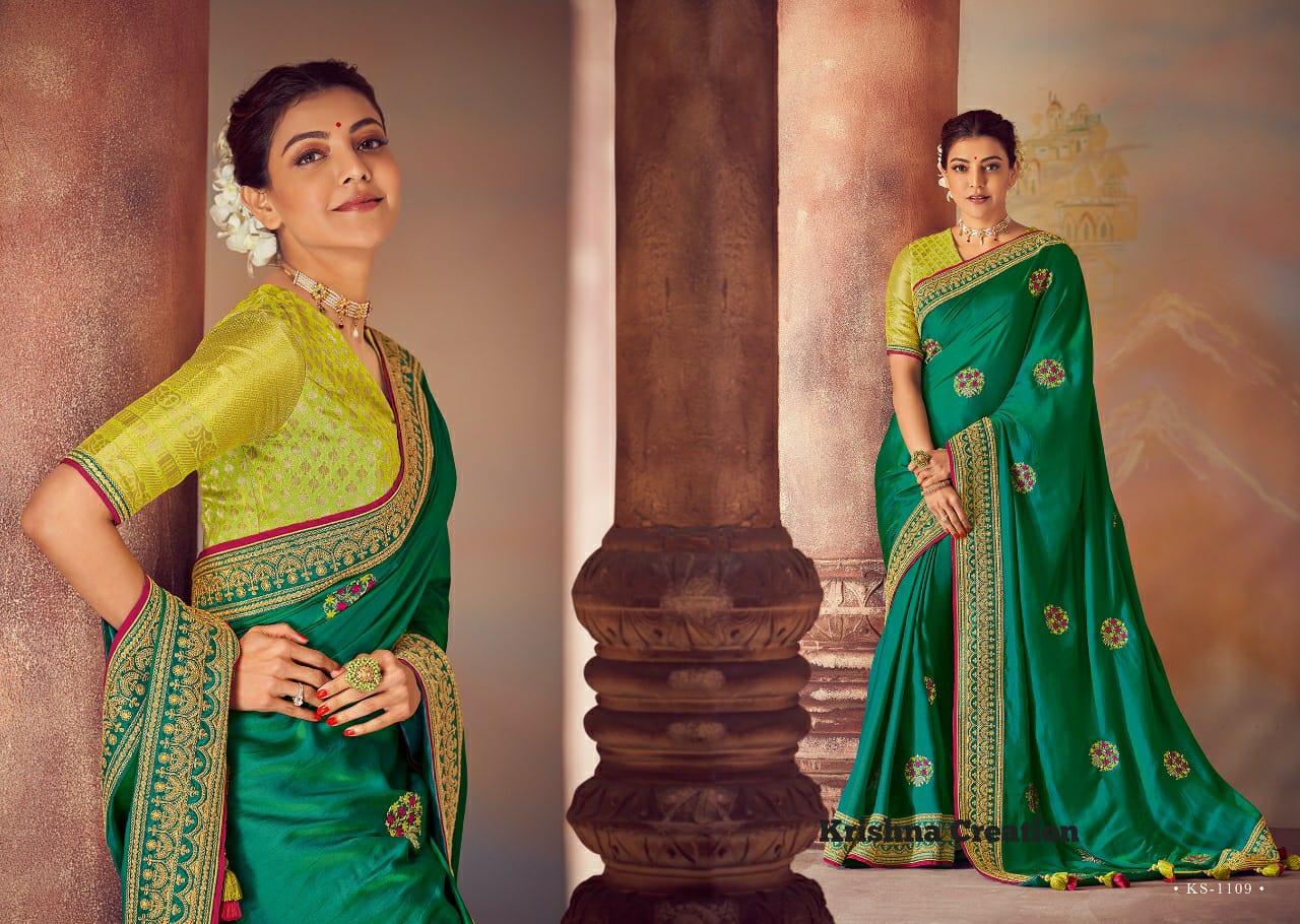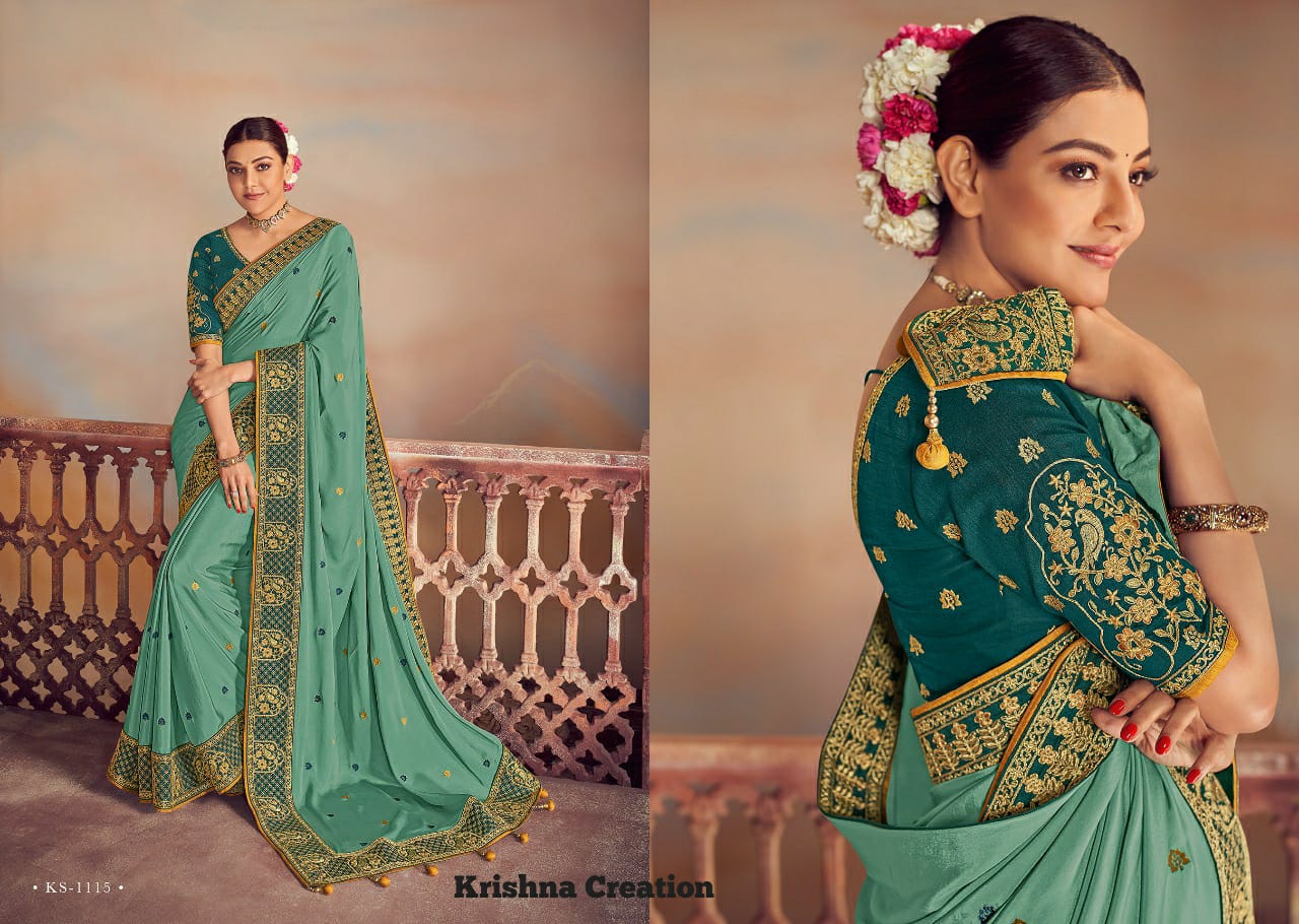 Other Details: | KIMORA FASHION PRESENTS ITS LATEST DESIGNER CATALOGUE . KAJAL VOL 6 KAJAL AGGARWAL CELEBRATY KS 1101- KS 1118 SERIES FANCY HEAVY FABRICS Cut-6.30 Mtrs 18 PC CATALOG 5%GST APPLICABLE SET TO SET DELIVERY 5-6 days |