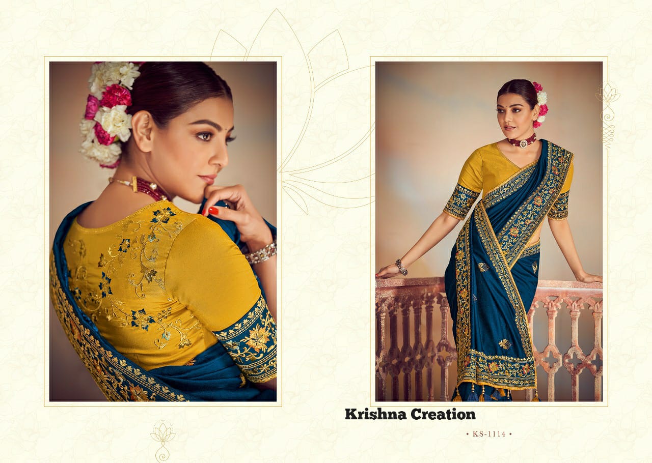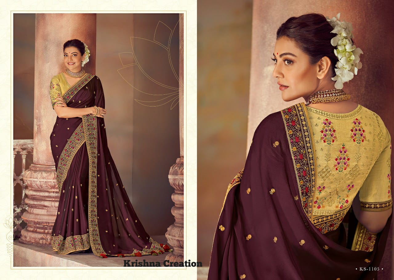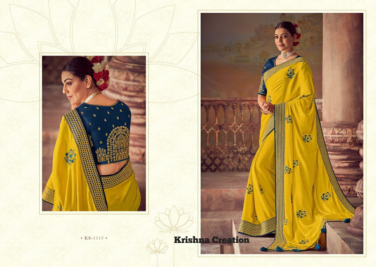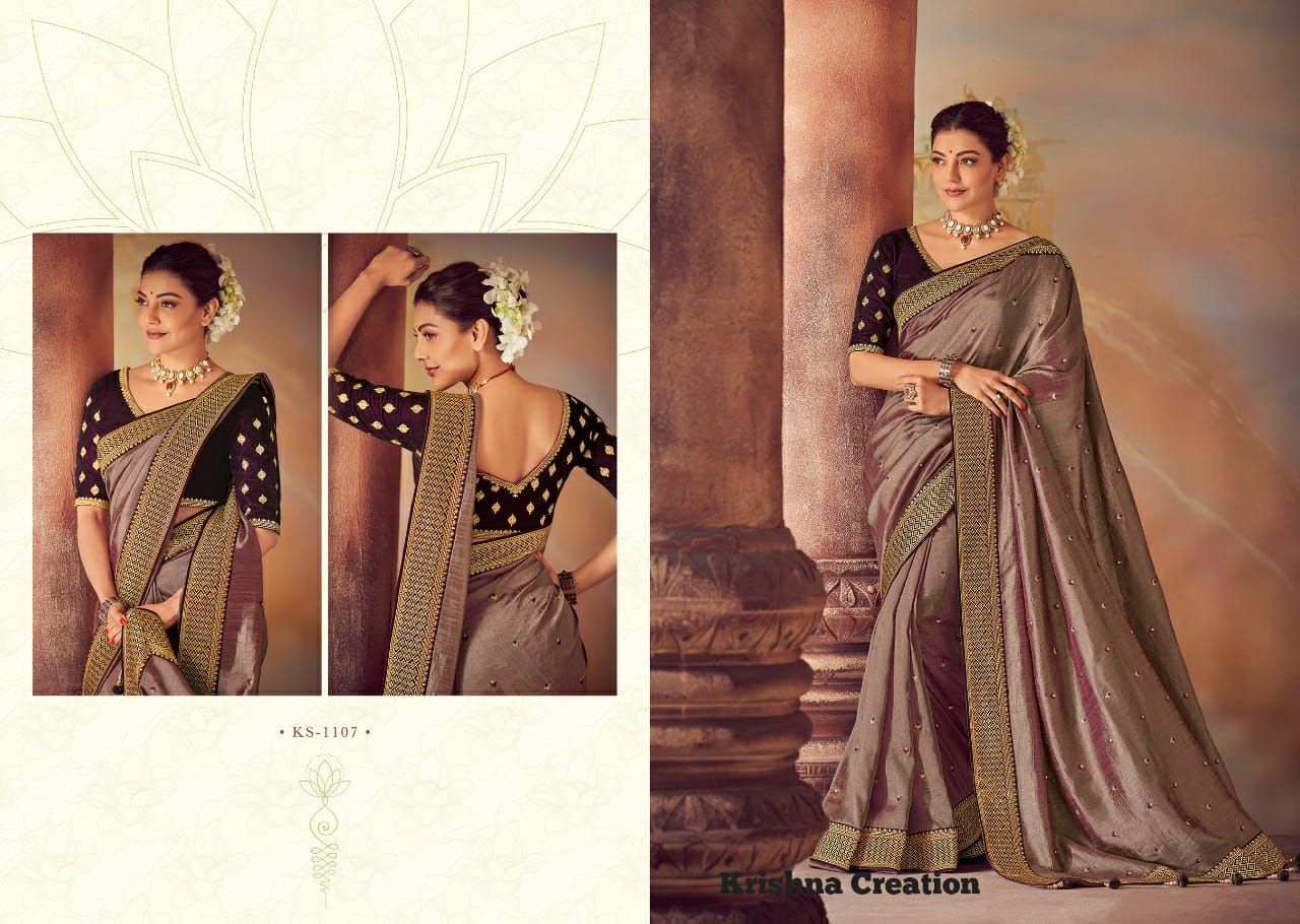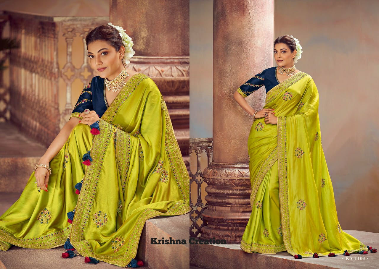 Other Details: | KIMORA FASHION PRESENTS ITS LATEST DESIGNER CATALOGUE . KAJAL VOL 6 KAJAL AGGARWAL CELEBRATY KS 1101- KS 1118 SERIES FANCY HEAVY FABRICS Cut-6.30 Mtrs 18 PC CATALOG 5%GST APPLICABLE SET TO SET DELIVERY 5-6 days |