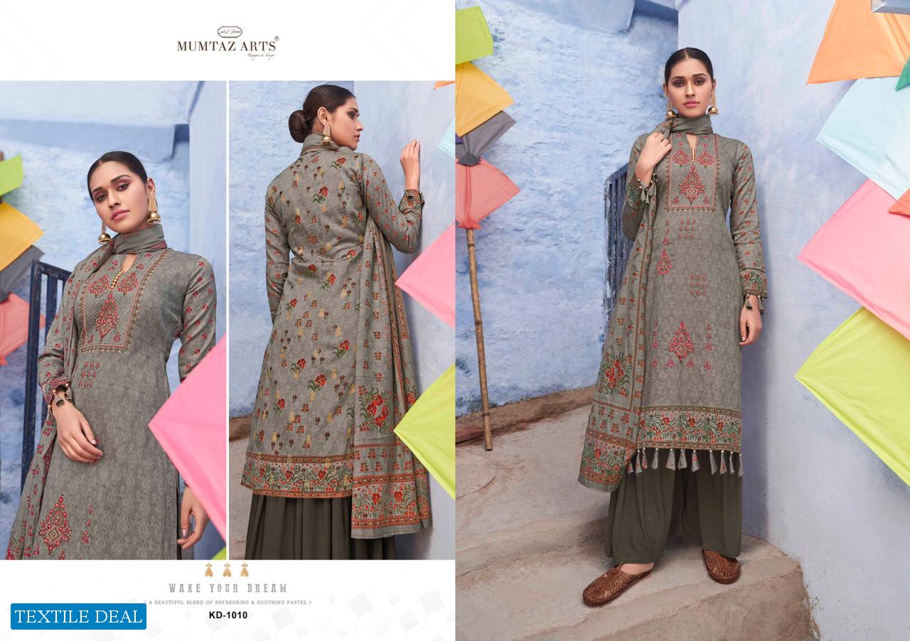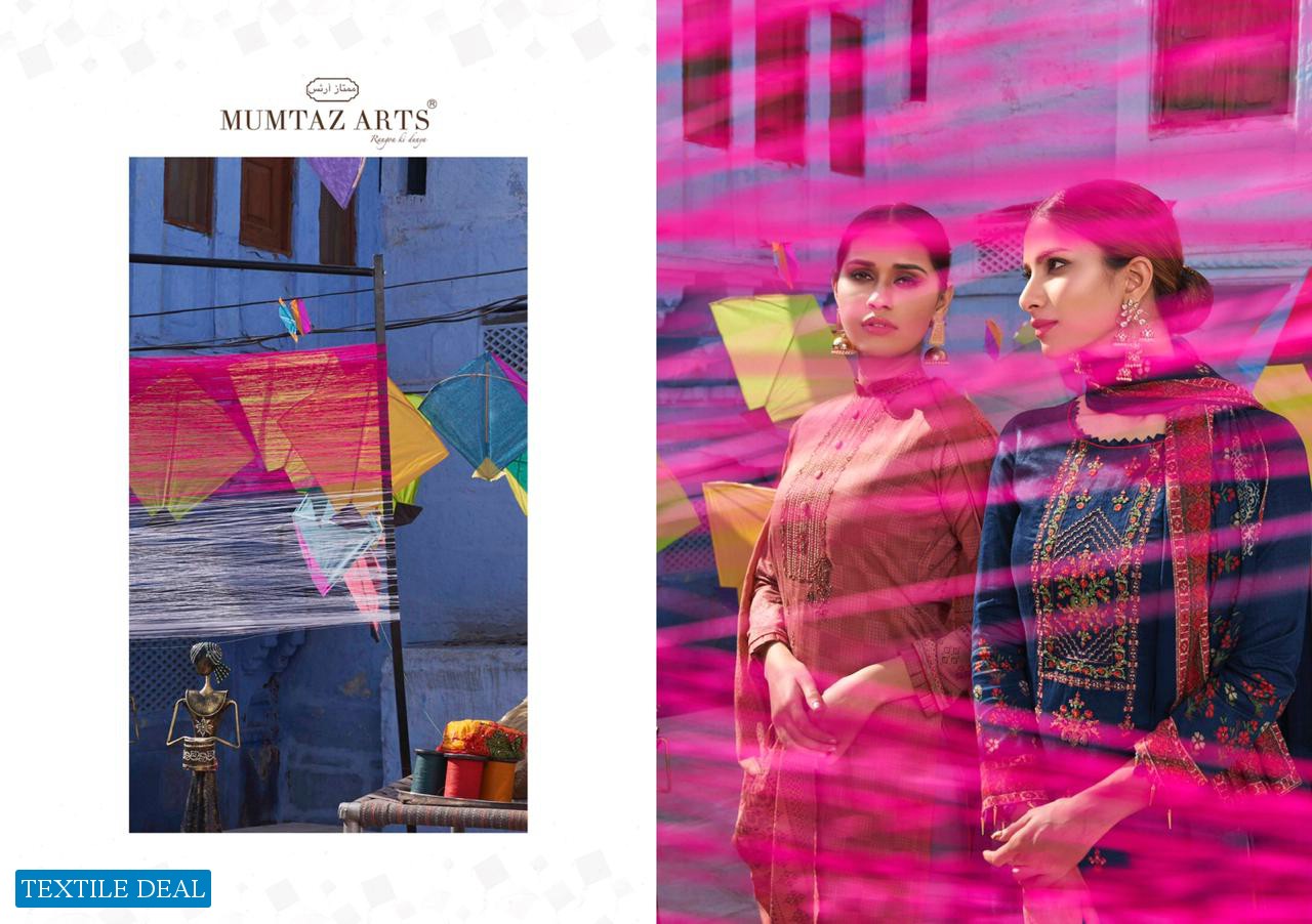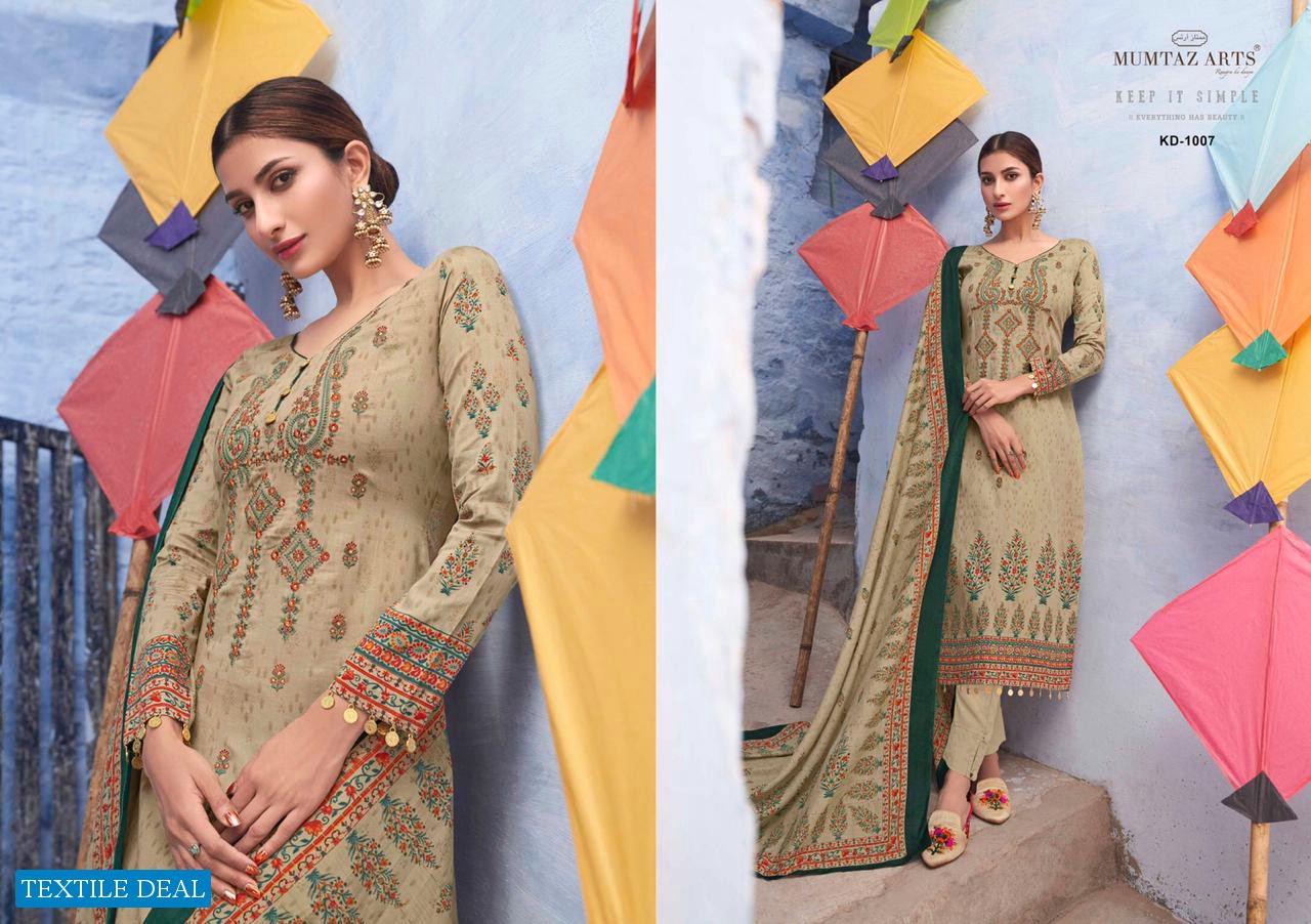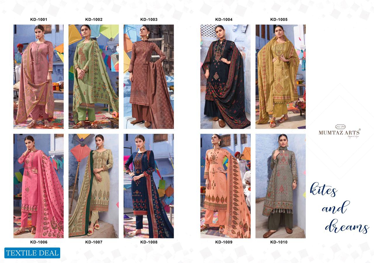 | Other Details: | MUMTAZ ARTS™ RANGON KI DUNYA Name – KITES AND DREAMS DESIGNER EMB ON SHIRT KARACHI SUITS Fabric details – Top – Pure Jam Satin Digital Print Top- Designer embroidery on shirt Bot – Pure cotton dyed (2.70 mtr app) Dup -LAWN BOX PALLU Digital Print Designs – 10 pcs Selling Rate – 711/- +GST LAWN DUPATTA RATE? DESIGNER EMB ON TOP SPECIAL POUCH PACKING LEATHER BAG ? PACKING |