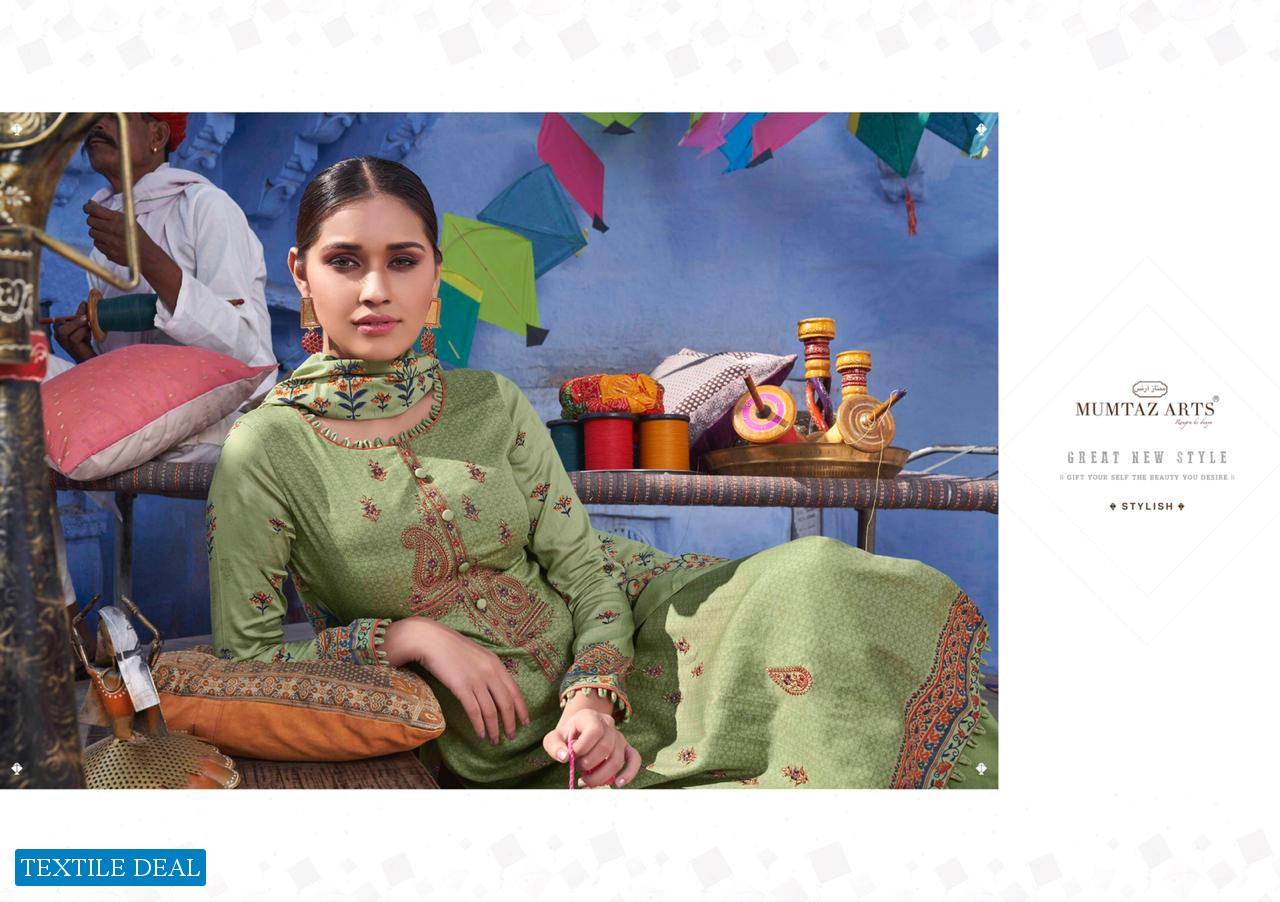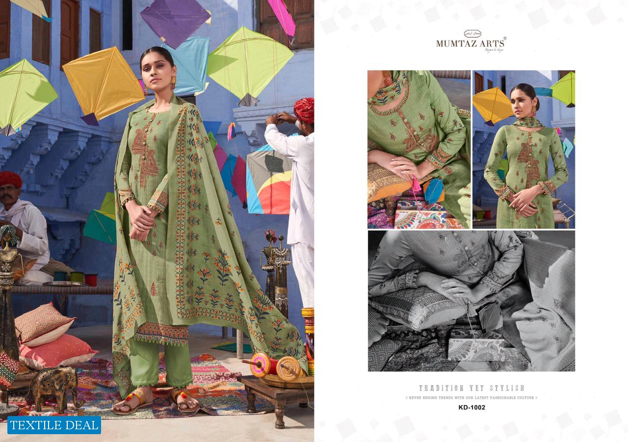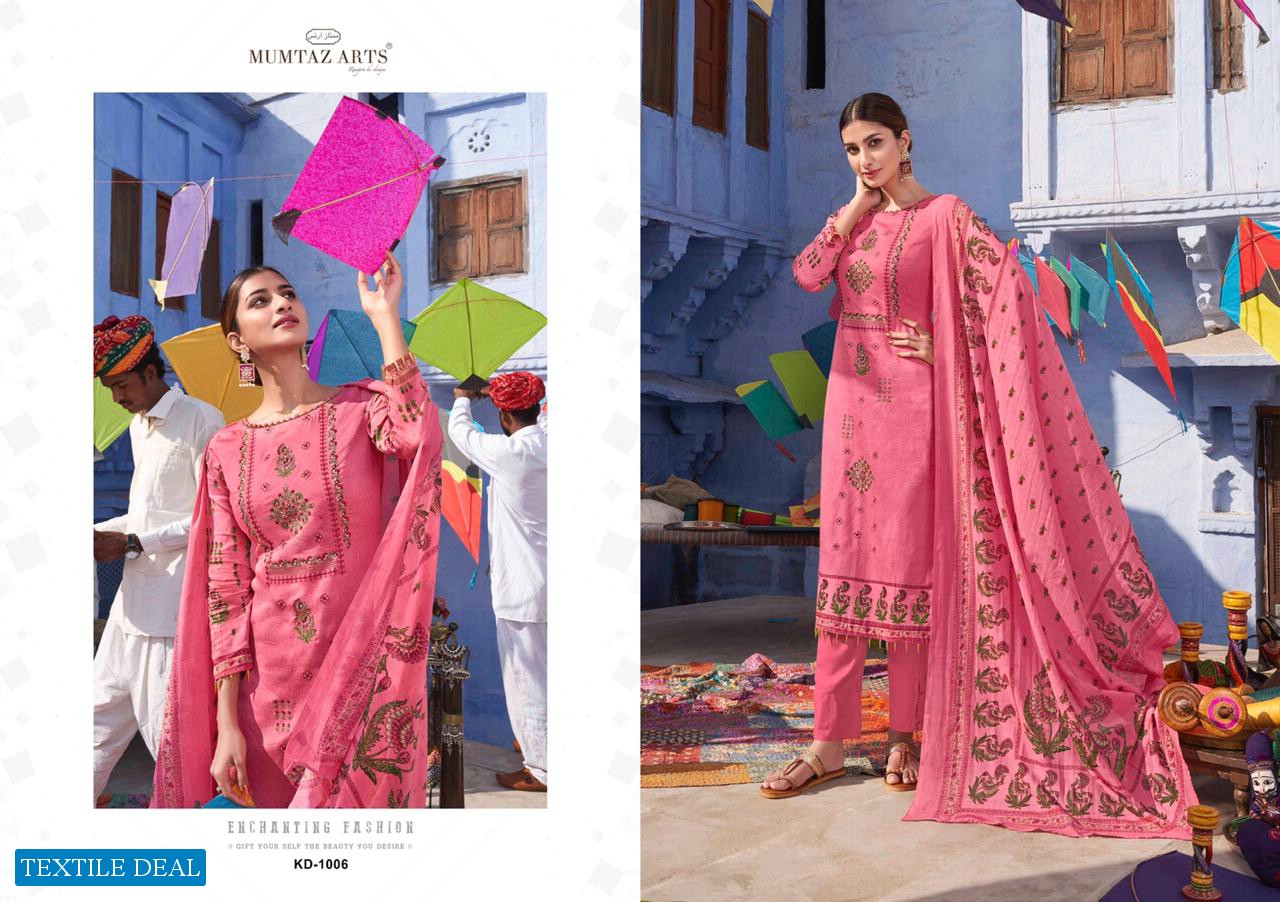 | Other Details: | MUMTAZ ARTS™ RANGON KI DUNYA Name – KITES AND DREAMS DESIGNER EMB ON SHIRT KARACHI SUITS Fabric details – Top – Pure Jam Satin Digital Print Top- Designer embroidery on shirt Bot – Pure cotton dyed (2.70 mtr app) Dup -LAWN BOX PALLU Digital Print Designs – 10 pcs Selling Rate – 711/- +GST LAWN DUPATTA RATE? DESIGNER EMB ON TOP SPECIAL POUCH PACKING LEATHER BAG ? PACKING |