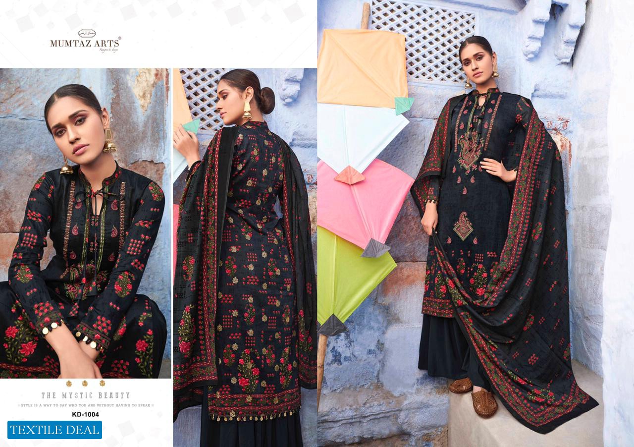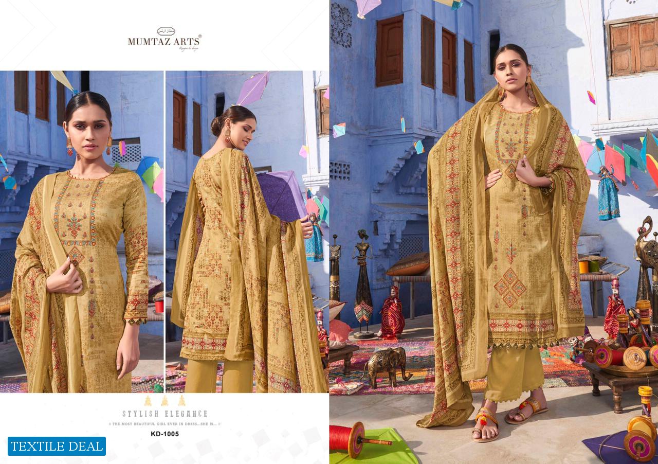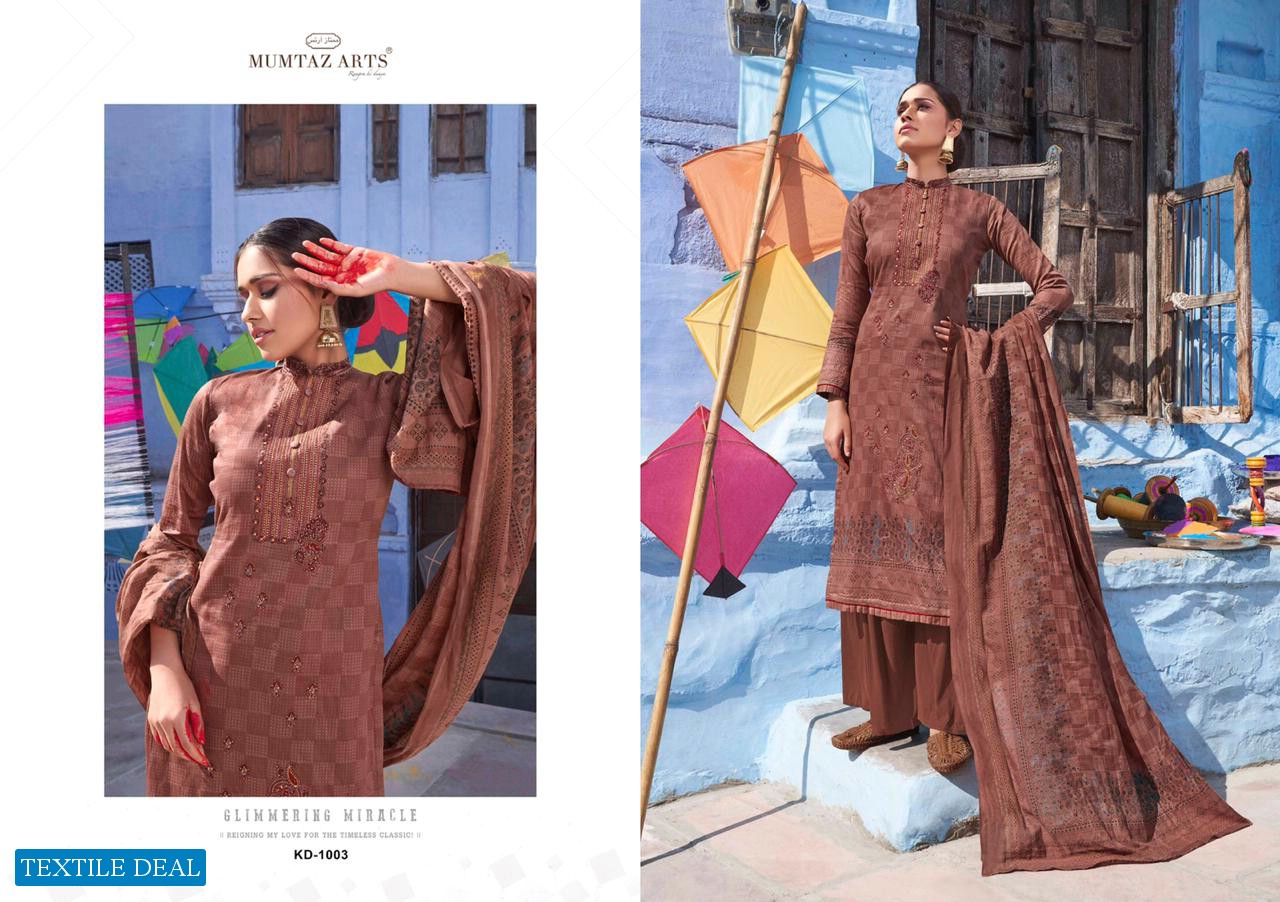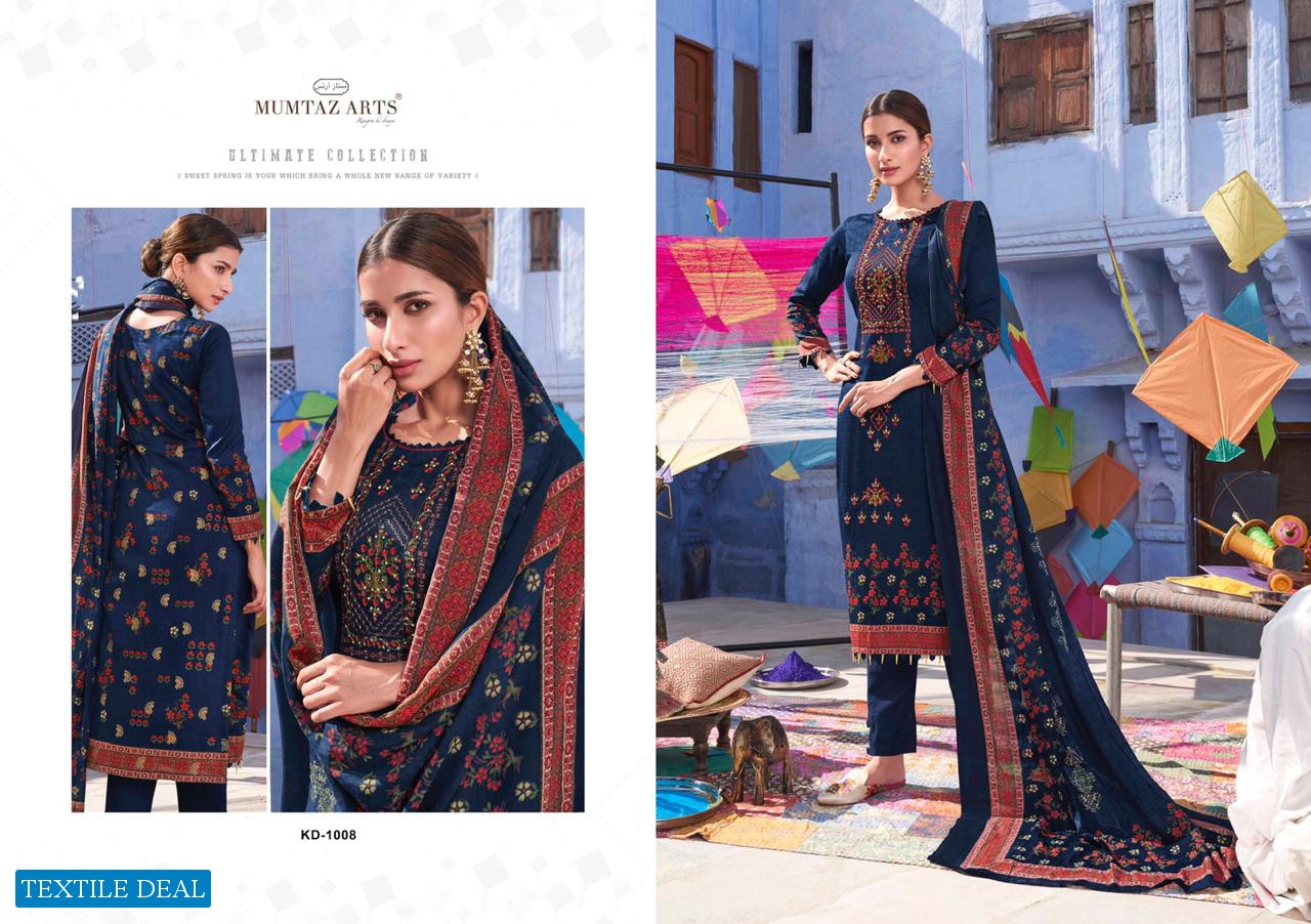 | Other Details: | MUMTAZ ARTS™ RANGON KI DUNYA Name – KITES AND DREAMS DESIGNER EMB ON SHIRT KARACHI SUITS Fabric details – Top – Pure Jam Satin Digital Print Top- Designer embroidery on shirt Bot – Pure cotton dyed (2.70 mtr app) Dup -LAWN BOX PALLU Digital Print Designs – 10 pcs Selling Rate – 711/- +GST LAWN DUPATTA RATE? DESIGNER EMB ON TOP SPECIAL POUCH PACKING LEATHER BAG ? PACKING |