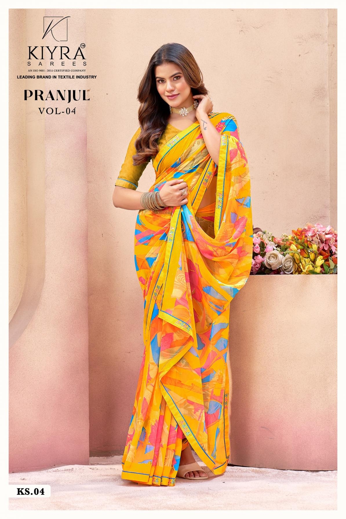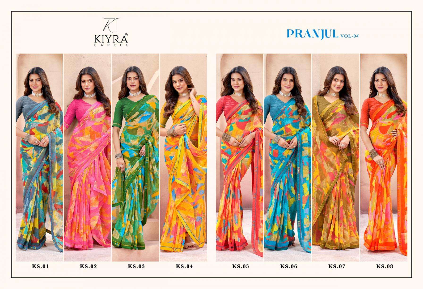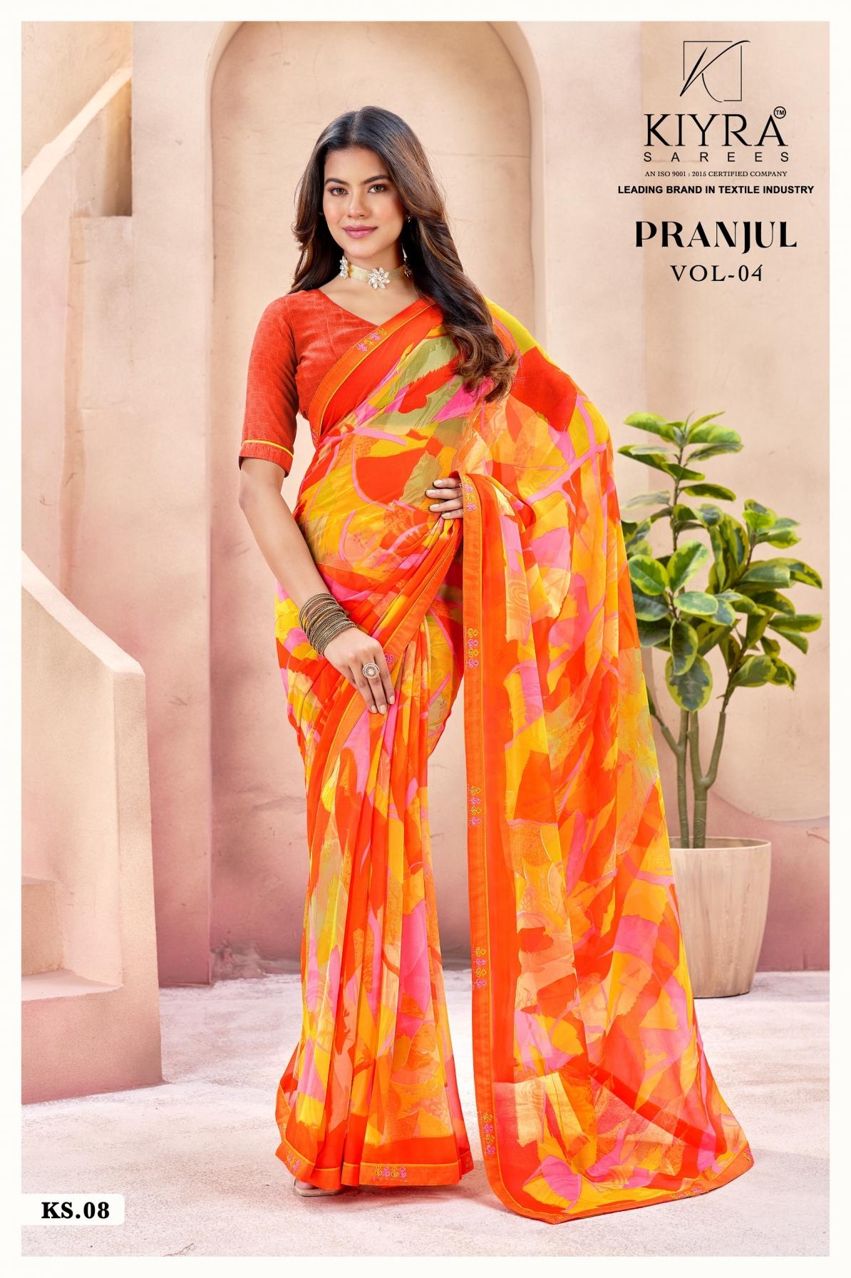 | Name: | Kiyra Pranjul Vol 4 Series 01 To 08 Hit Design Megor Georgette Saree In Wholesale Surat |