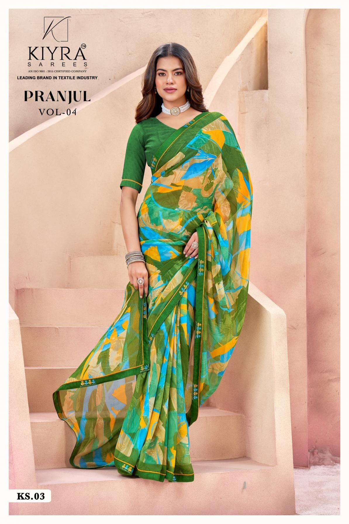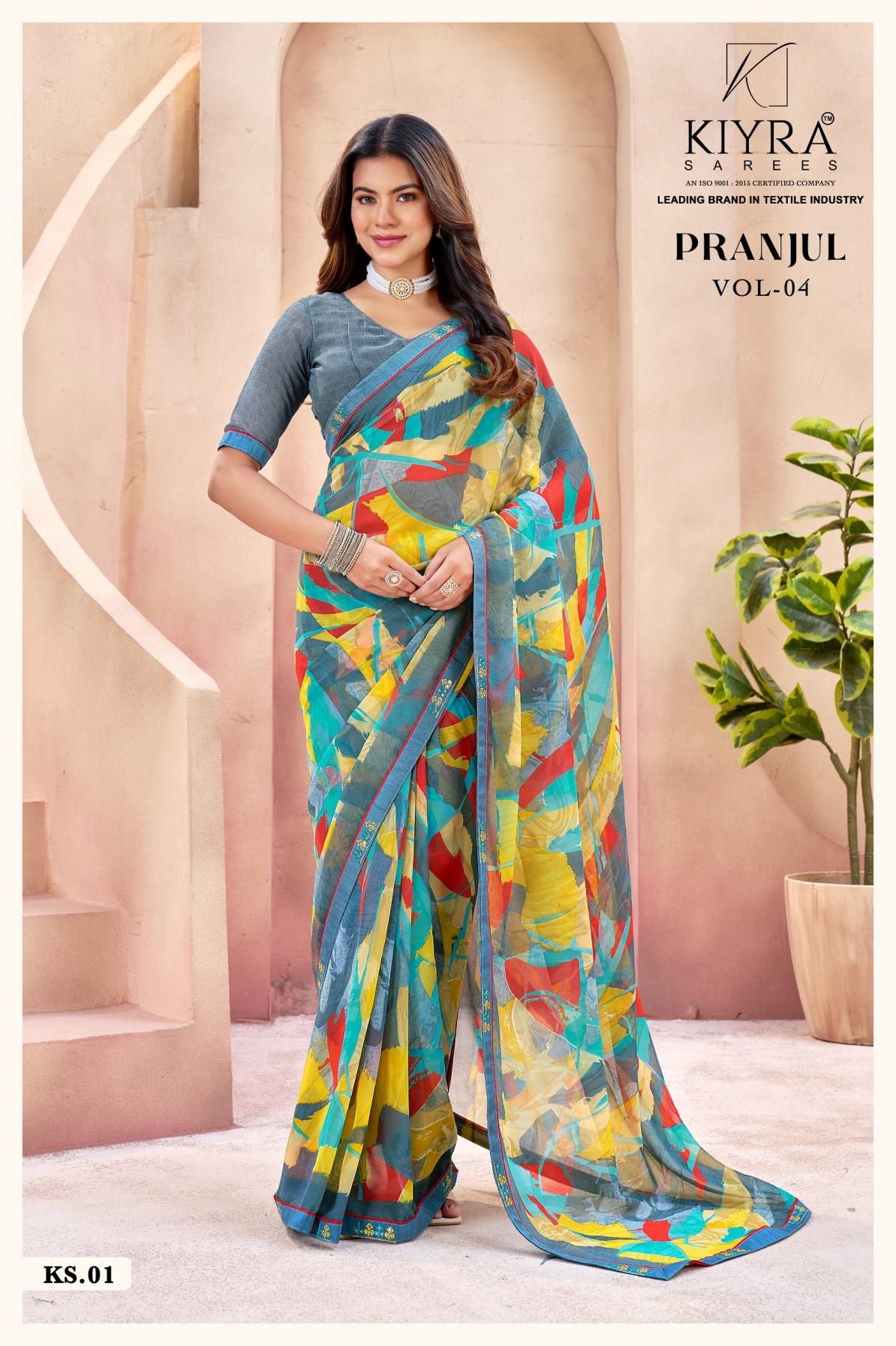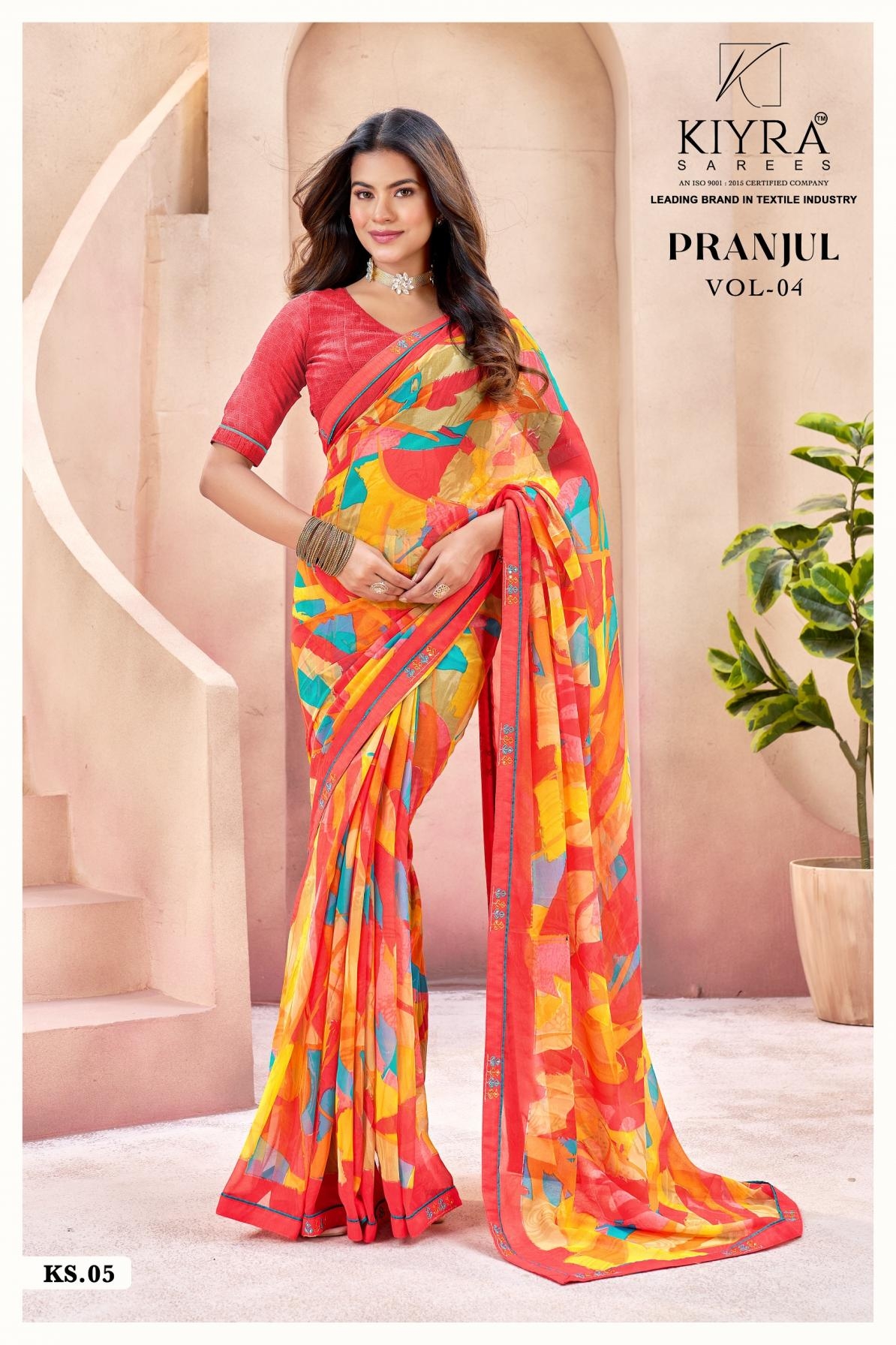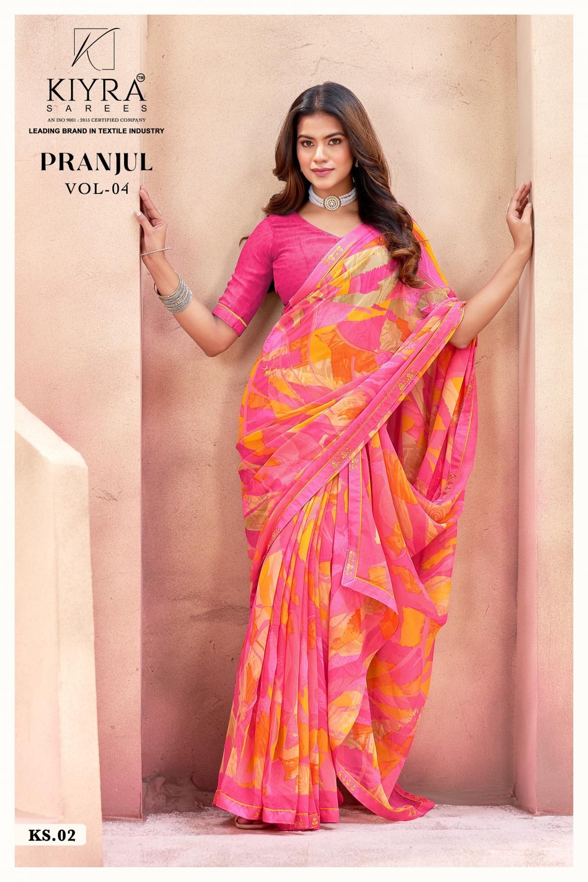 | Name: | Kiyra Pranjul Vol 4 Series 01 To 08 Hit Design Megor Georgette Saree In Wholesale Surat |