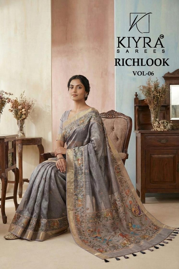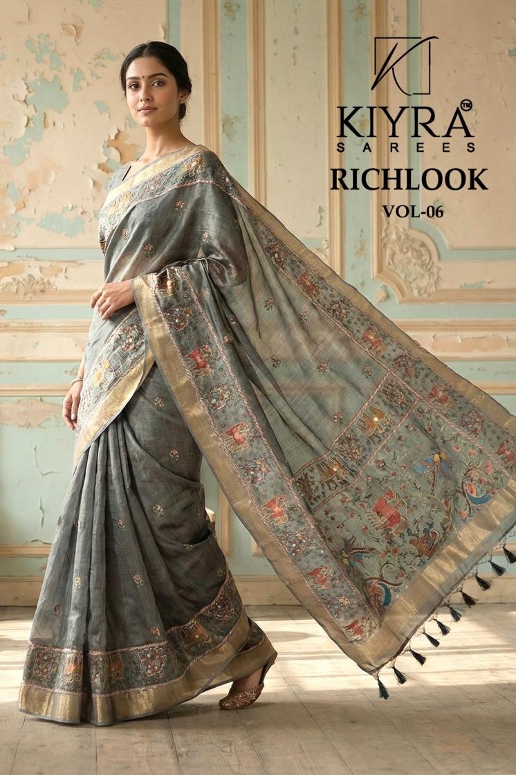 | Name: | Kiyra Richlook Vol 6 Simmer Silk Saree With Aari Work In Wholesale Surat |