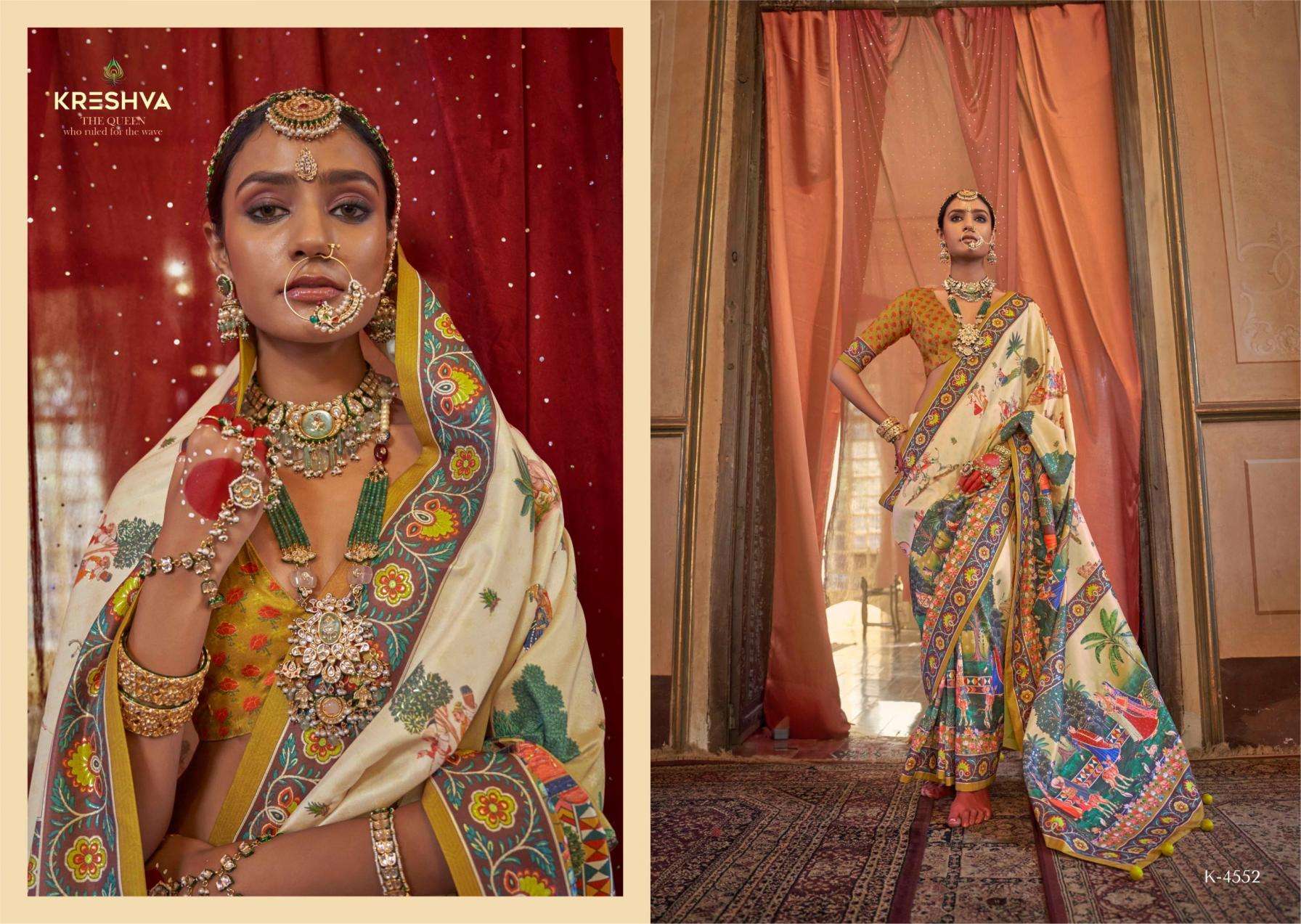 | Name: | Kreshva Irawati Series 4549-4557 P.v Silk With H.b. Luxury Print Wholesale Saree | |