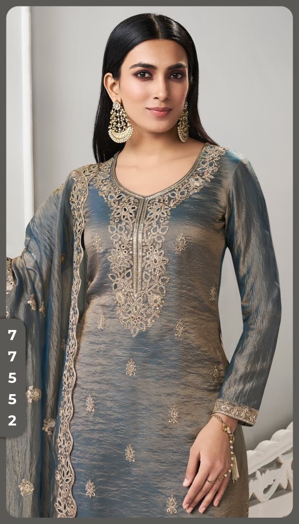 | Name: | Kuleesh Ziana Zari And Sequence Embroidered Soft Gold Silk Wholesale Suit |