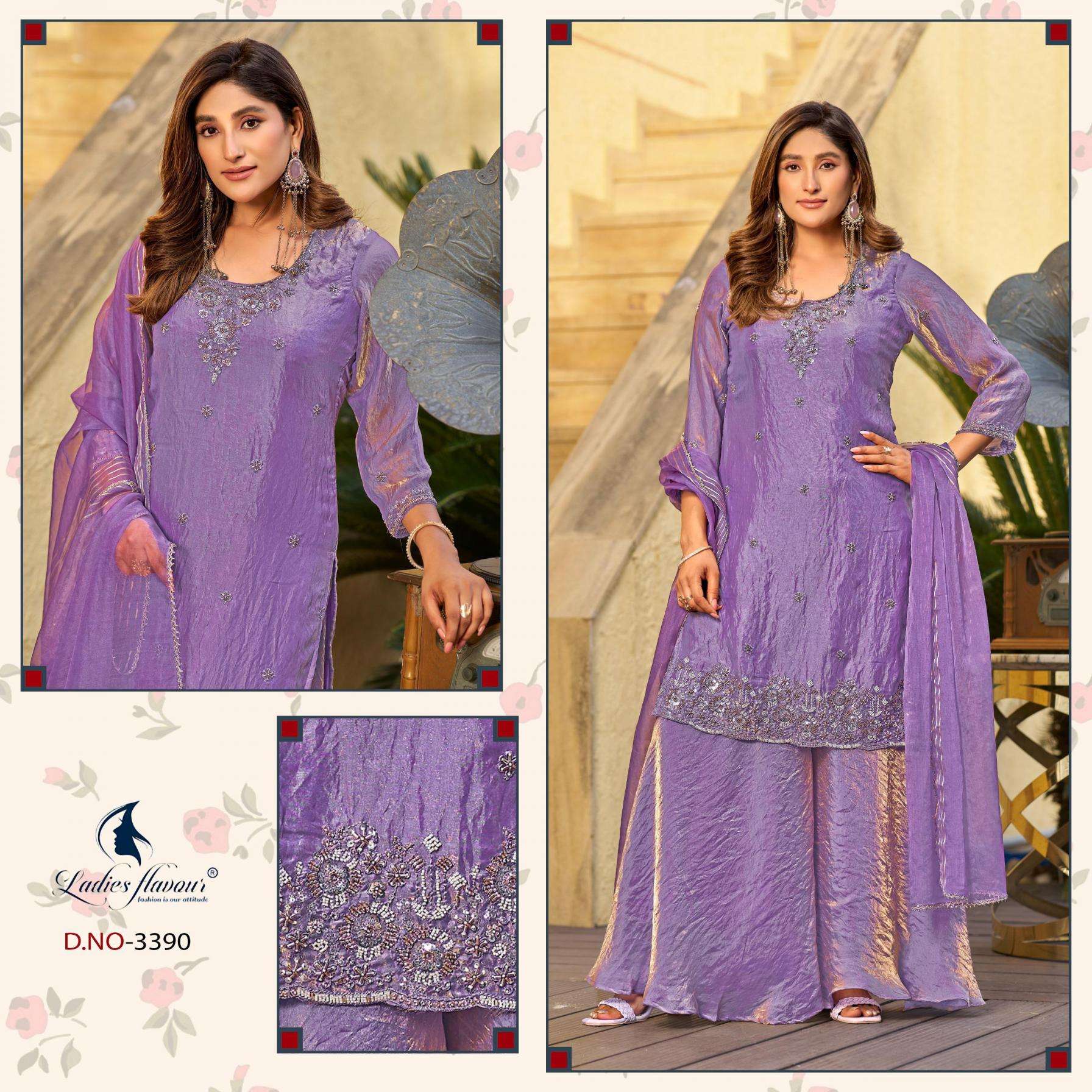 | Other Details: | 🇮🇳Ladies Flavour🇮🇳 D.no: 3390 To 3391 Rate:- 1695/-(M To 2XL) Top:- *Heavy Frendy Satin Beats Work With Inner Bottom:- Hevay Frendy Satin With Inner Dupatta:-Tabby Organza |