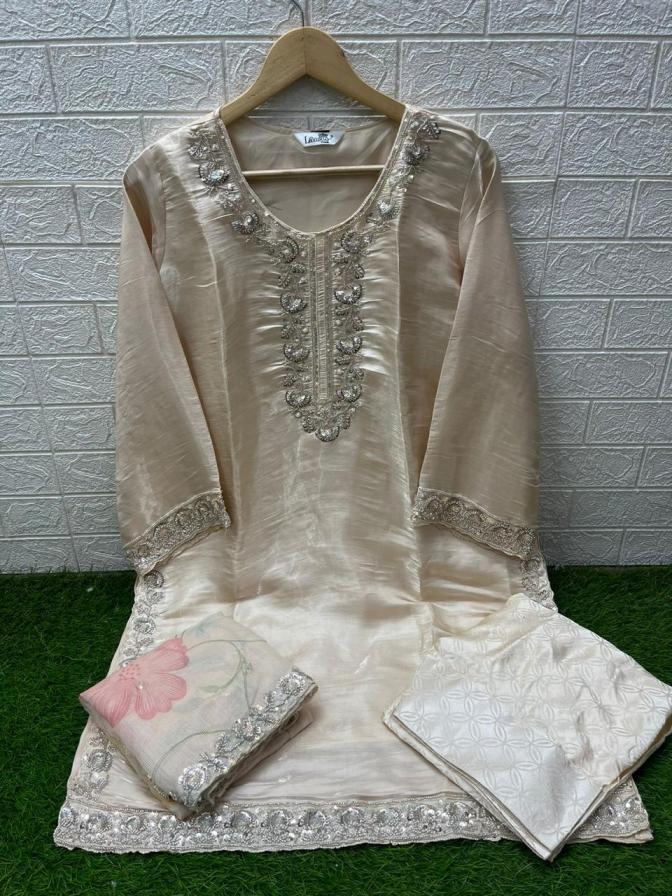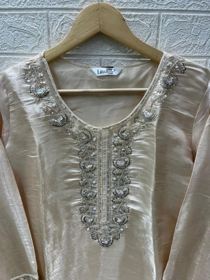 Designer stylish Beads Tunic .. Kurti & Sleeves HandWork Pair with Glamours Beads On Denting Dupatta With Digital Print * ...*With Farshi Salwar
