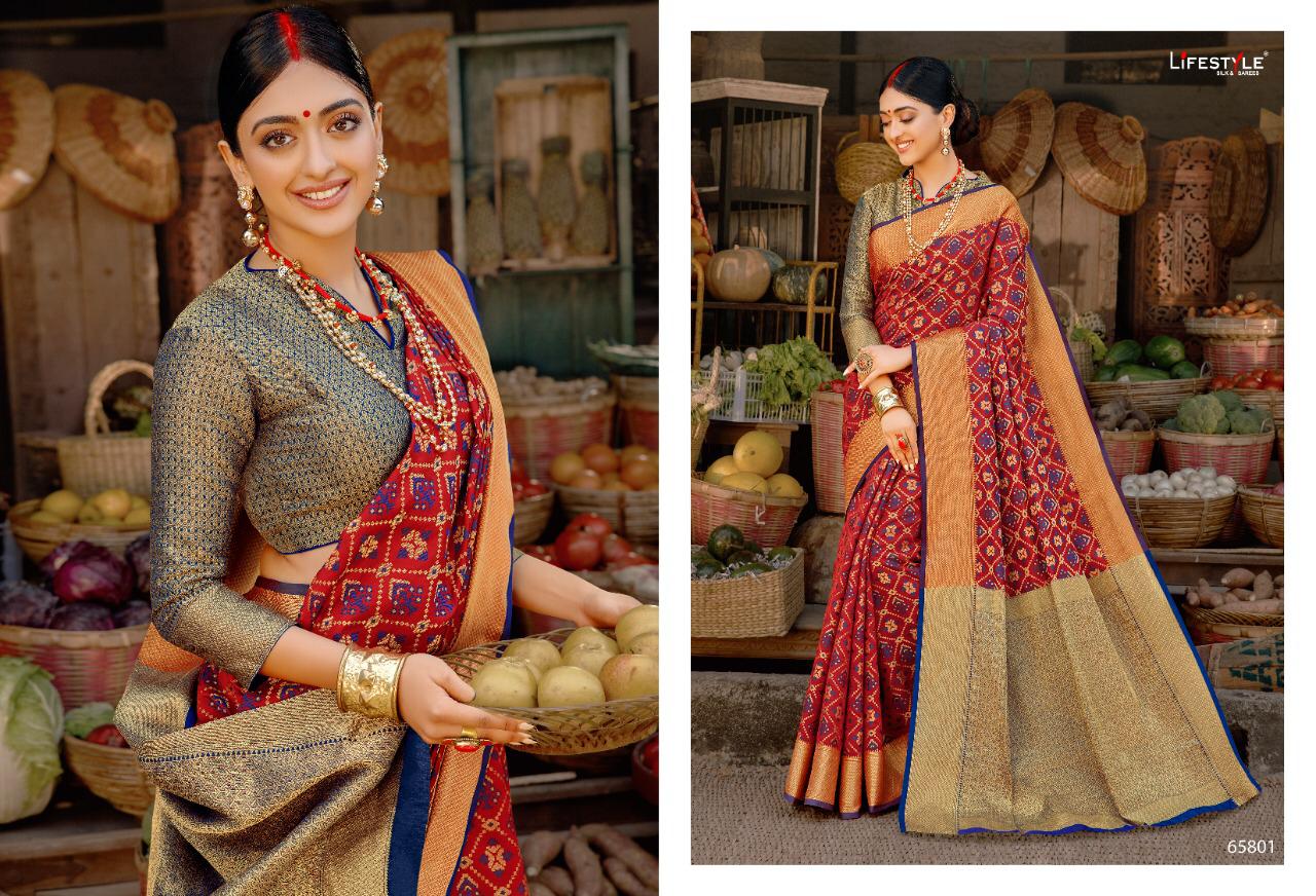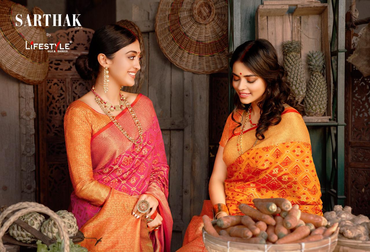 Other Details: | BRAND = LIFE STYLE MERCHANT NAME = SARTHAK 3 Per Pcs Rate = 1026 per pcs . Set to set . GST 5 Percent Extra FABRICS = PATOLA RICH PALLU 1 SET = 6 PCS PACKING = Today |