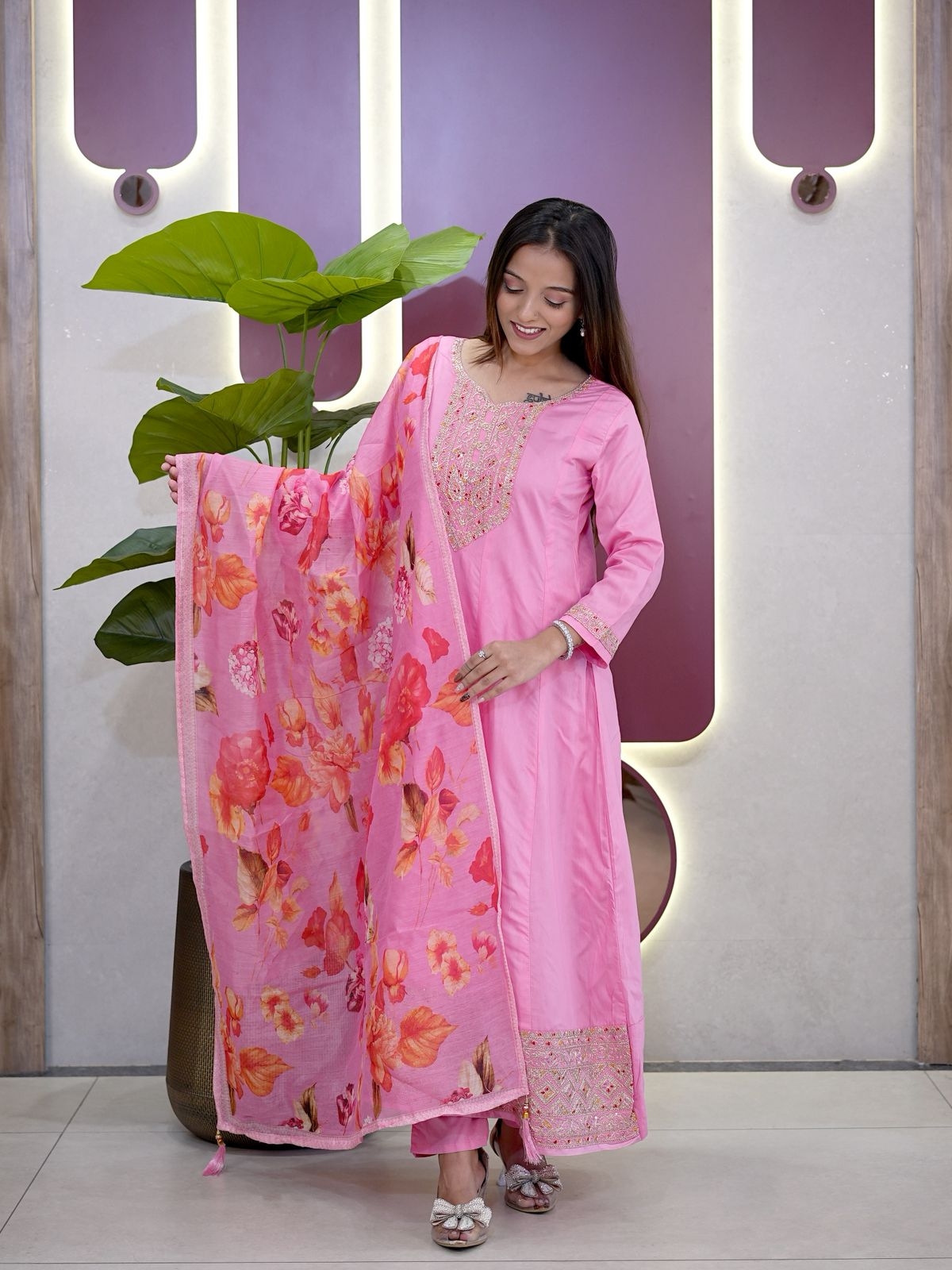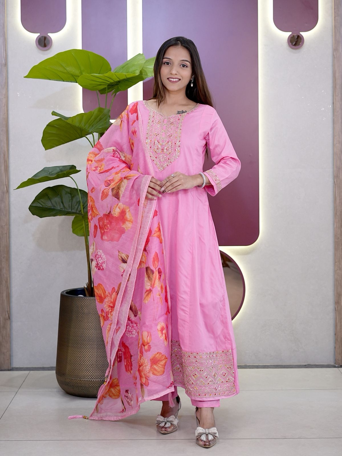 | Name: | Lightweight Roman Silk Fabric Embroidery Elevates Traditional Suit In Wholesale Surat |