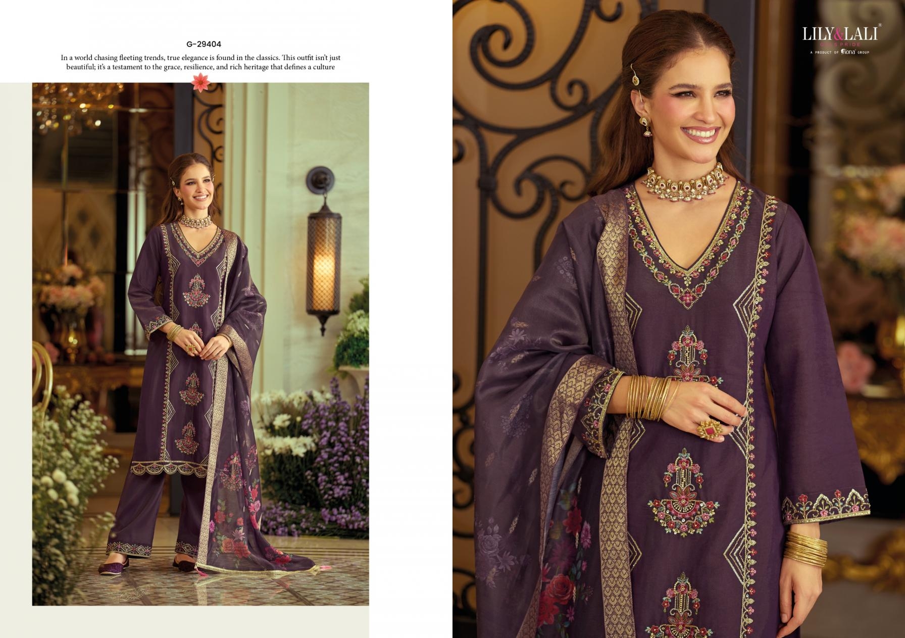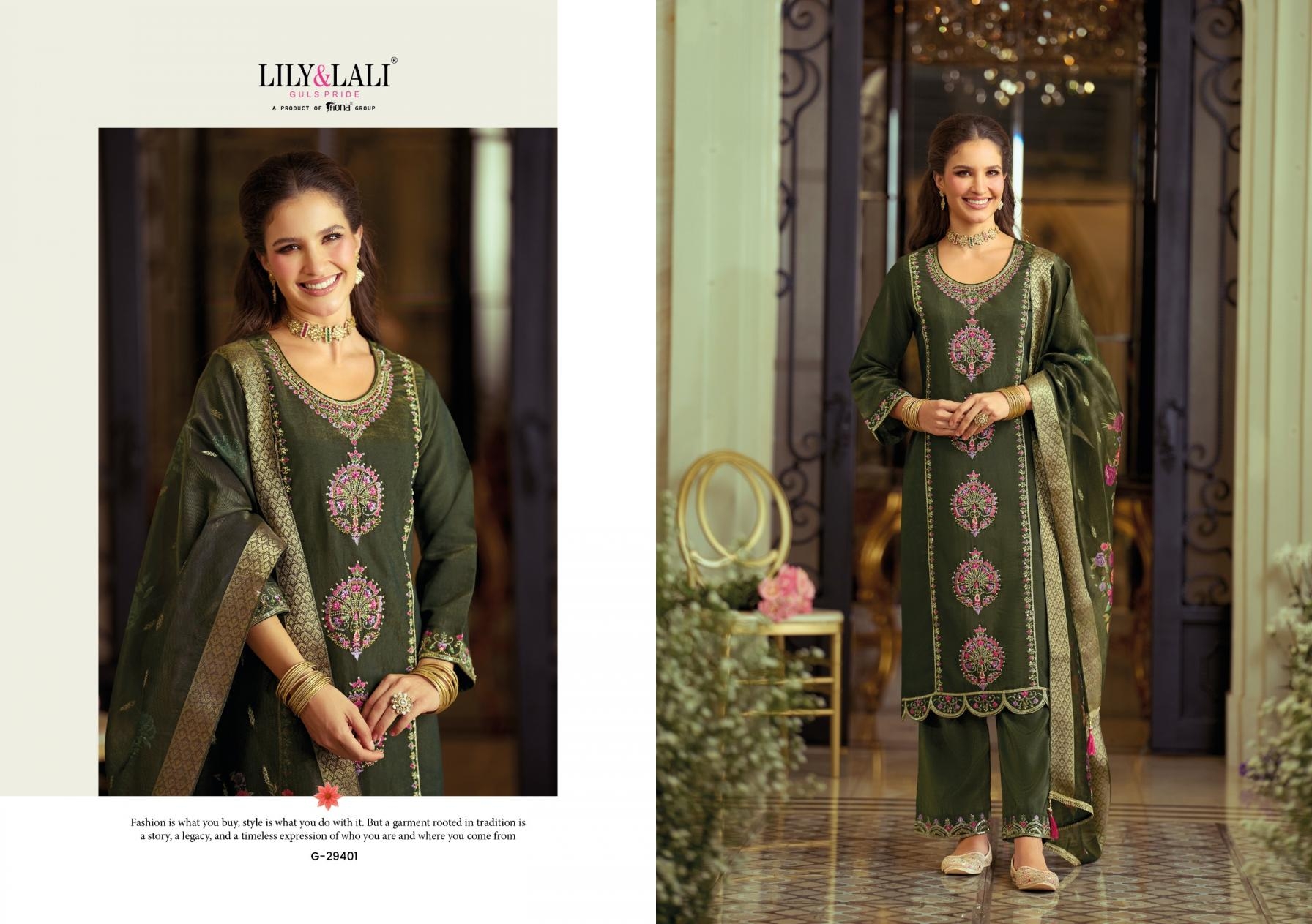 | Name: | Lily & Lali Gulabo Series 29401-29404 Shimmer Viscose Silk Wholesale Suit |