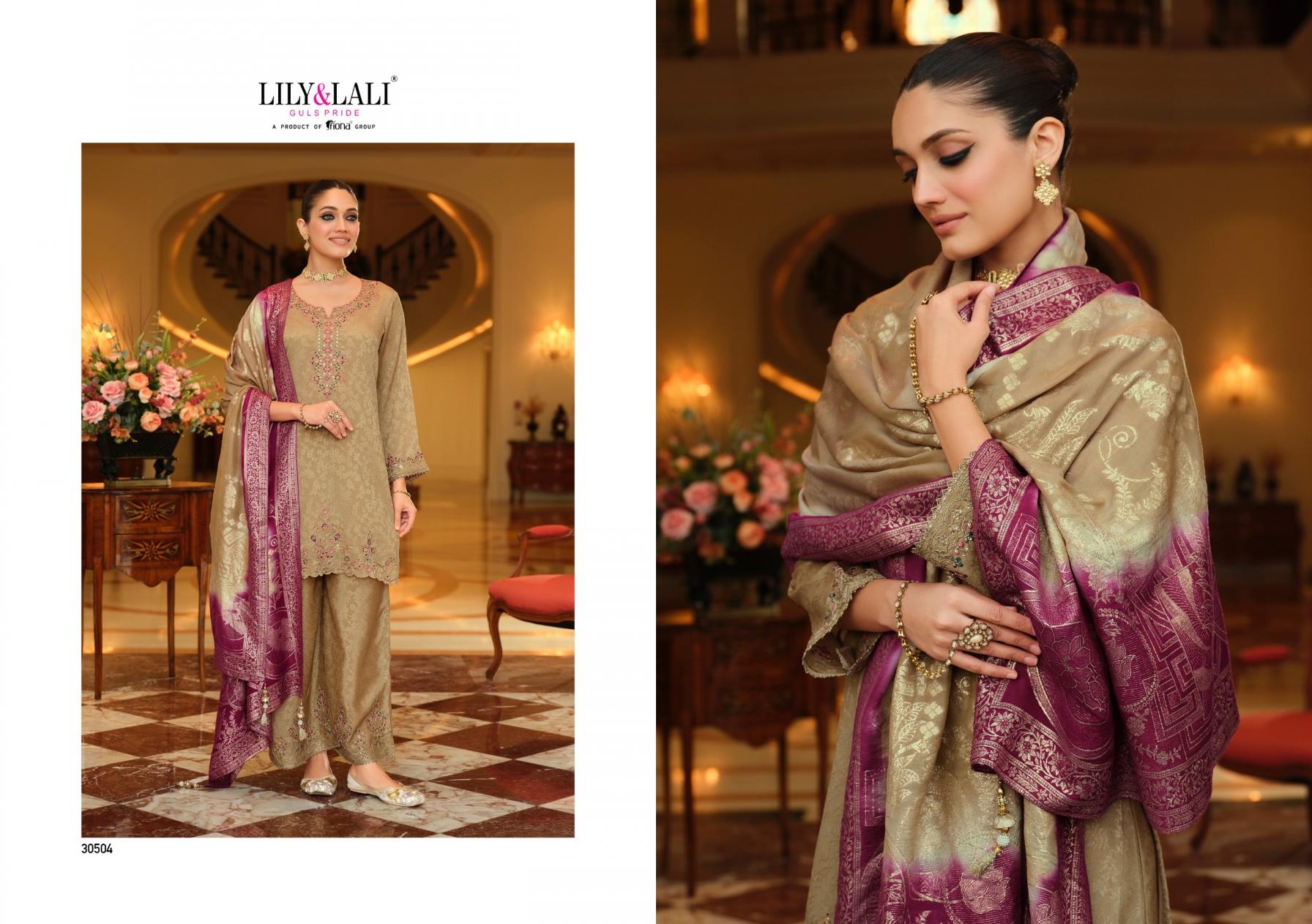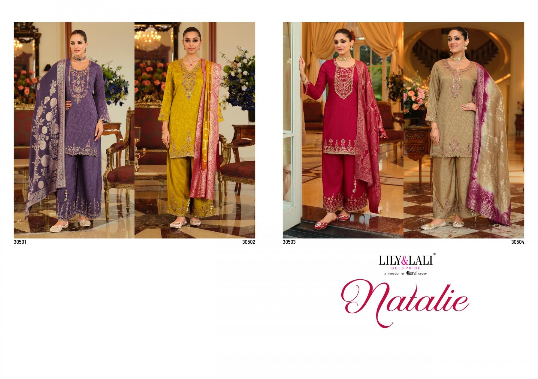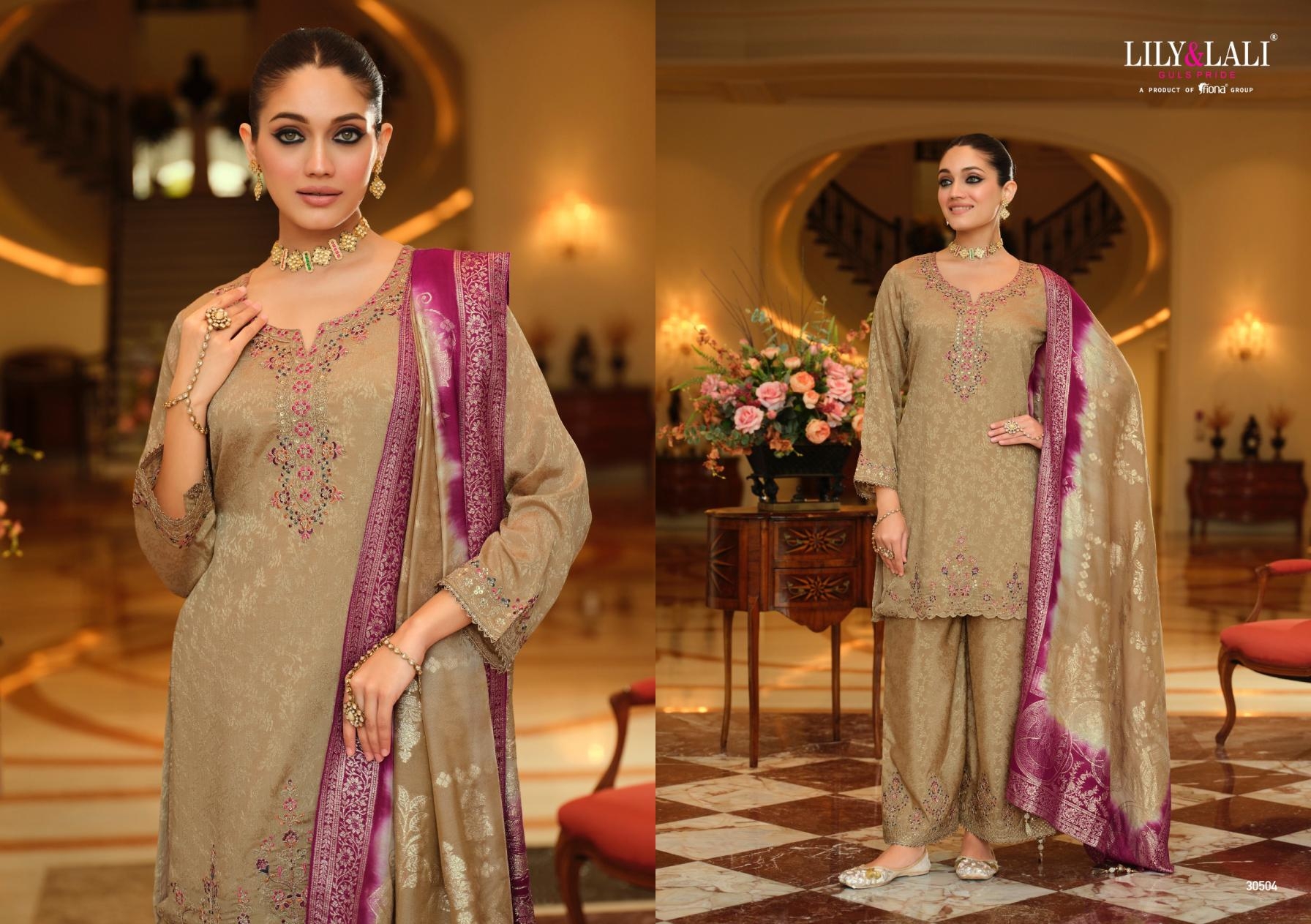 | Name: | Lily & Lali Natalie Series 30501-30504 Jacquard Chinon Silk Readymade Wholesale Suit |