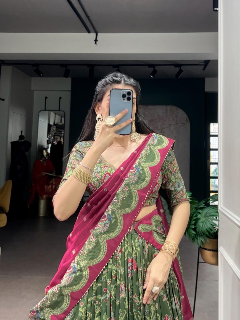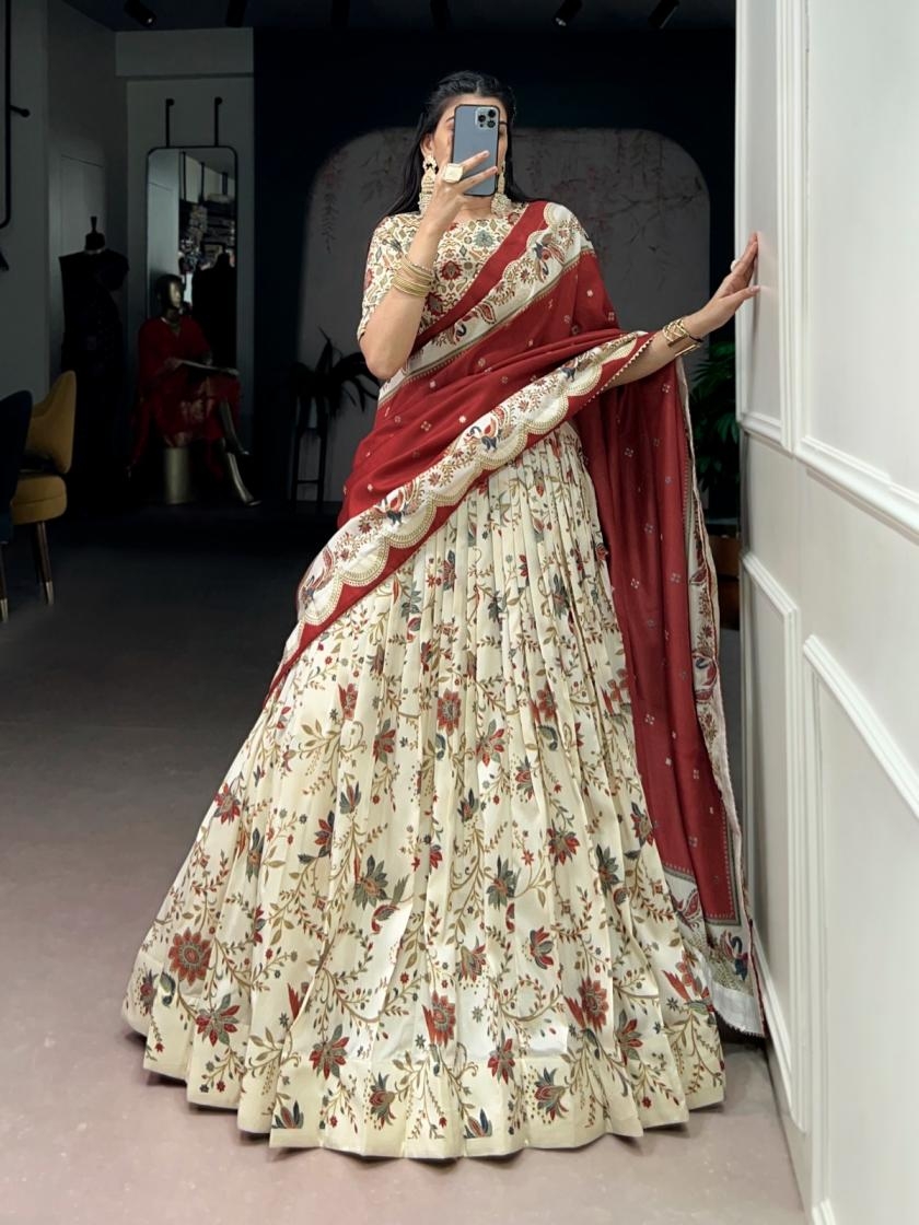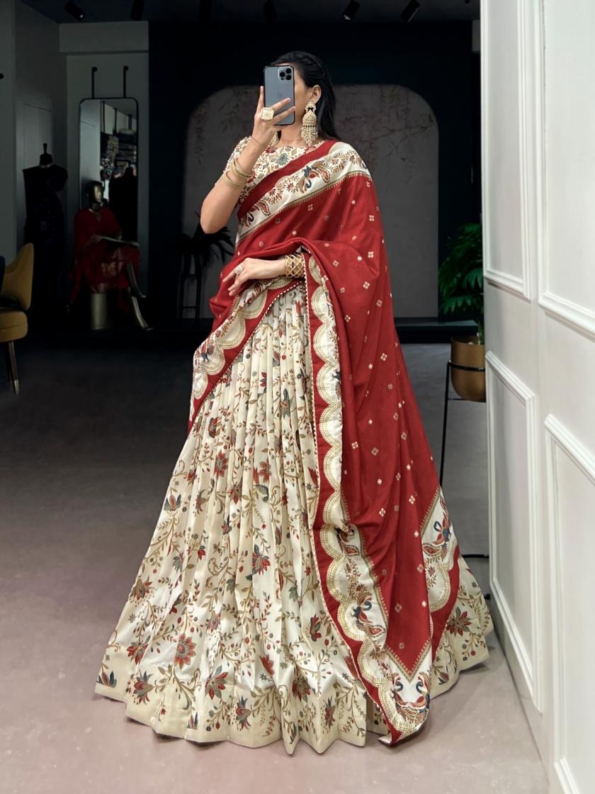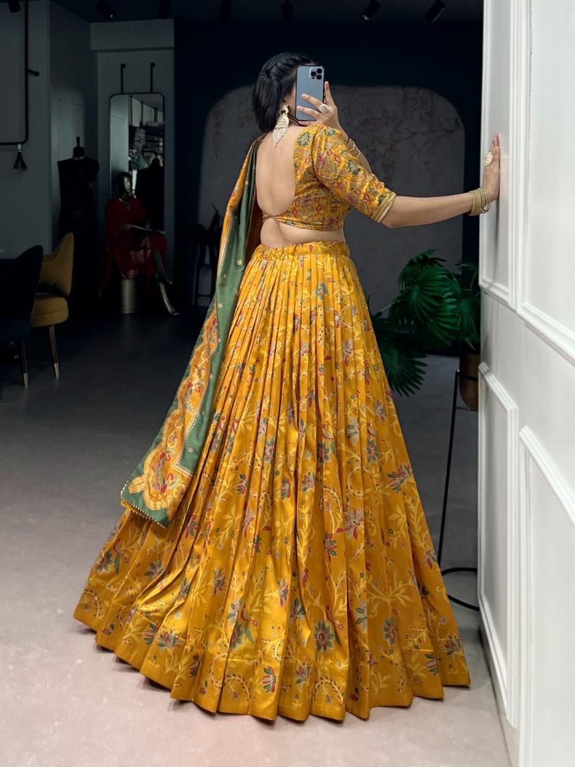 Soft tasar silk drape with radiant foil motifs… a lehenga that shines with understated luxury ✨
