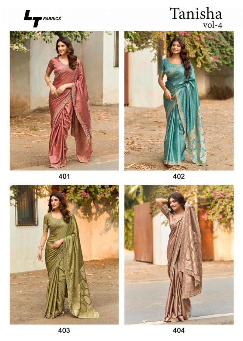 | Name: | Lt Fashion Tanisha Vol 4 Series 401 To 404 Traditional Weaving Satin Sarees In Wholesale Surat |