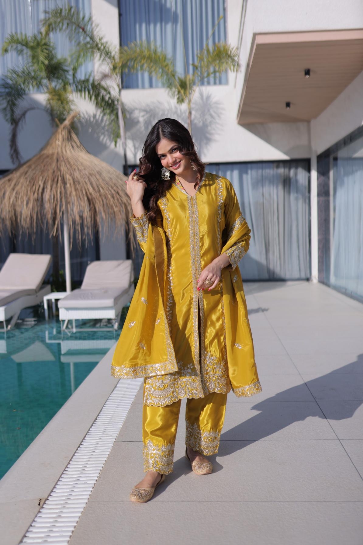 | Other Details: | 👗 PREMIUM DESIGNER READYMADE TOP-BOTTOM-DUPATTA COLLECTIONS 2026 💃🏼 Code:- LW-9322 💕💃🏻 Get ready to shine with these stunning outfit Made from H O FABRICS With Sequins & Zari Embroidered Work. Discover the perfect ensemble to add a touch of glamour to your wardrobe and stand out from the crowd 💕💃🏻. # TopPANTDupatta 💕💃🏻 KURTI :- 👇🏻 PANT :-👇🏻 DUPATTA :-👇🏻 COLOUR :- 1 (Yellow) WEIGHT :- 0.950 KG RATE :- 1600/-INR |