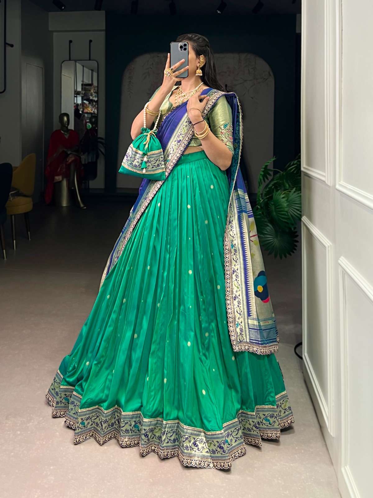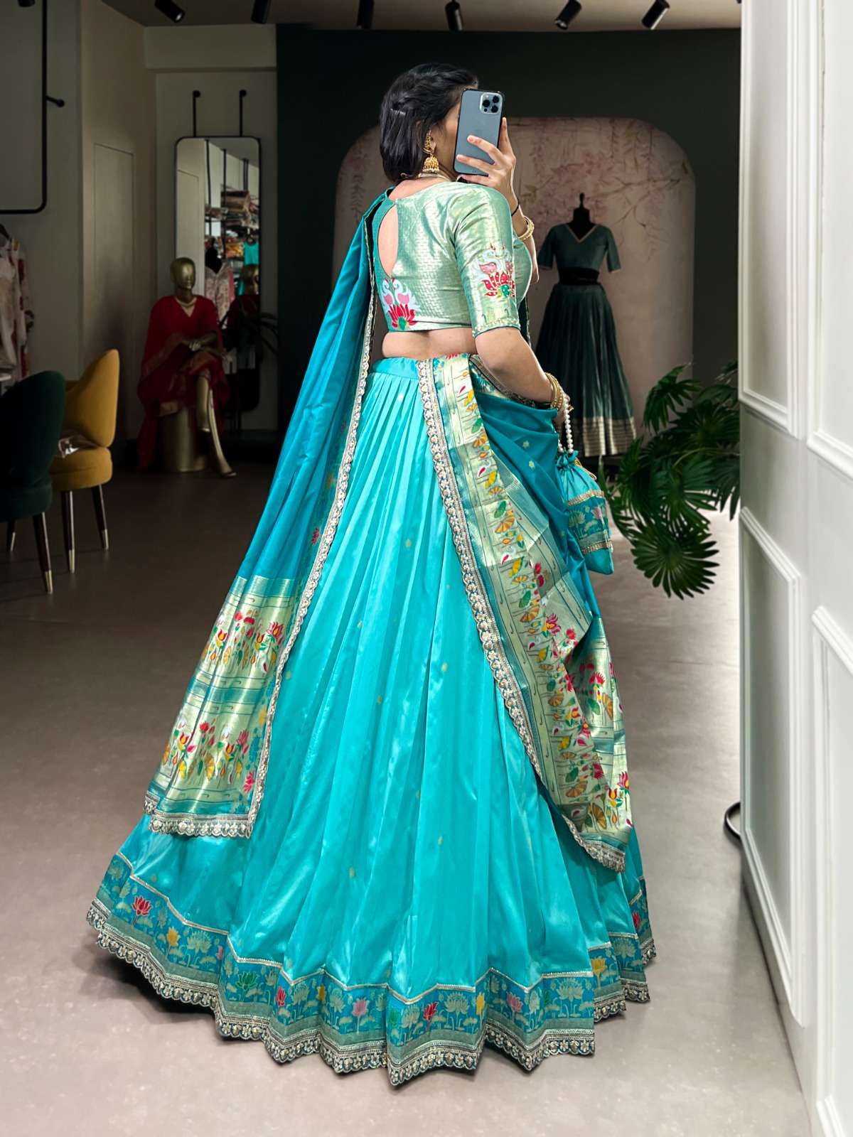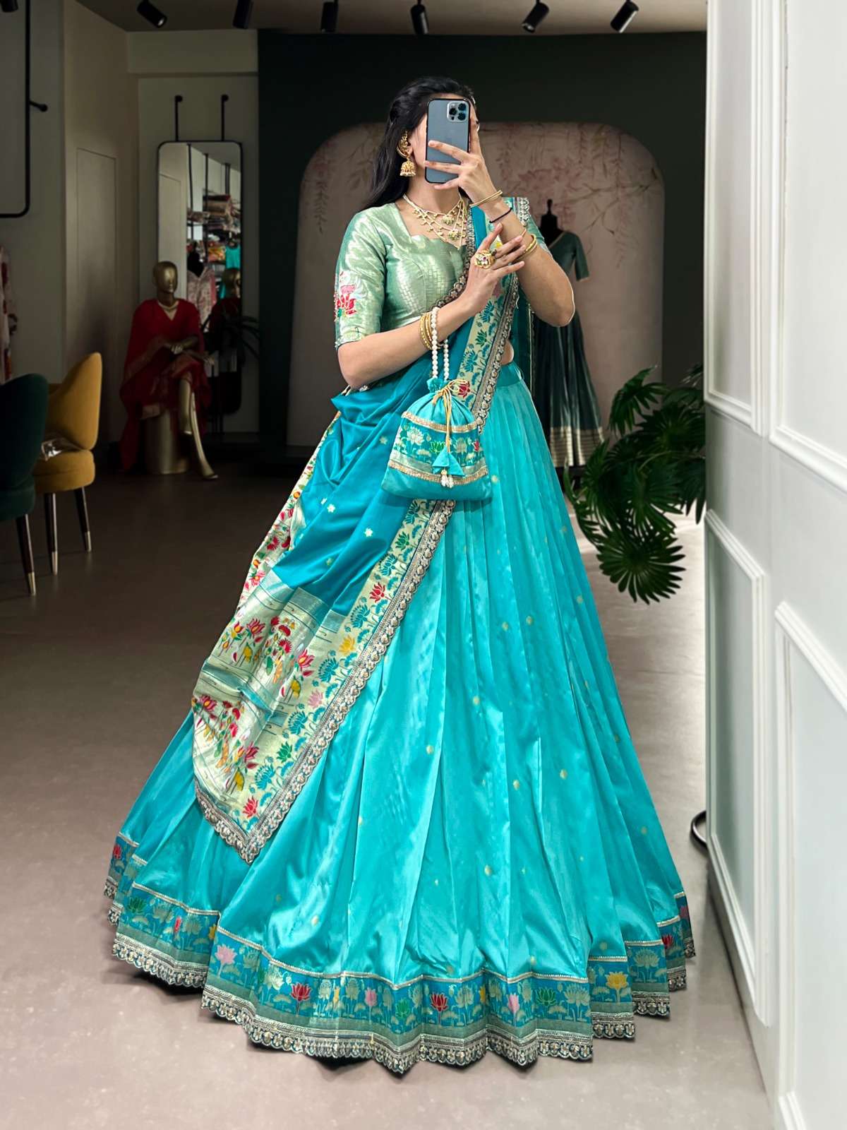 | Name: | Madhura Soft Silk Paithani Zari Weaving Work With Sequins And Thread Embroidery Lehenga |