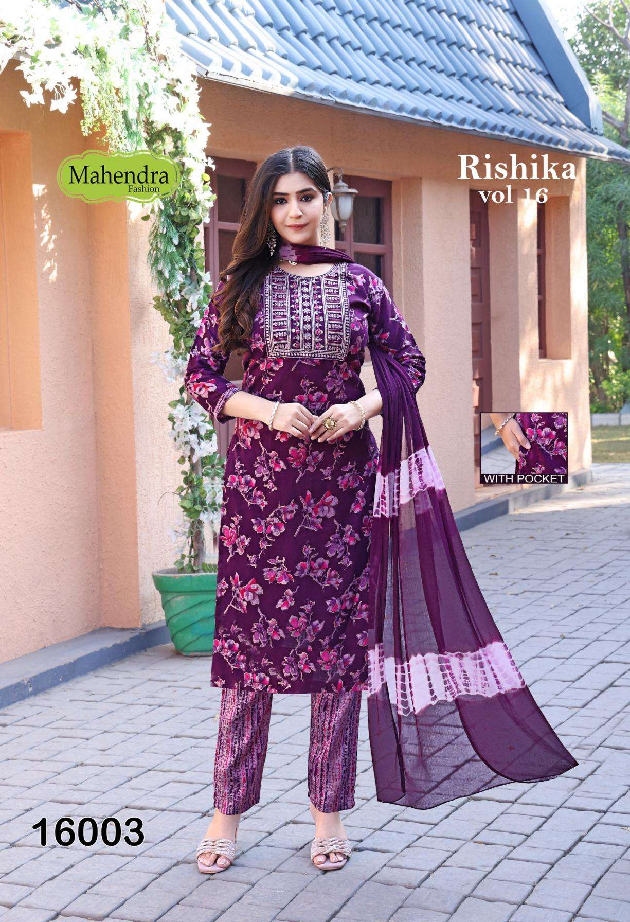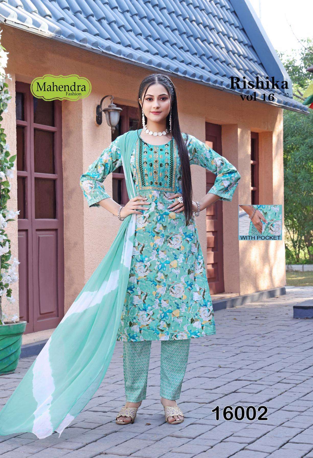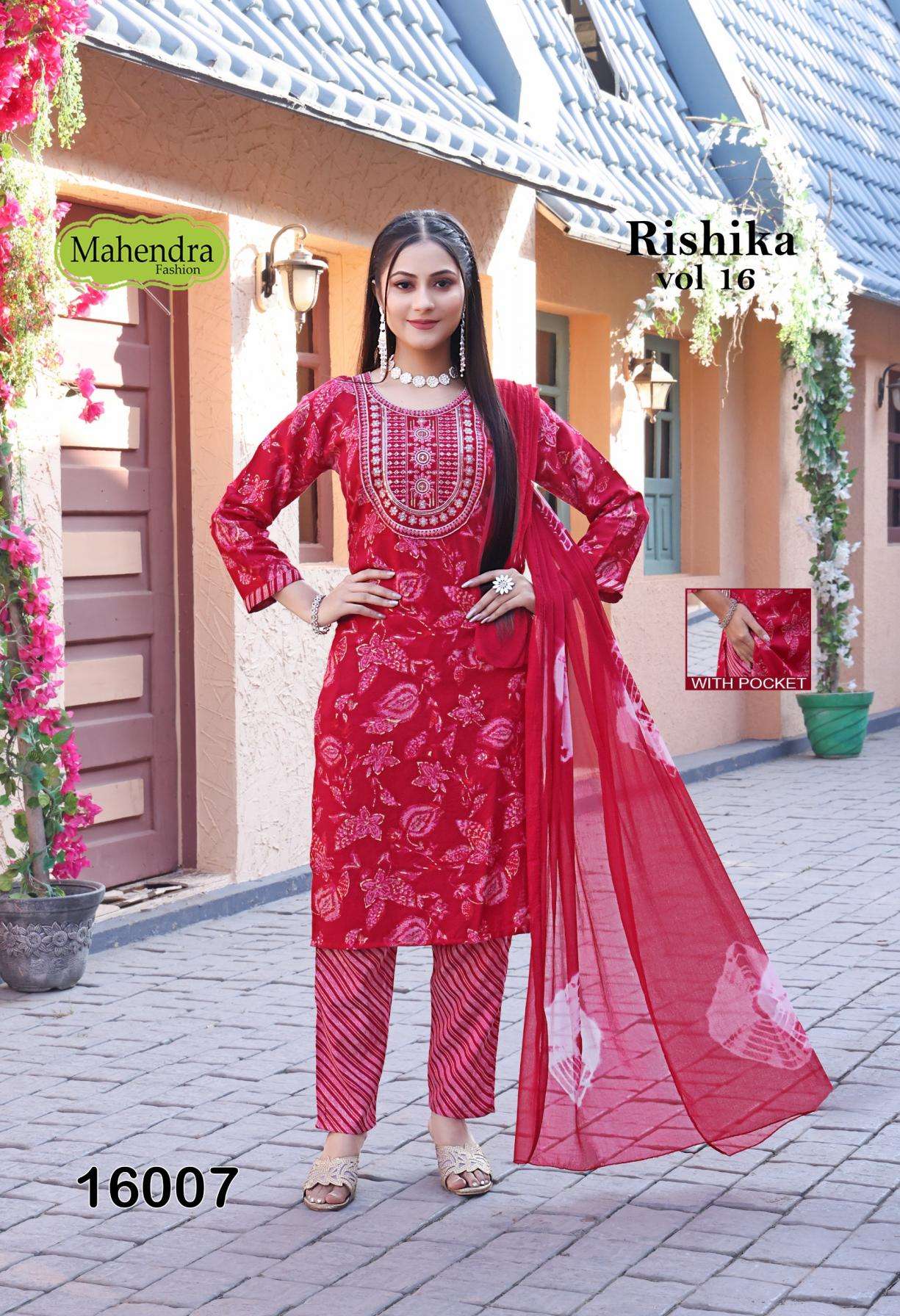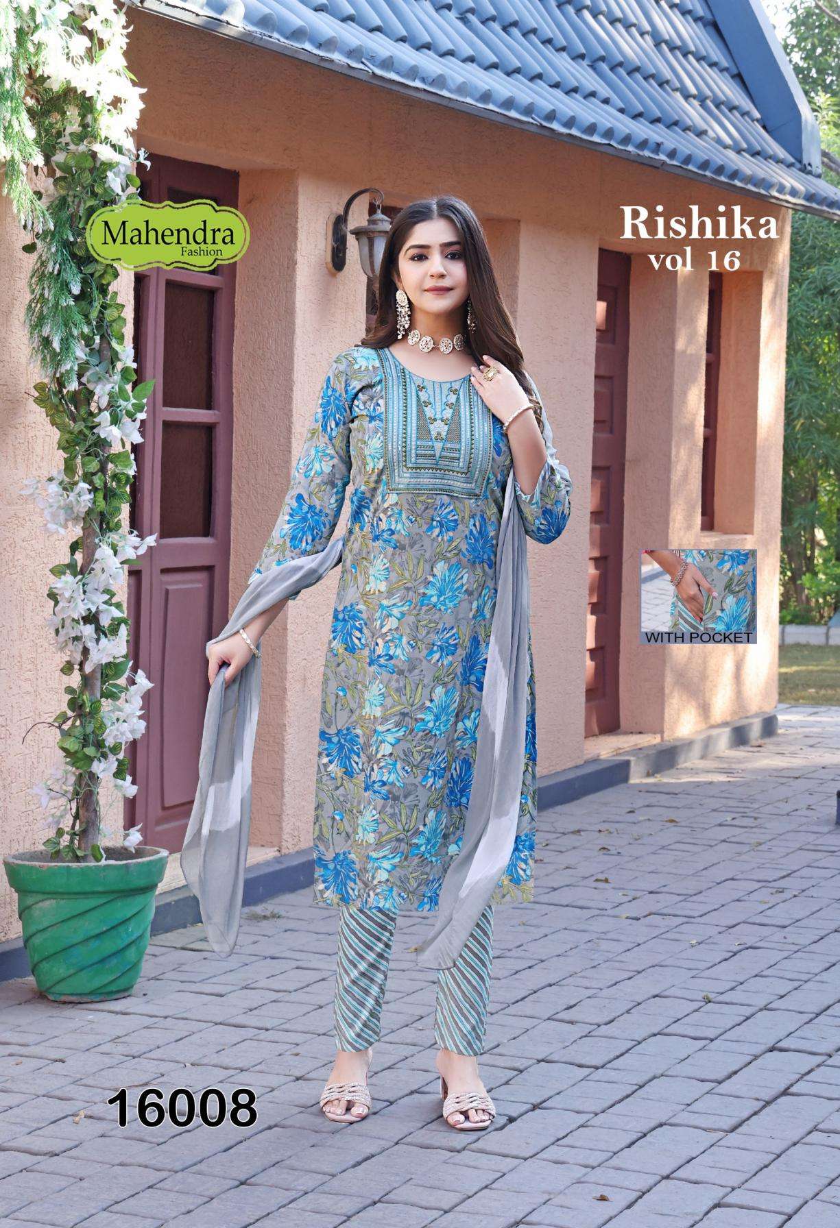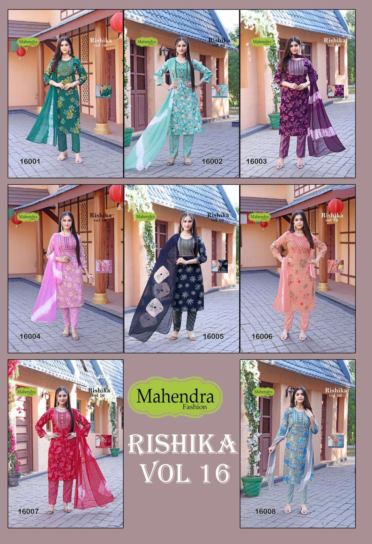 | Name: | Mahendra Fashion Rishika Vol 16 Series 16001-16008 Capsule Print Wholesale Suit | |