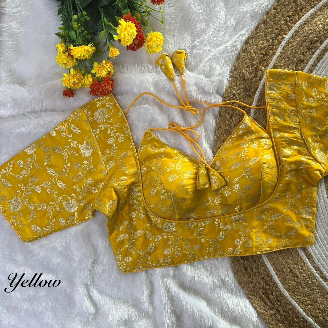 | Other Details: | ➡️ EXCLUSIVE PARTYWEAR MASABA PATTERN WEAVING JARI JEQUARD FANCY BLOUSE ➡️Design- MASABA TISSUE-2 ➡️Fabric- Pure Simmer Tissue Jequard ➡️Inner- Cotton ➡️Work- Exclusive Weaving Jari Jequard Work ➡️Pattern- MASABA PAN NEACK ➡️Quality- A1 ➡️Padded- Yes ➡️Size- Free Size 38 Ready ➡️Length- 14-15 Inch ➡️Open Type- Back Hook ➡️Sleev- Elbow Sleeves Atteched ➡️Colour:- (10 Colours Available) 🖤💛🧡❤️🩷️💙💜🤍🤎 ➡️Price- 420/- ➡️SHIPPING EXTRA ➡️ BOOK FAST READY STOCK |