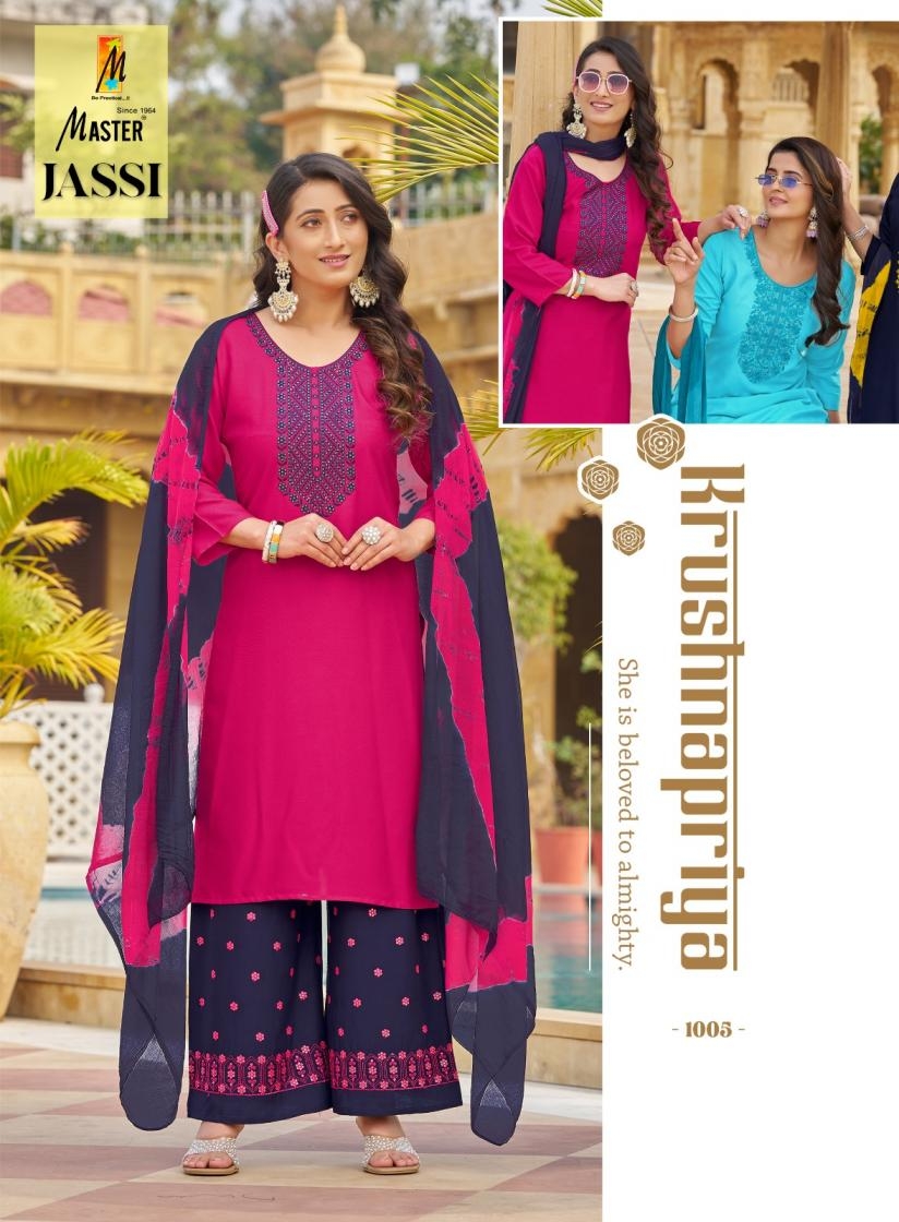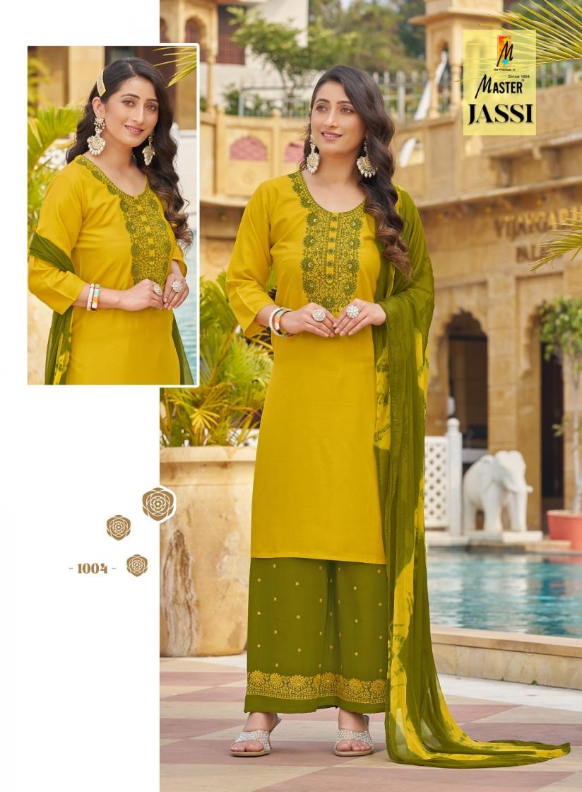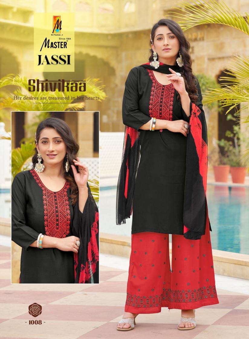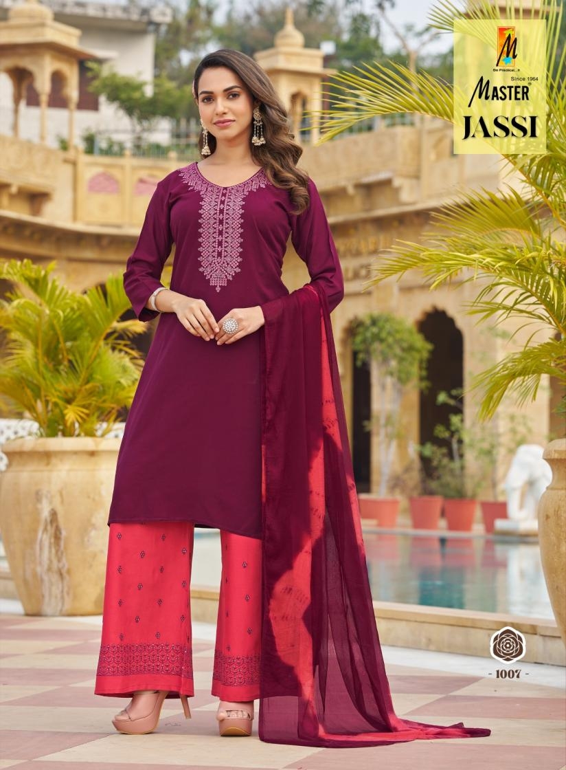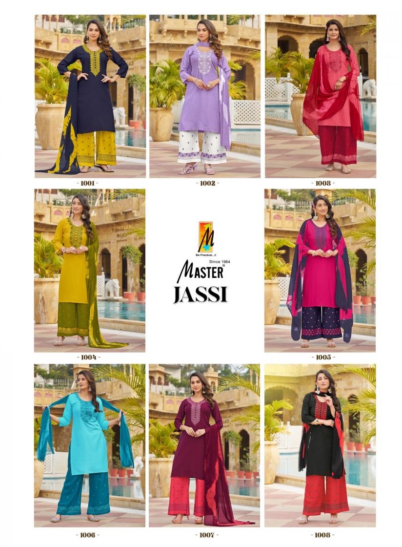 | Name: | Master Jassi Series 1001-1008 Rayon Sequence Work Readymade Suit In Surat |