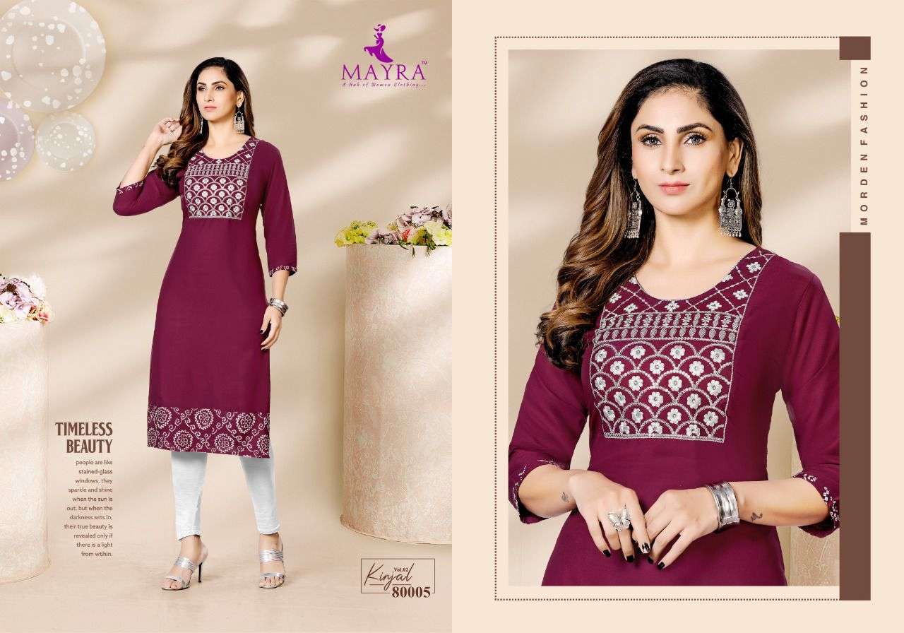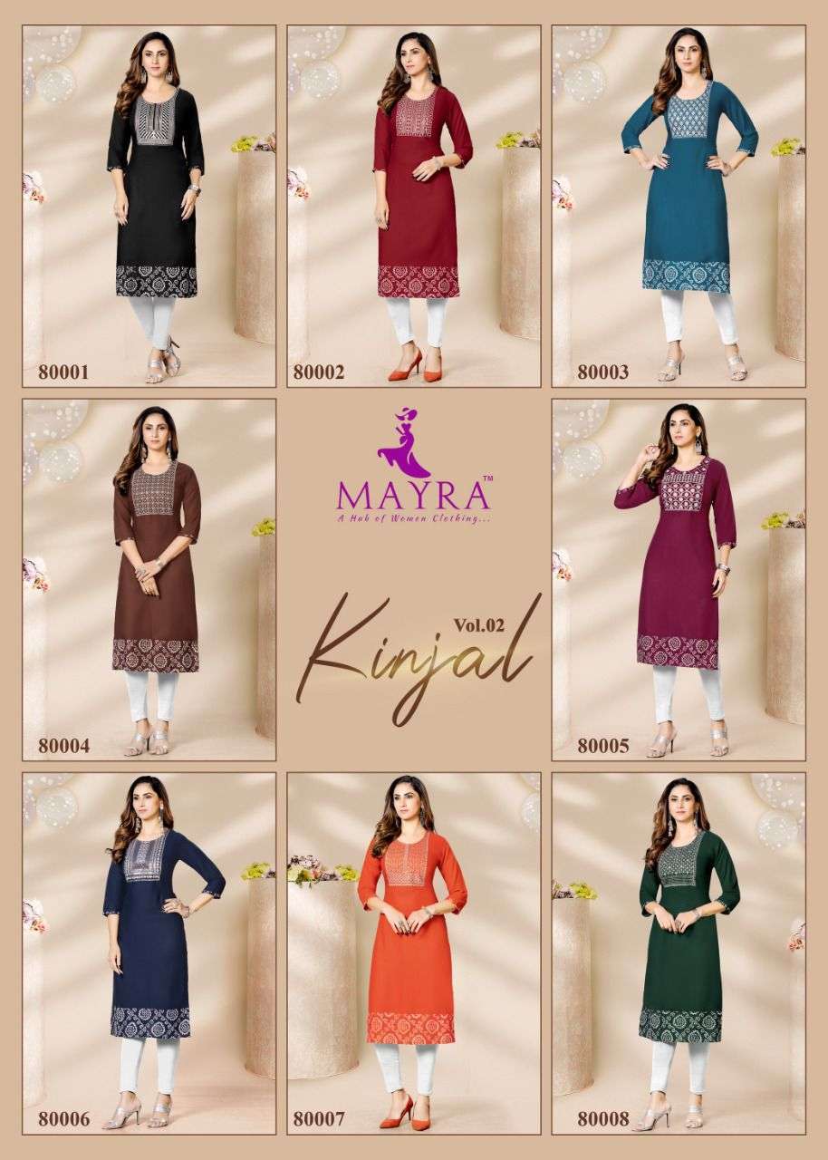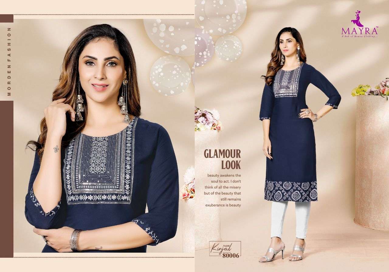Name: | Mayra Kinjal Vol 2 Series 80001-80008 14 Kg Rayon Kurti |