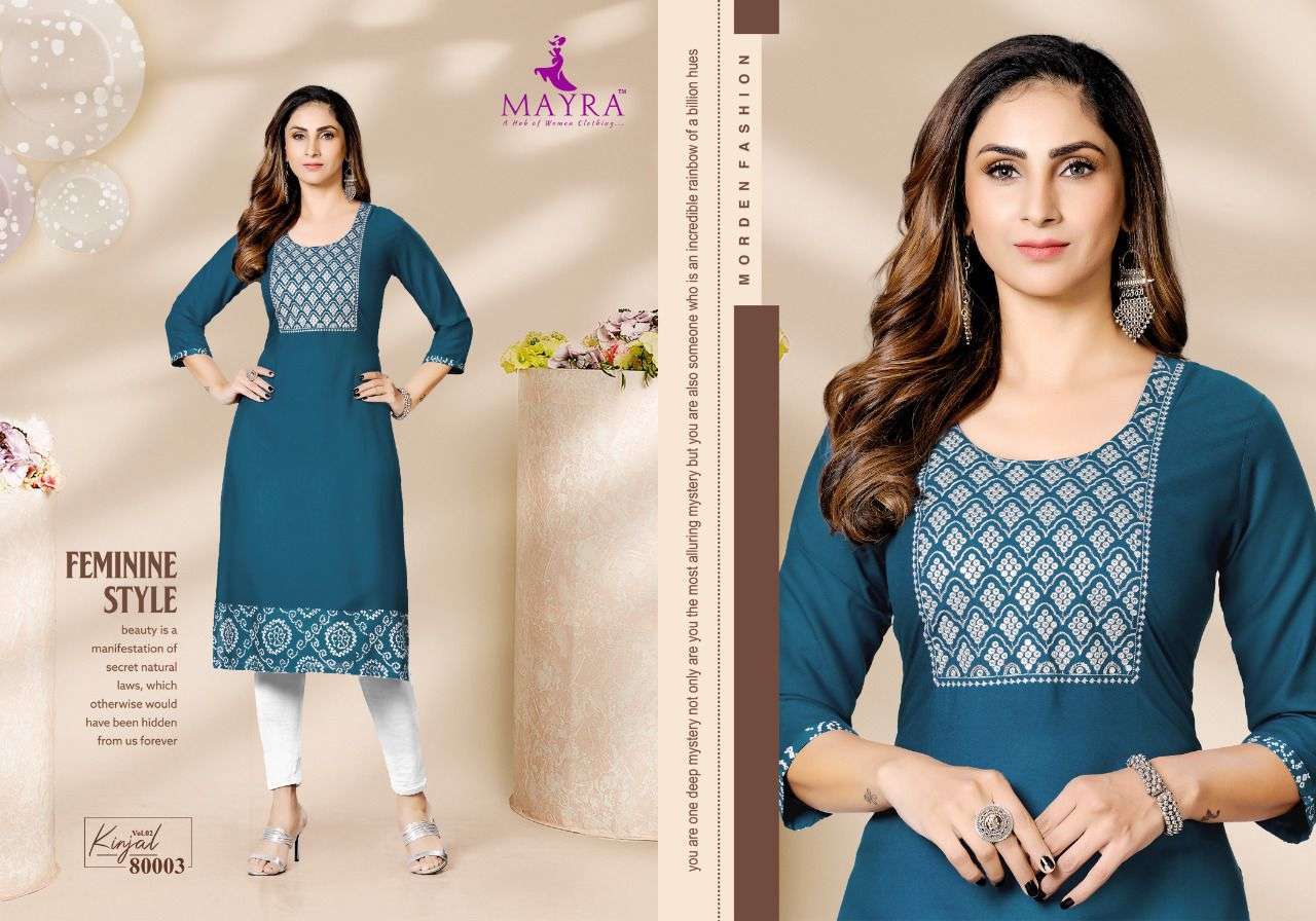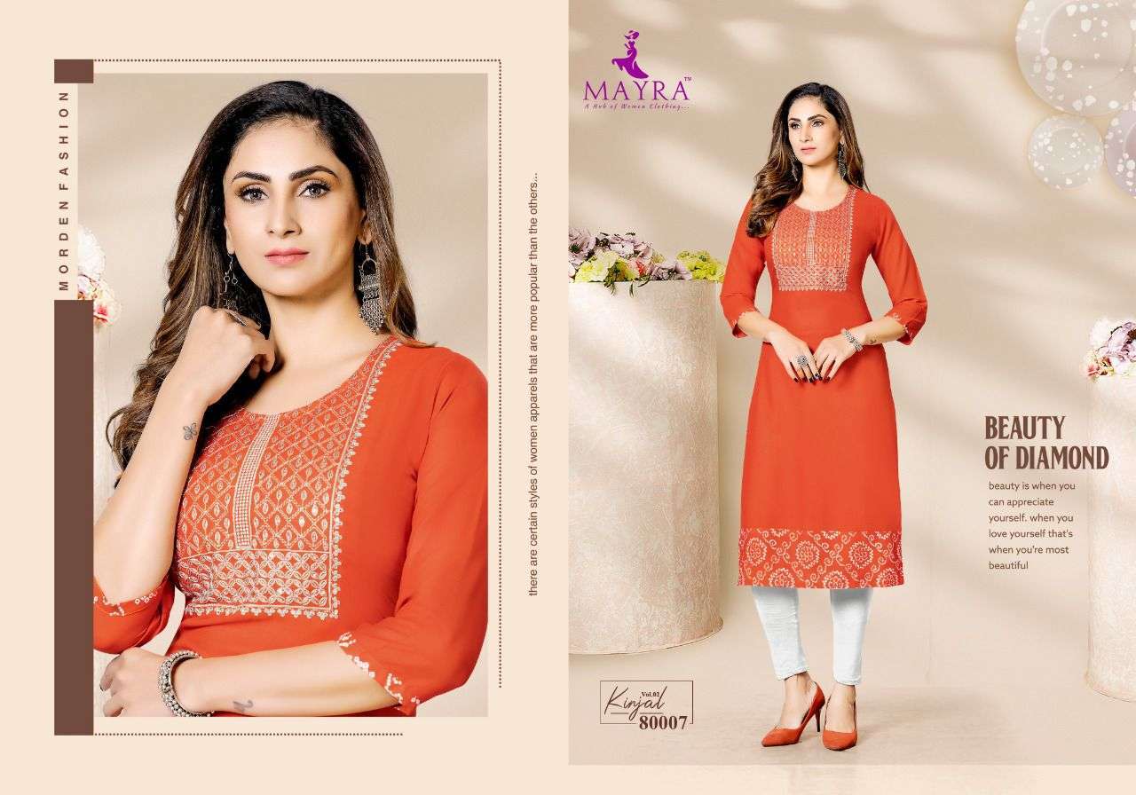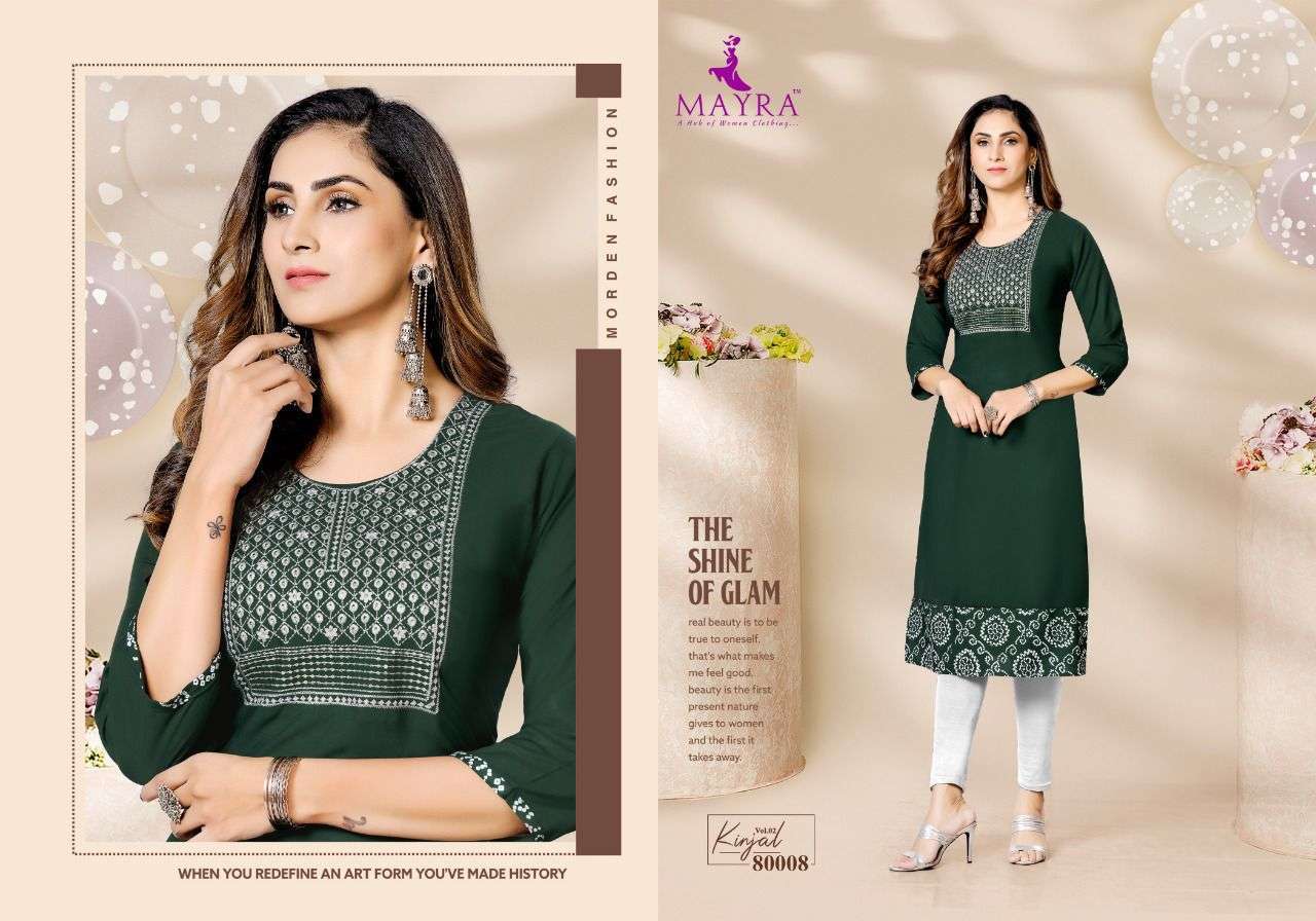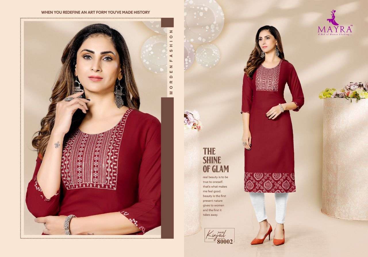 Name: | Mayra Kinjal Vol 2 Series 80001-80008 14 Kg Rayon Kurti |