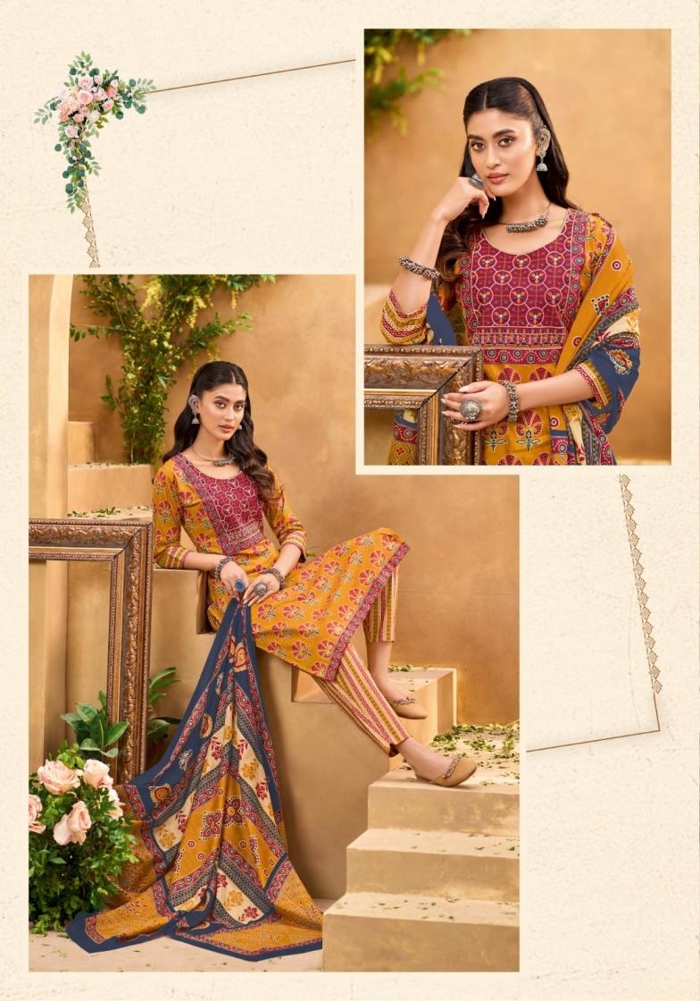 | Other Details: | 🪷 MAYUR CREATION🪷 Look stylish & comfortable in this summer season 🤩 Catalog :- 🌞 AJARAKH vol 10 🌞 👗TOP :- Fully stich Pure Cotton print with neck embroidery petch work Bottom :- Pure cotton pant with fancy Style