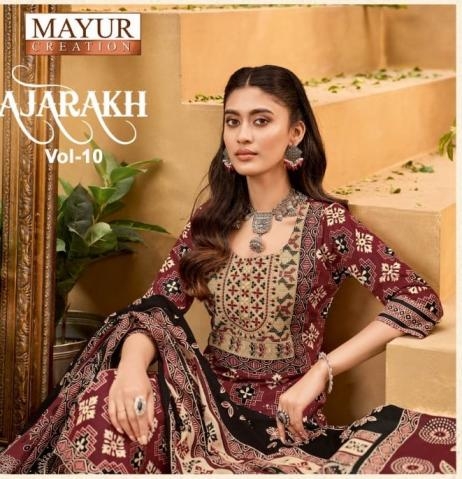 | Name: | Mayur Ajarakh Vol 10 Series 10001-10010 Cotton Wholesale Suit |