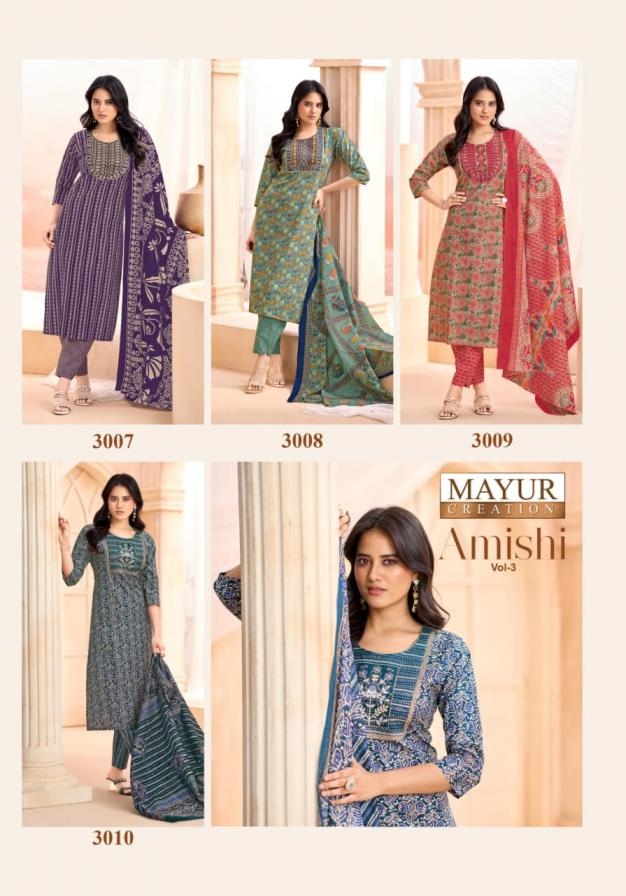 | Name: | Mayur Creation Amishi Vol 3 Series 3001-3010 Cotton Wholesale Suit In Surat | |