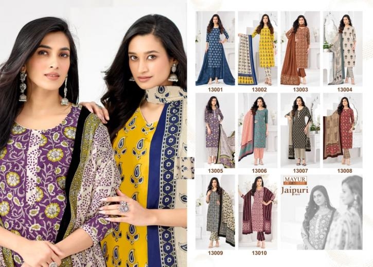 | Name: | Mayur Creation Jaipuri Vol 13 Series 13001-13010 Fancy Printed Suit |