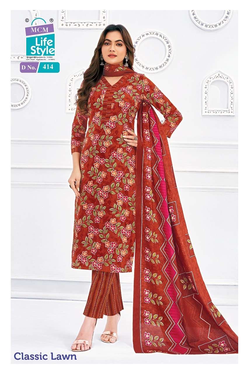 | Name: | Mcm Classic Lawn Vol 4 Series 405-414 Heavy Cotton Wholesale Suit |