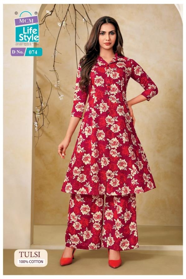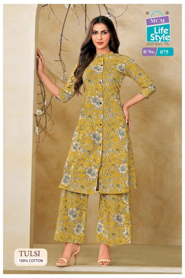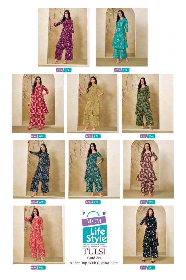 | Name: | Mcm Lifestyle Tulsi Series 072 To 081 Aline Princess Cut Kurti And Pant Set In Wholesale Surat |