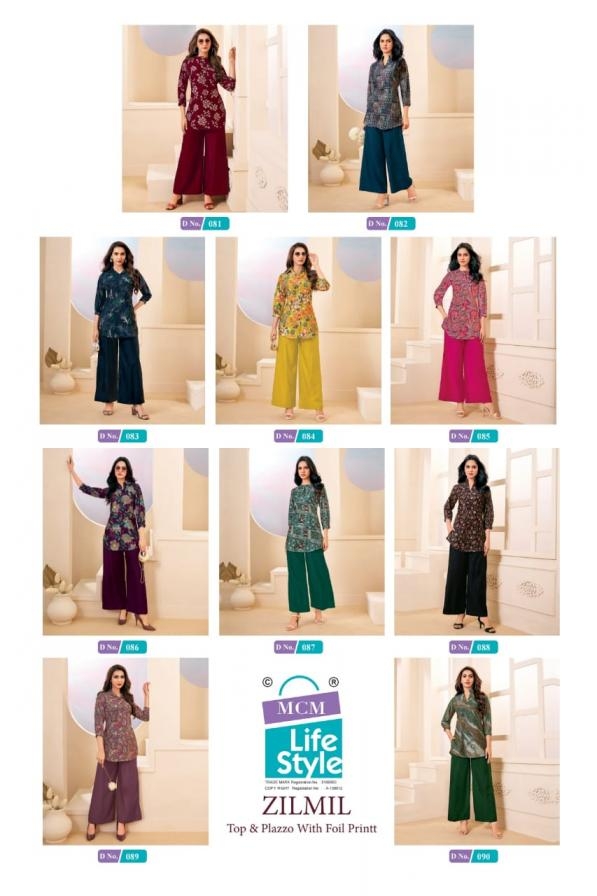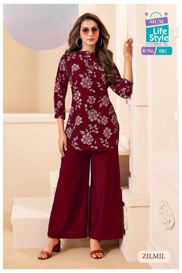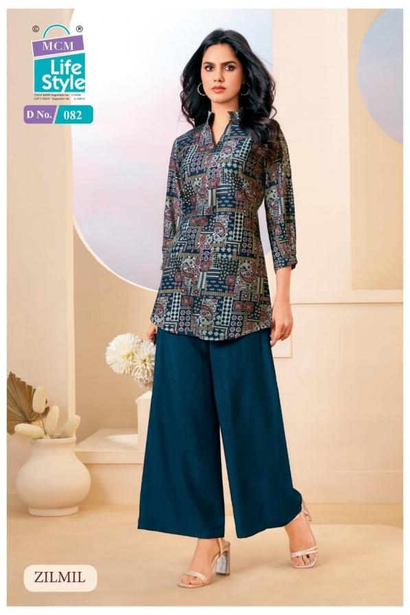 | Name: | Mcm Lifestyle Zilmil Series 081 To 090 Vertican Readymade Unique Kurti With Plazzo In Wholesale Surat |
