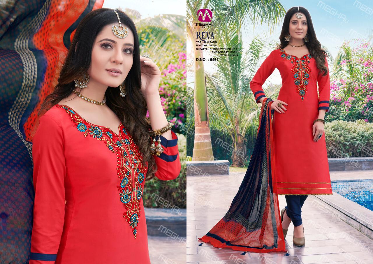 | Name: | Meghali Suits Reva Jam Satin Embroidery Dress Materials Wholesaler |