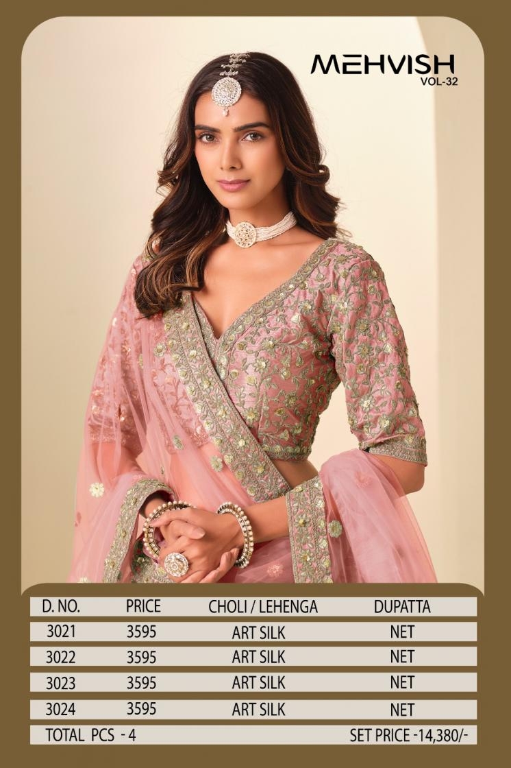 | Name: | Mehvish Vol 32 Series 3021-3024 Art Silk Wholesale Lehenga |