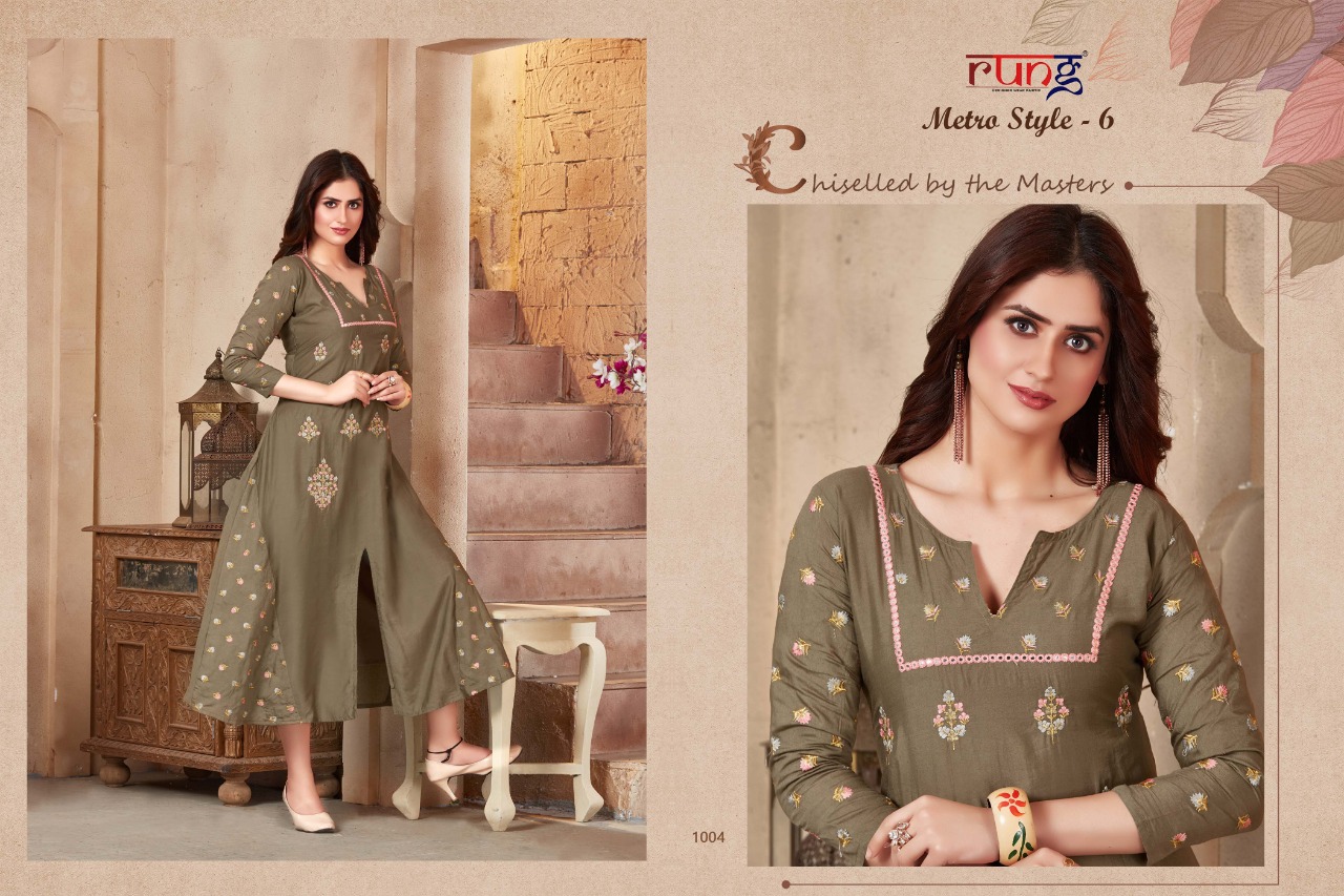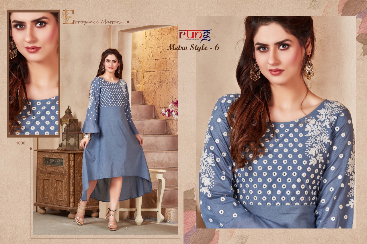 | Name: | Metro Style Vol 6 By Rung Designer Party Wear Fancy Kurti Collection |