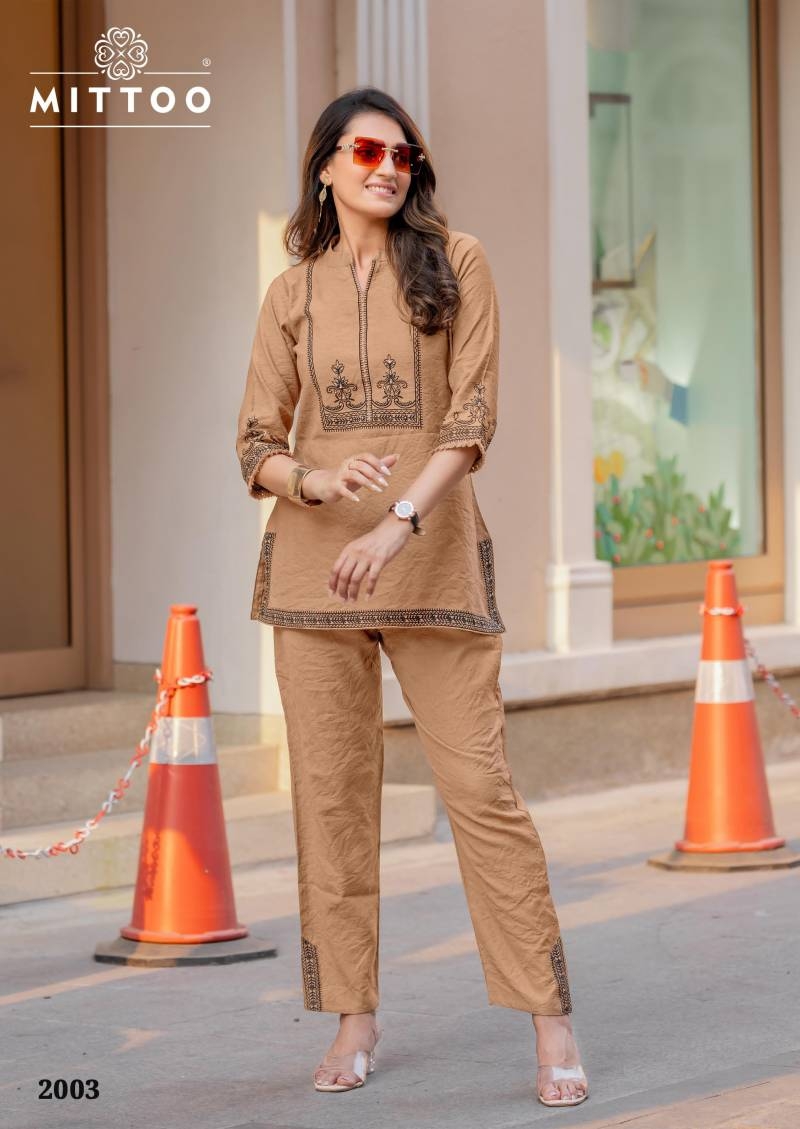 | Name: | Mittoo Korra Series 2001 To 2006 Viscose Fully Stitch Unique Co-ord Sets In Wholesale Surat |