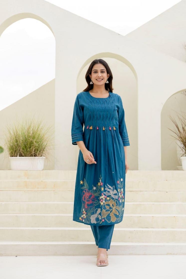 | Name: | Modern Cotton Beautyful Embroidery Work Readymade Combo Set 3pcs Dress |