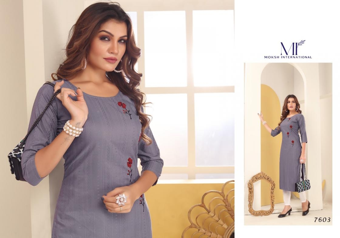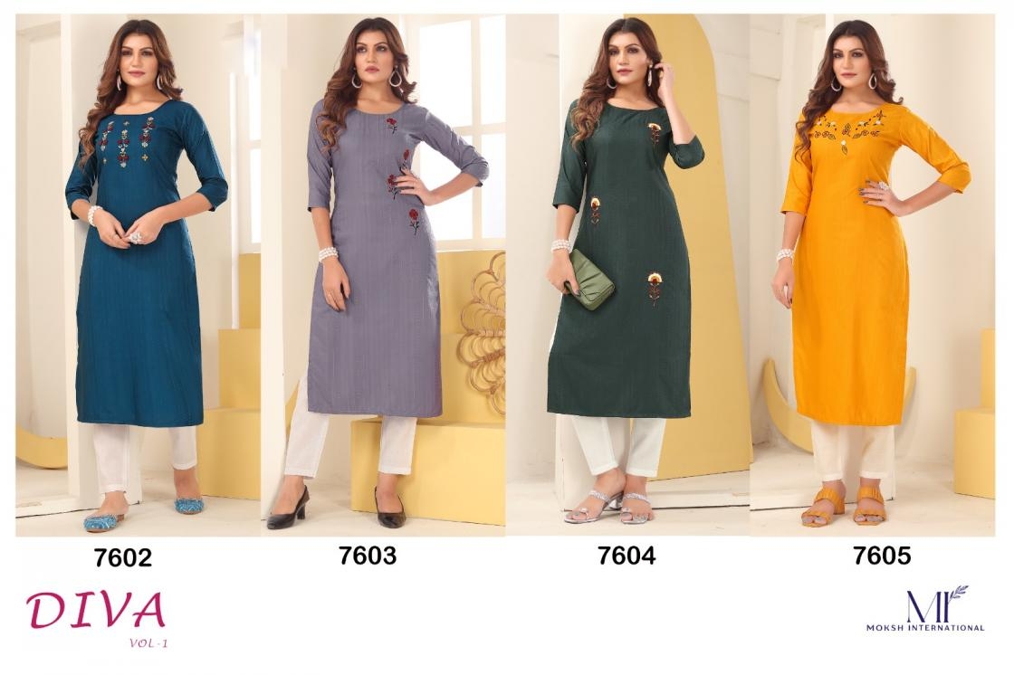 | Name: | Moksh Diva Vol-1 Series 7602-7605 Vision Silk With Handmade Embroidery Kurti | |