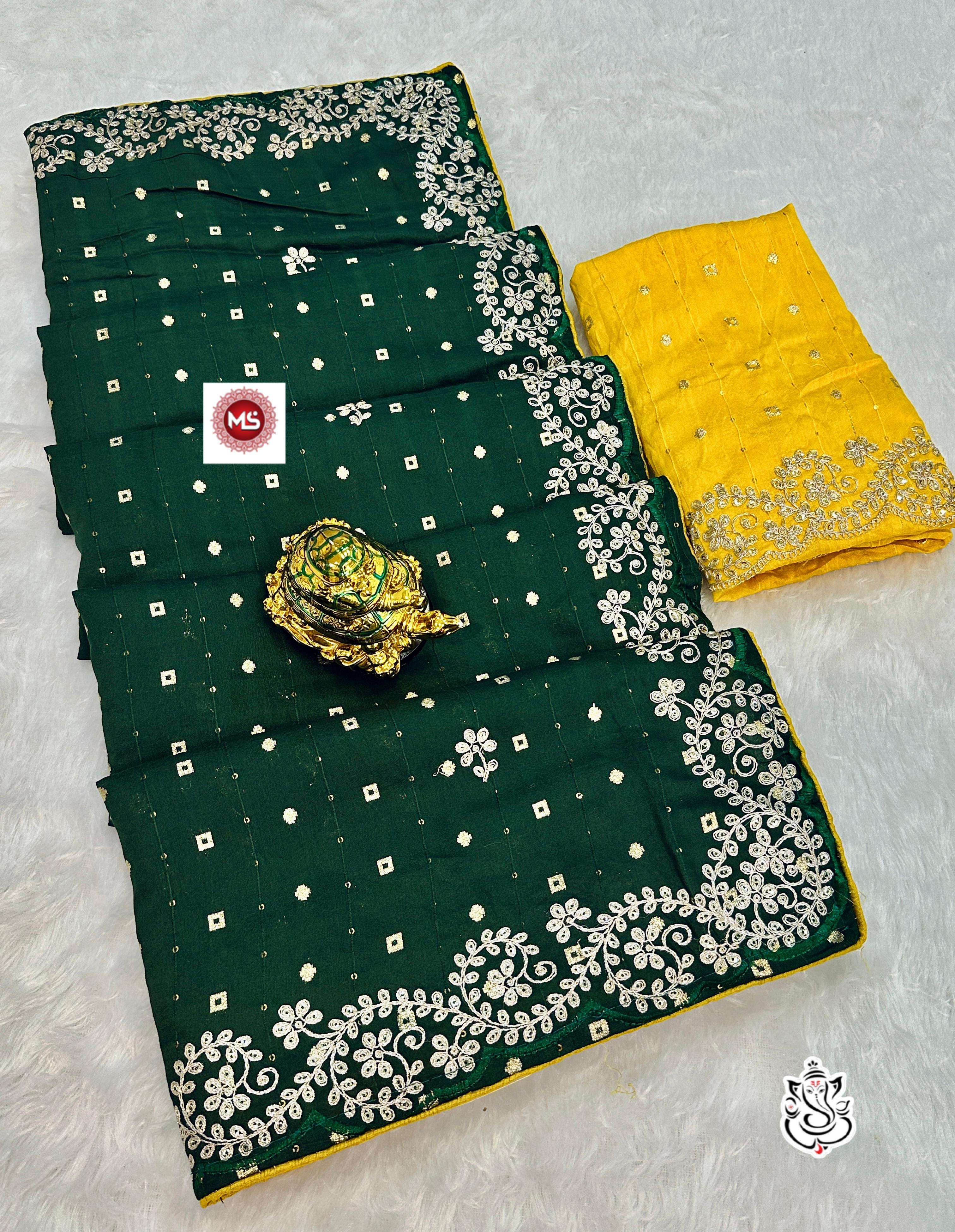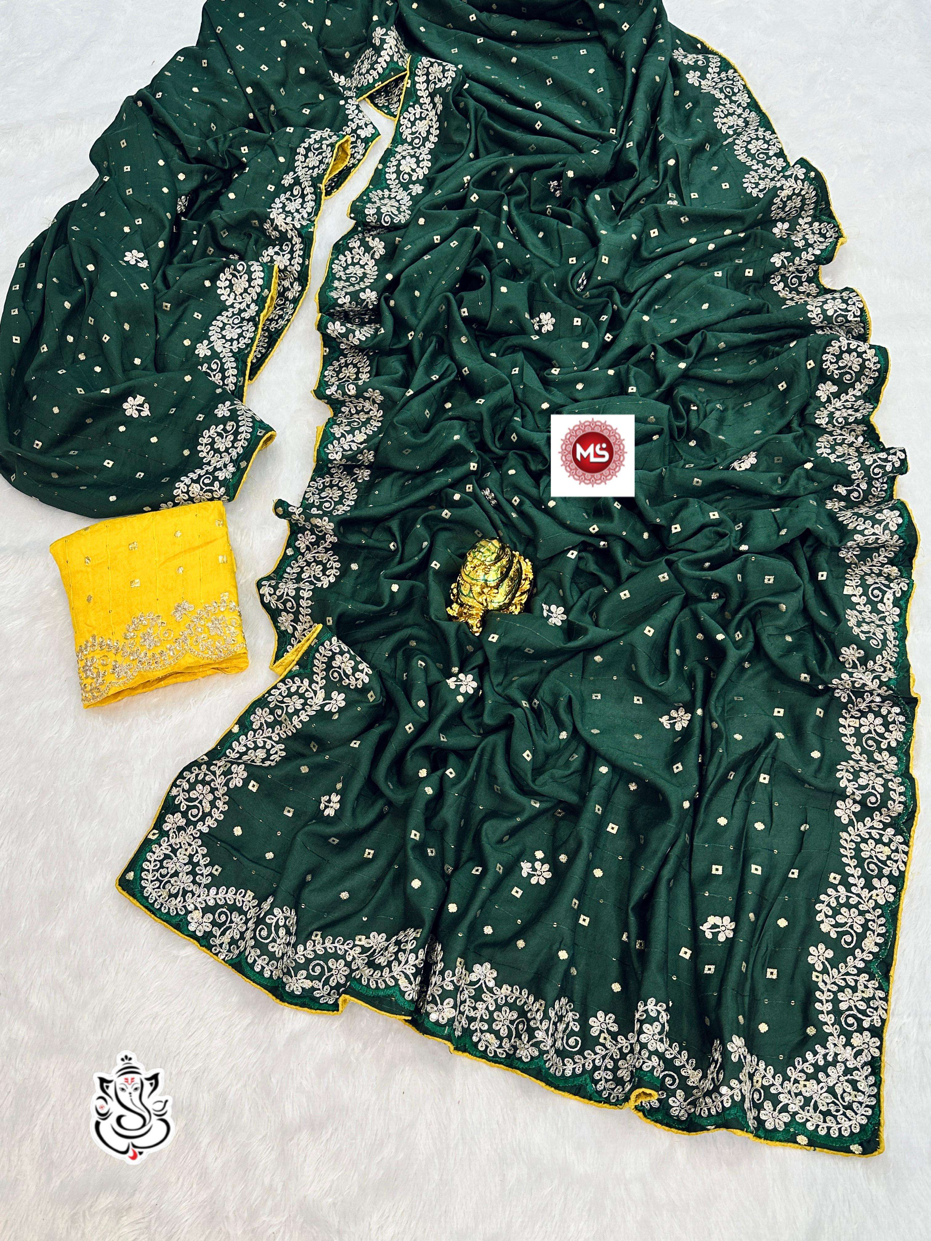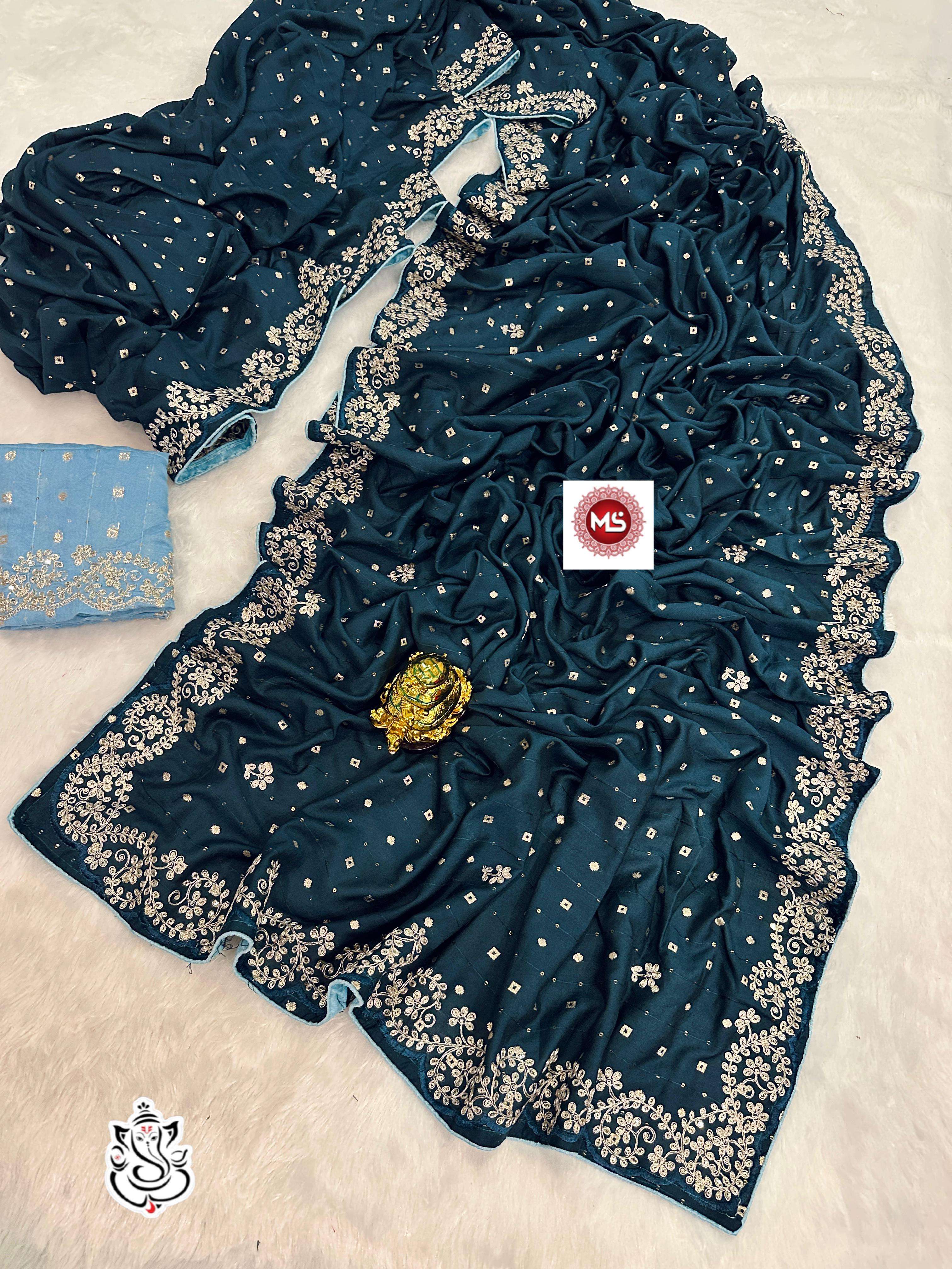 | Other Details: | MS BRAND present fabric-Dola viscous saree with all over jari weaving butti in whole sarees.. blouse-: Dola butti silk additional details-: saree have full original pita c.Pallu emb work..also having beautiful piping border ..also added with emb pita zari work blouse ..saree have extra ordinary weaving pattern in best quality .. 🥰best price for you 1150 rs only/- full stock |