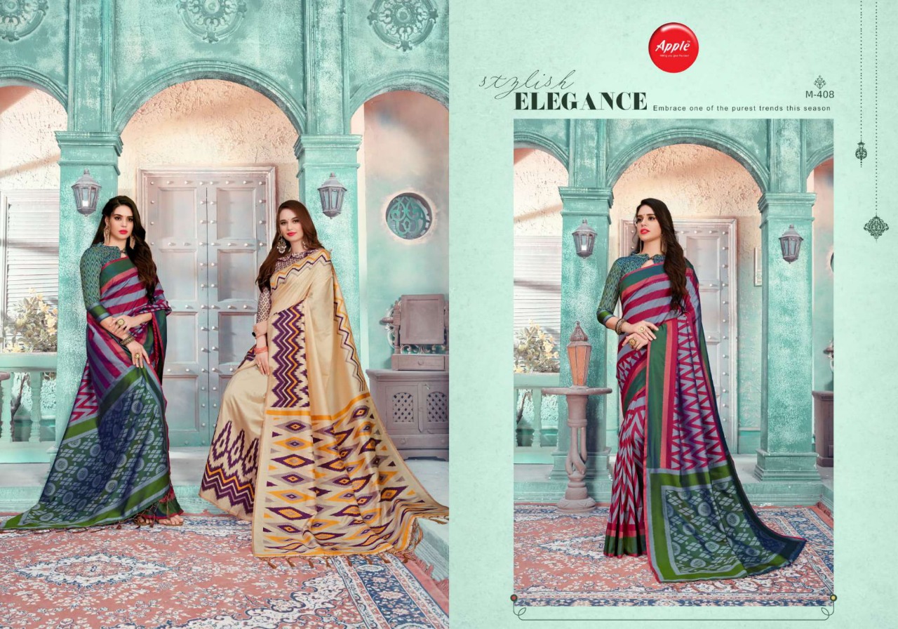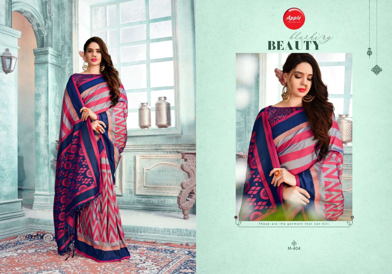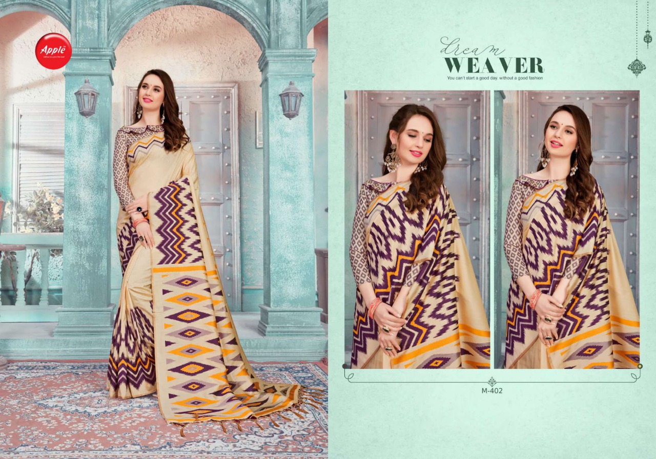 Other Details: | ?Launch Today? ?Name : Myra (vol-4)? by Apple ?Design: 8? ?Fabric: Smart Silk ?Rate : 1095/-? ?Exclusive Resham Work Weaving Sarees for this wedding season, Wedding Wear.. Book your order Now.. ? Set to set. GST 5 Percent Extra . Delivery 3-4 days |