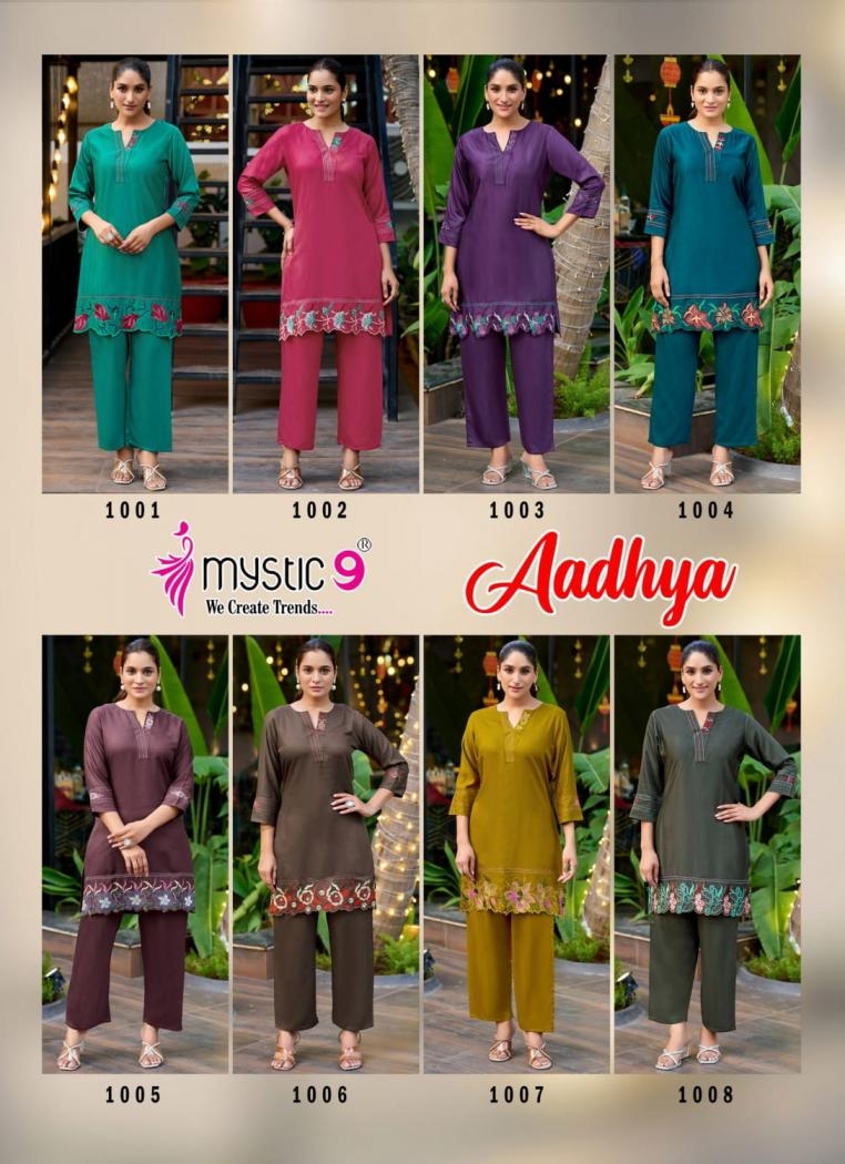 | Name: | Mystic9 Aadhya Series 1001-1008 Gajji Silk Wholesale Co-ord Sets |