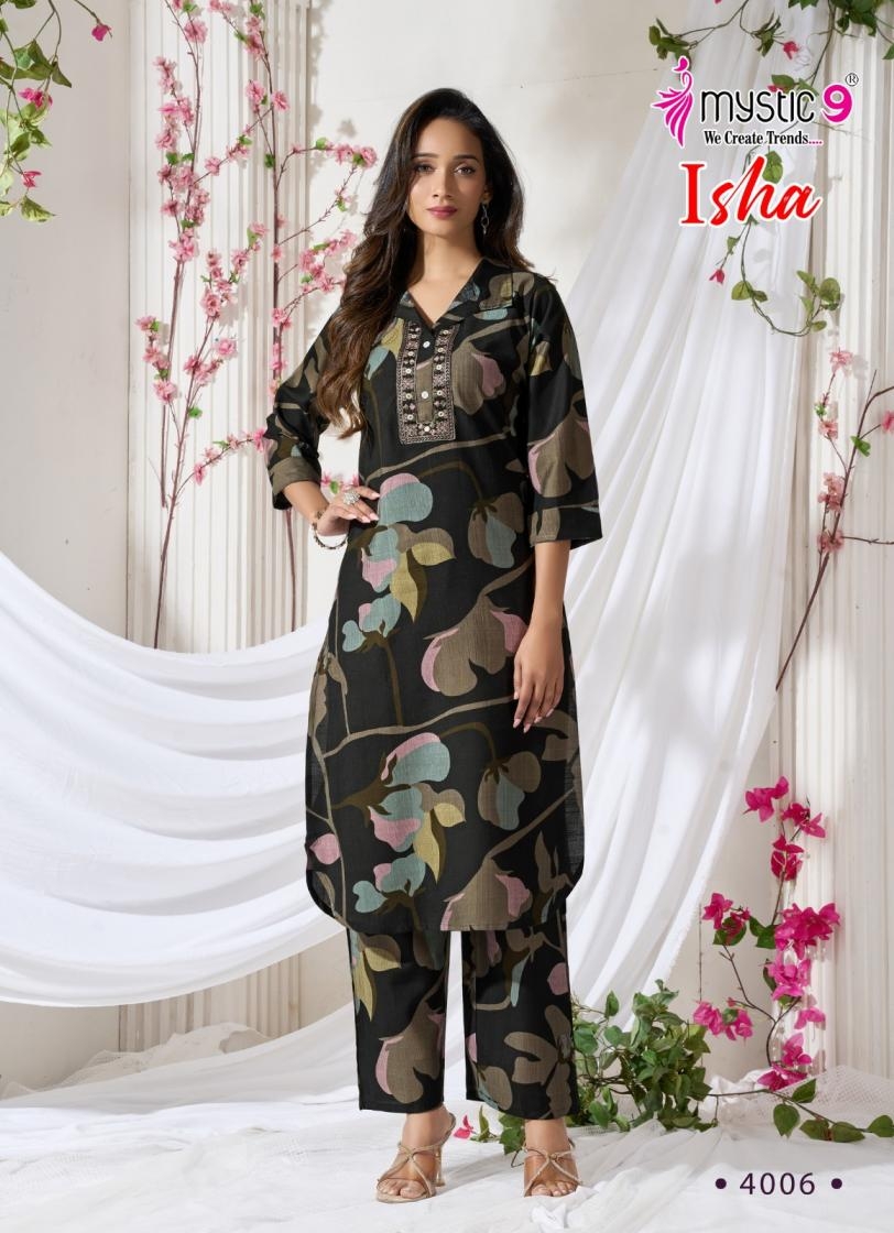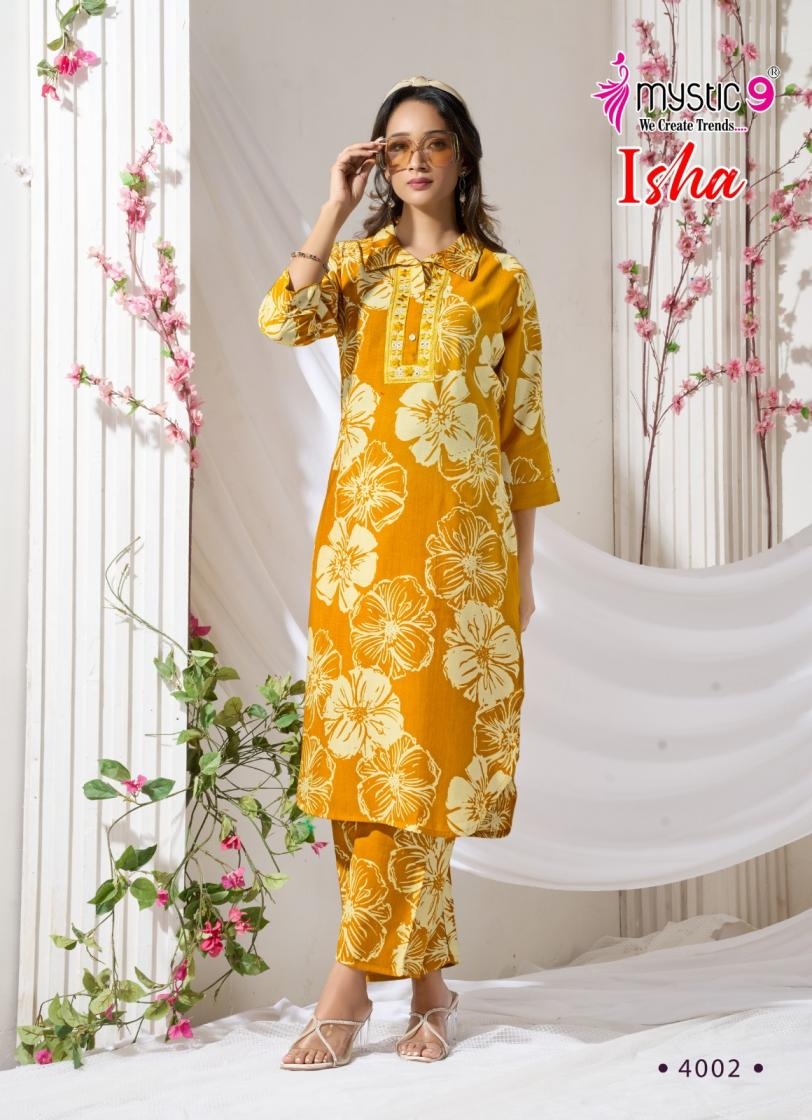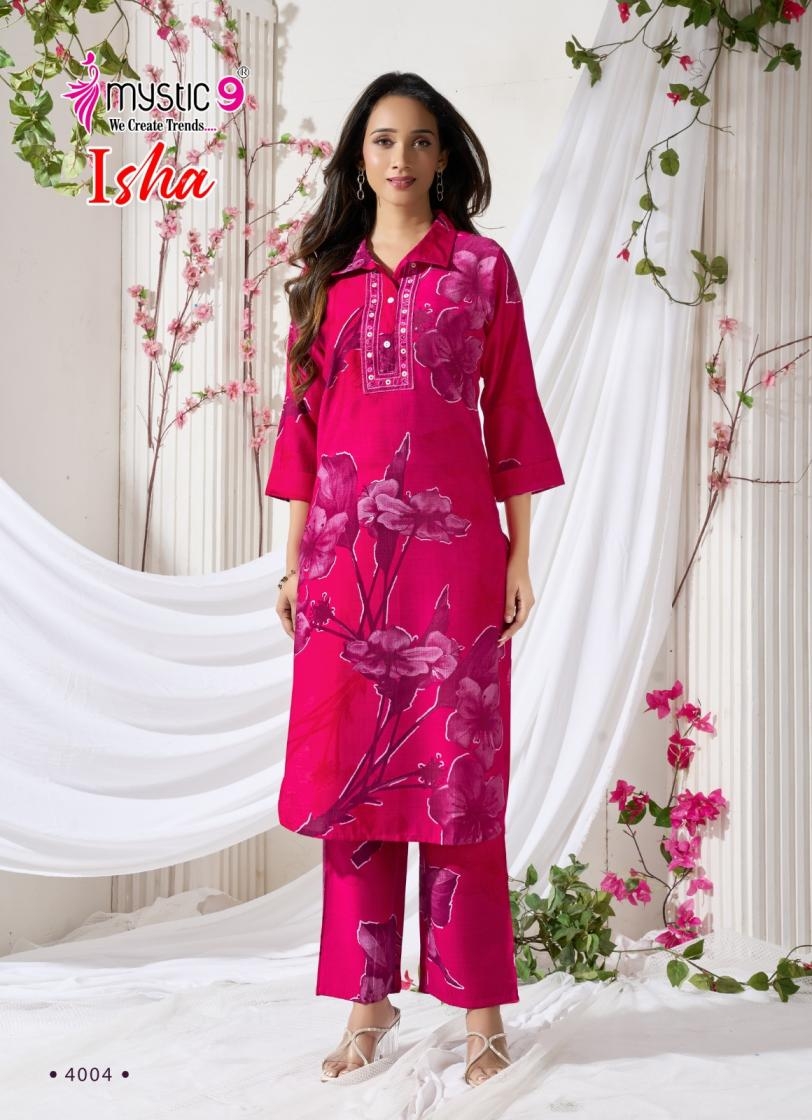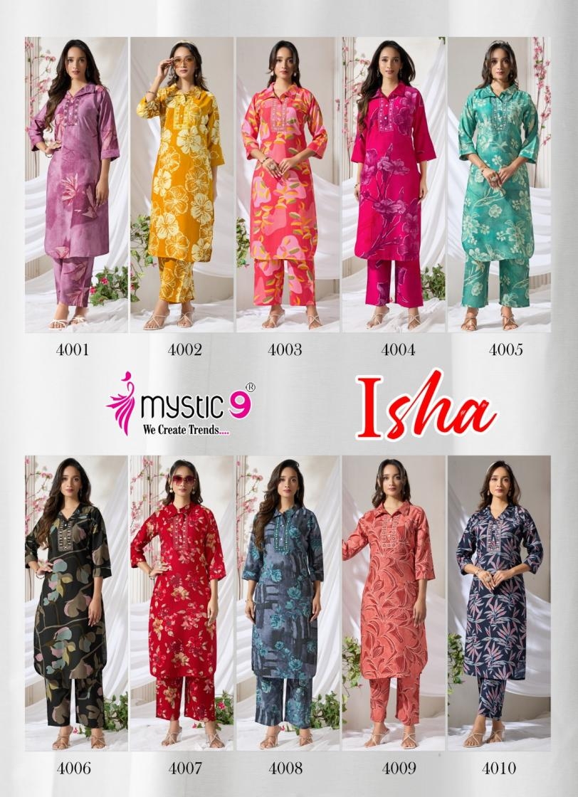 | Name: | Mystic9 Isha Vol 4 Series 4001 To 4010 Vertican Readymade Stylish Co-ord Sets In Wholesale Surat |